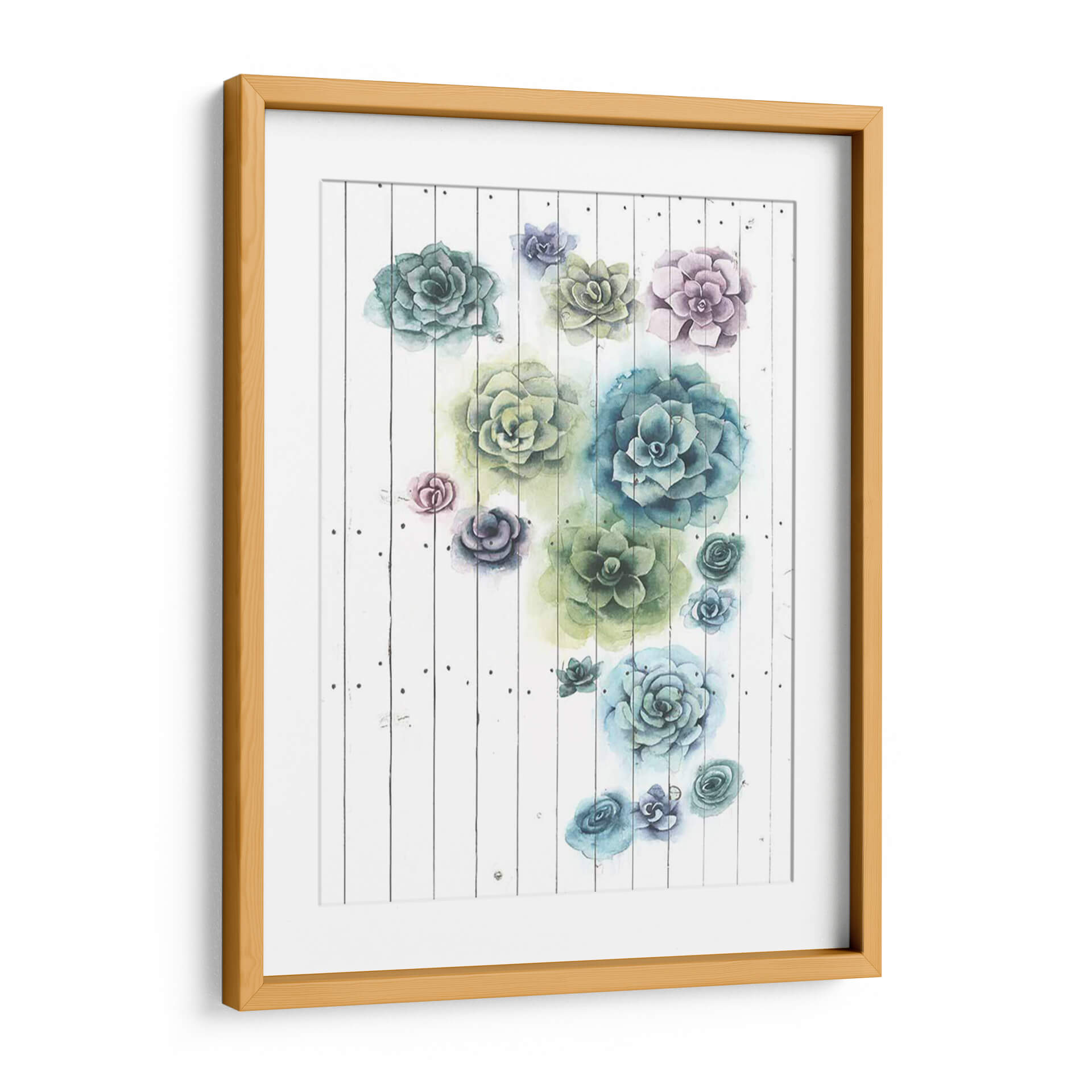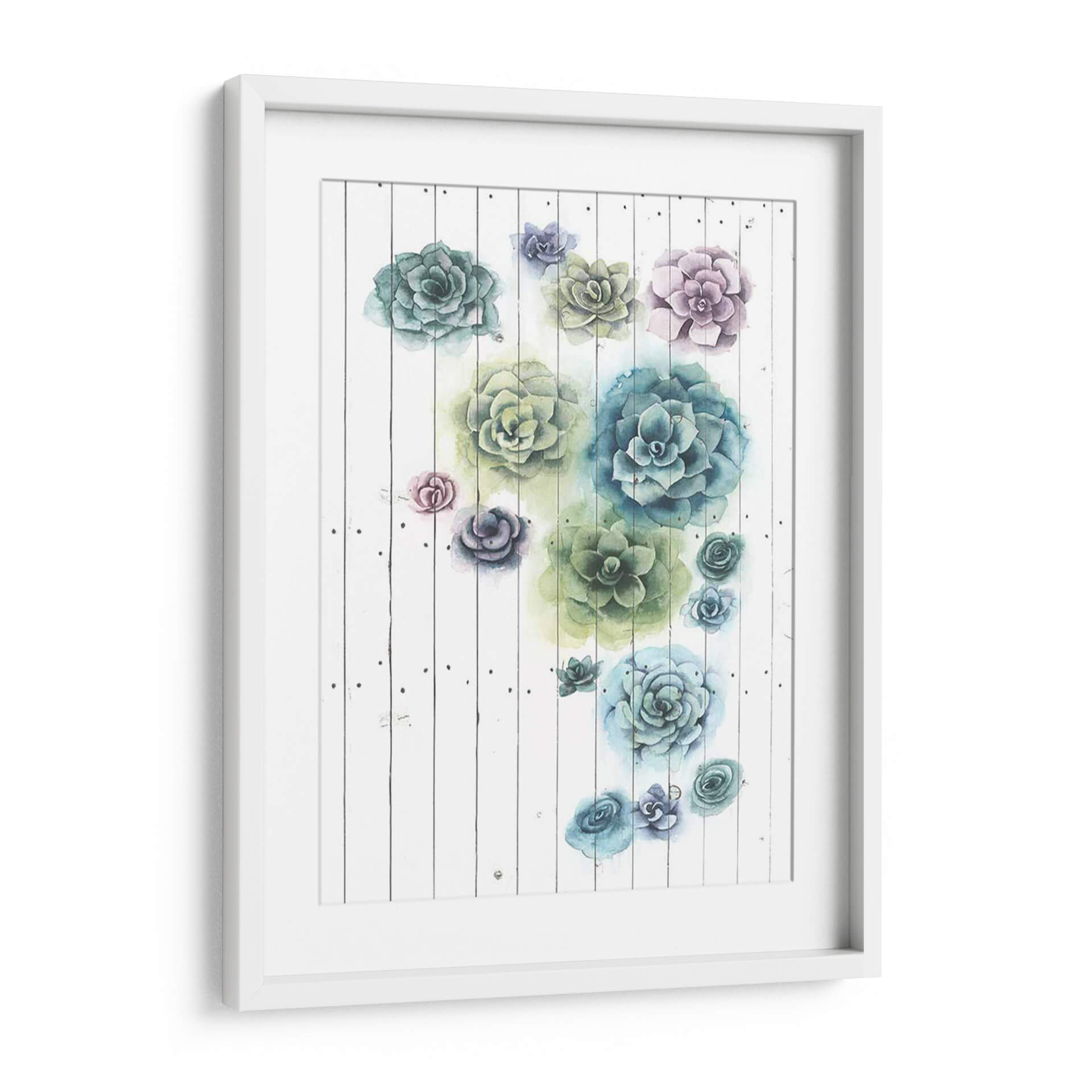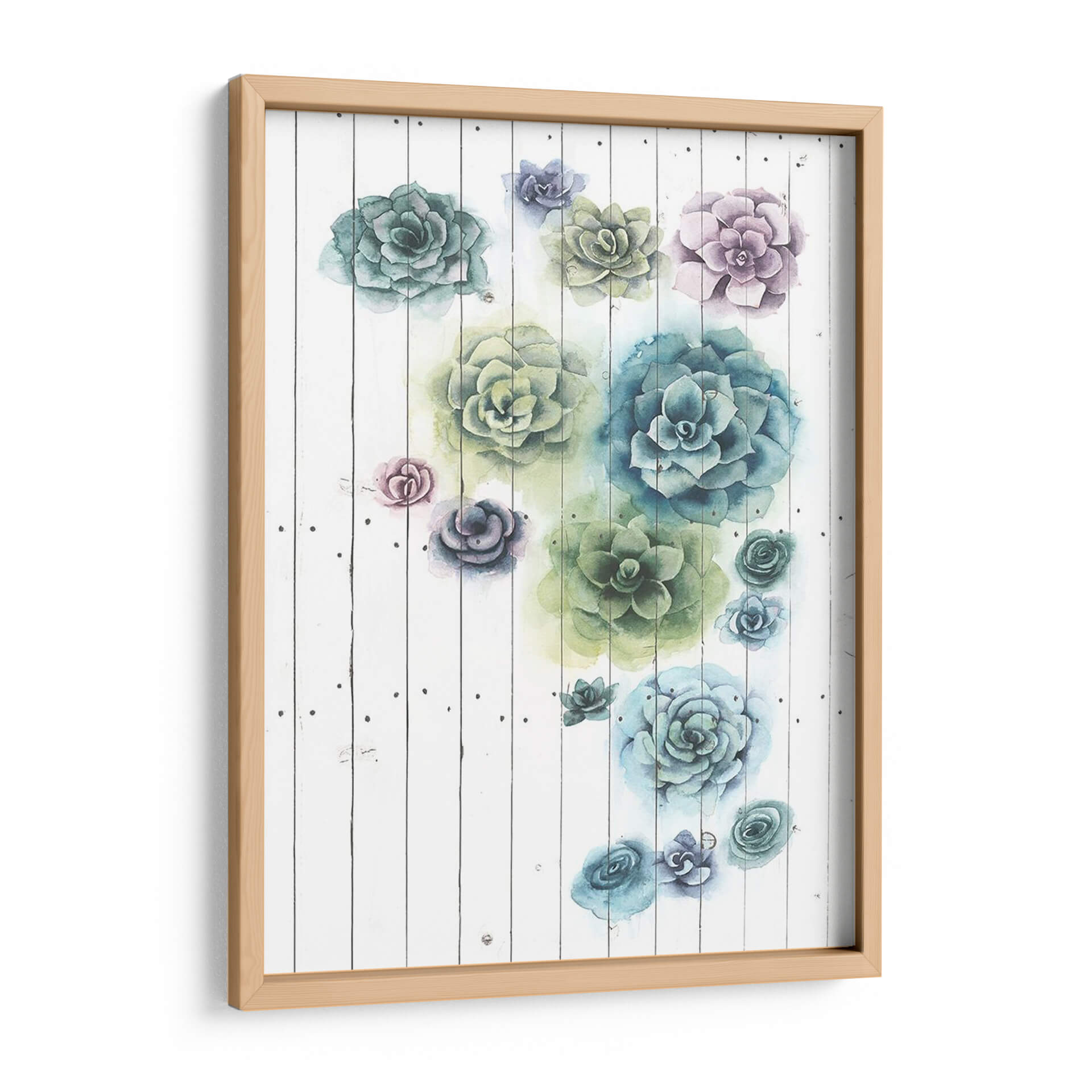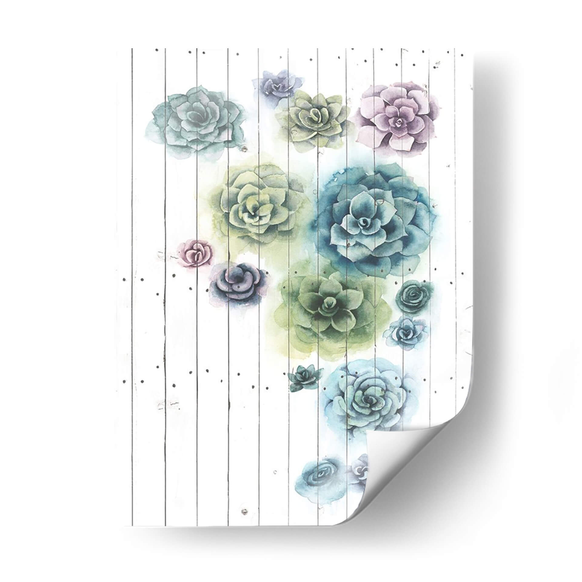 Embellece tu espacio con el encantador cuadro decorativo 'Shiplap Suculent Cluster I' de Grace Popp. Esta obra maestra presenta una delicada colección de suculentas representadas en acuarela, dispuestas sobre un fondo de tablones de madera blancos con un aire rústico y moderno a la vez. Los tonos suaves y etéreos, que van desde el verde menta y el azul aguamarina hasta toques de lavanda y rosa pálido, crean una atmósfera de calma y serenidad, perfecta para cualquier rincón de tu hogar u oficina. El estilo de Grace Popp, que combina la precisión botánica con la fluidez de la acuarela, da vida a estas formas orgánicas, aportando una sensación de frescura y vitalidad. Este cuadro decorativo es ideal para quienes buscan añadir un toque de naturaleza y color a su decoración, funcionando como un punto focal suave pero cautivador. Su composición vertical y la paleta de colores la hacen versátil, encajando a la perfección en ambientes contemporáneos, bohemios o de inspiración escandinava. Transforma tu pared en un oasis de tranquilidad y estilo con esta pieza única que evoca la belleza sutil de la flora.