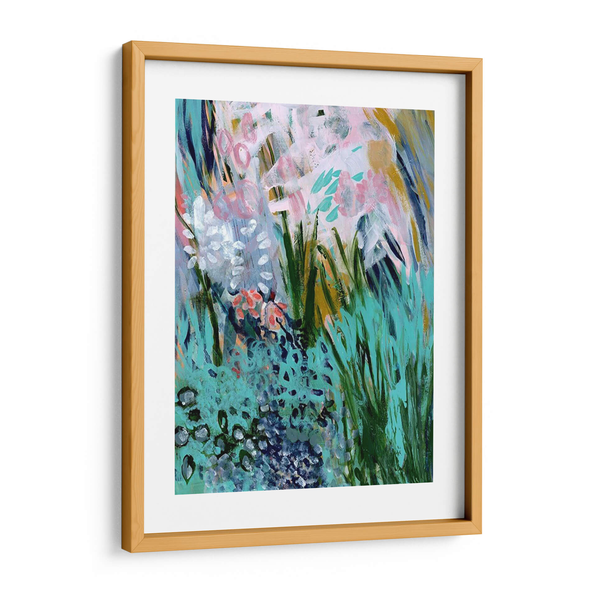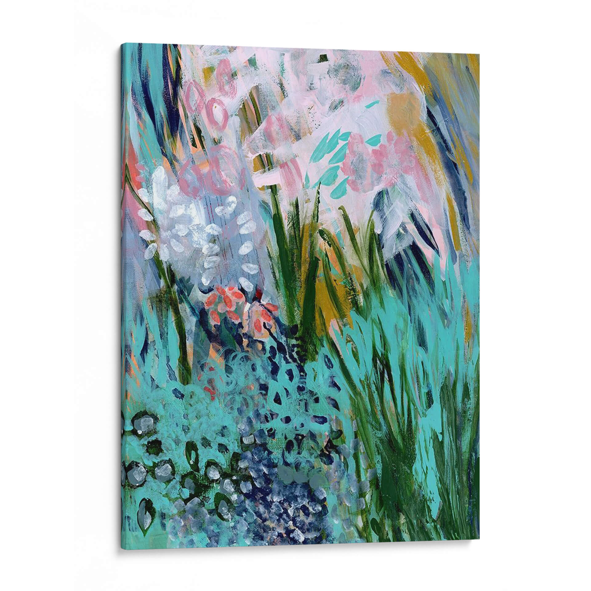 Sumérgete en la vibrante y exuberante obra "Trazos Florales Opulentos I" de Tara Daavettila, un cuadro decorativo que captura la esencia de un jardín en plena floración con una explosión de color y textura. Las pinceladas audaces y gestuales evocan la vitalidad de las flores y la frescura de la vegetación, creando una sensación de movimiento y energía en cada rincón de la composición. La paleta de colores, dominada por tonos turquesa, verdes intensos, rosas suaves y toques de dorado, aporta una atmósfera alegre y sofisticada a cualquier espacio. Este cuadro abstracto floral es perfecto para añadir un toque de naturaleza estilizada y arte contemporáneo a tu hogar u oficina. Su estilo moderno y su composición dinámica lo convierten en una pieza ideal para salas de estar, comedores o espacios que necesiten un punto focal lleno de vida y color. Descubre la belleza de la naturaleza interpretada a través de la visión única de Tara Daavettila y transforma tu entorno con este impresionante cuadro decorativo.