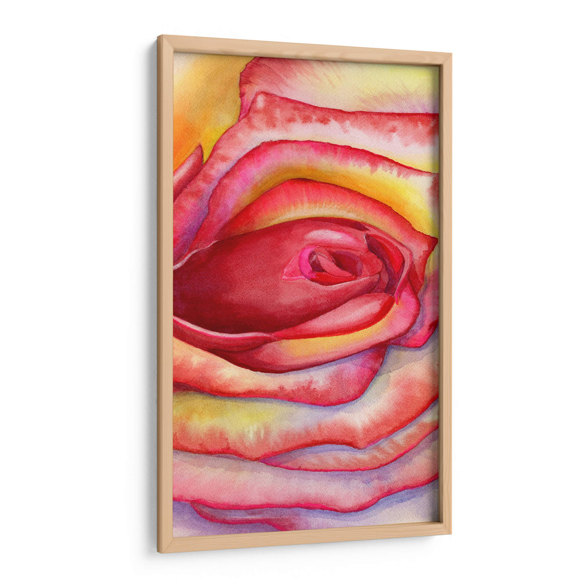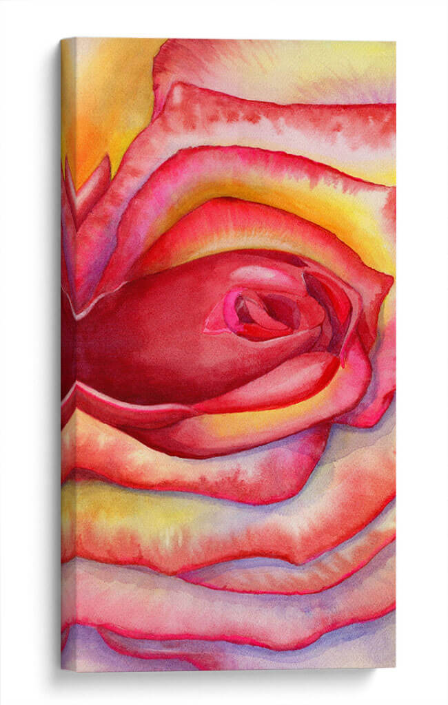 Sumérgete en la exquisita belleza de "Acercamiento Rosa", una obra de arte cautivadora que celebra la delicadeza de una flor en pleno esplendor. Esta pieza, realizada en acuarela, captura la esencia de los pétalos de una rosa con un realismo impresionante y un toque de ensueño. La paleta de colores es un vibrante homenaje a la naturaleza, con tonos que transitan desde el rosa intenso y fucsia en el centro, hasta suaves degradados de salmón, melocotón y toques de lavanda en los bordes exteriores, todo ello realzado por un cálido fondo amarillo que irradia luz y vitalidad. La composición se centra en un primer plano detallado, permitiendo apreciar la textura suave y las sutiles curvas de cada pétalo, creando una sensación de intimidad y asombro. Esta acuarela evoca sentimientos de amor, pasión y serenidad, convirtiéndola en una adición perfecta para cualquier espacio que busque un toque de elegancia natural. Ideal para dormitorios, salones o incluso un espacio de trabajo, "Acercamiento Rosa" aportará una atmósfera de tranquilidad y belleza atemporal, transformando cualquier pared en una ventana a la magnificencia floral.