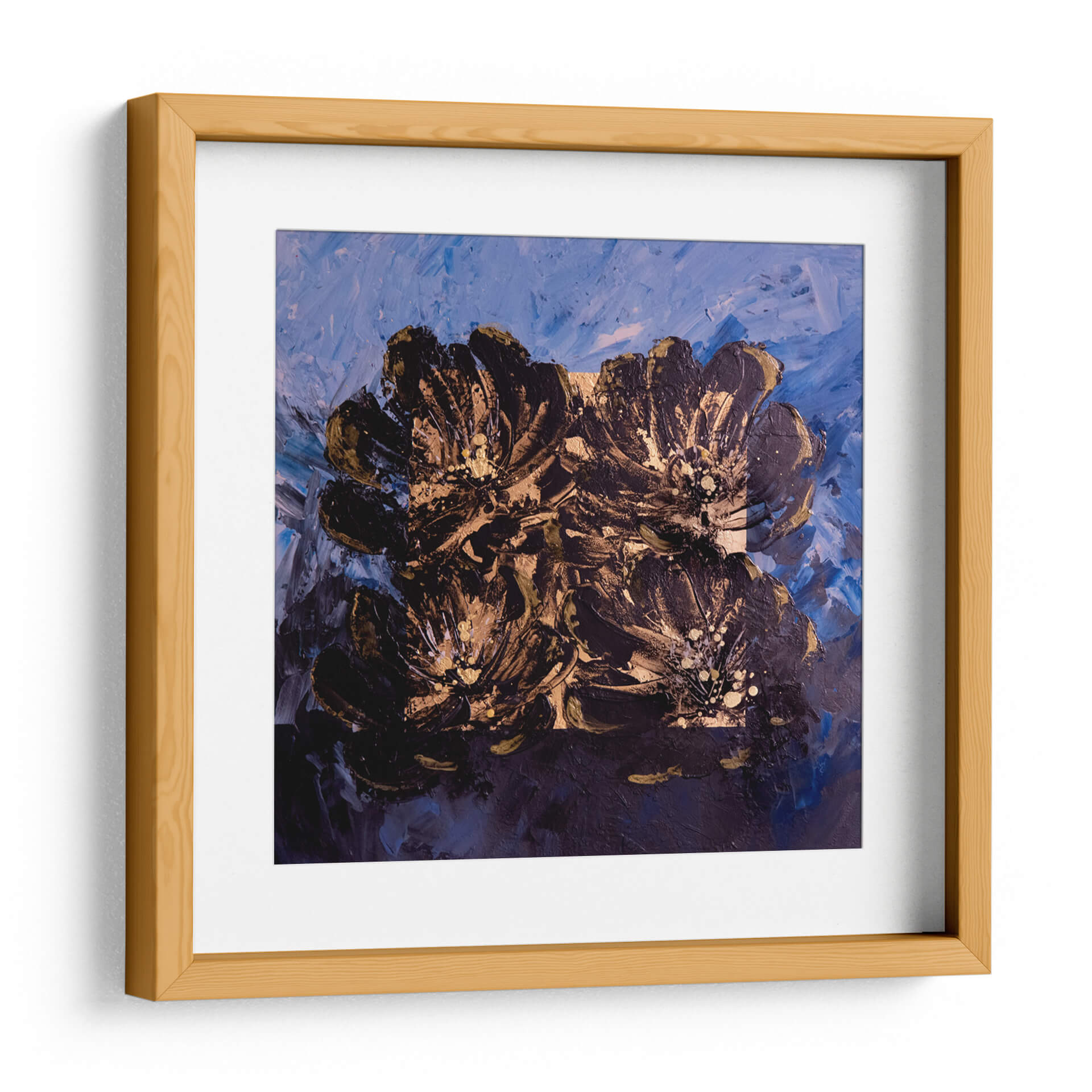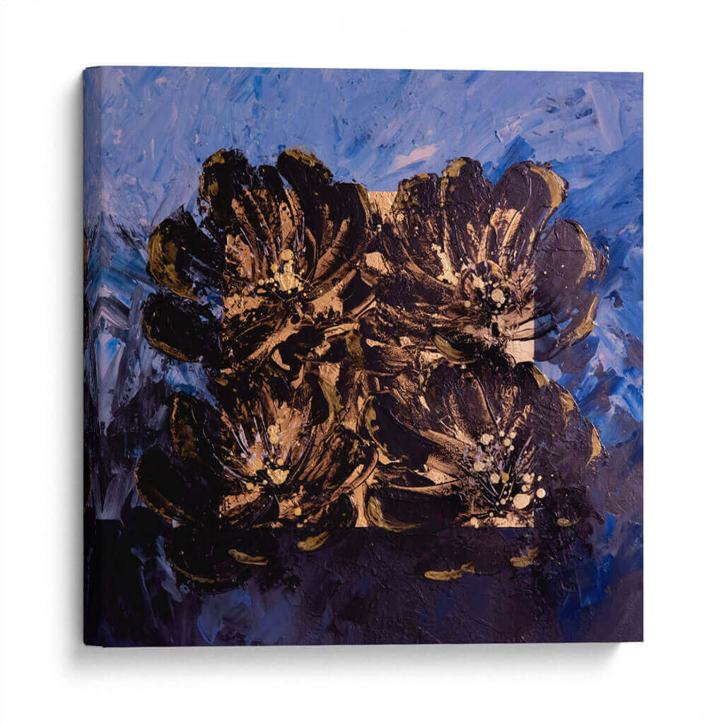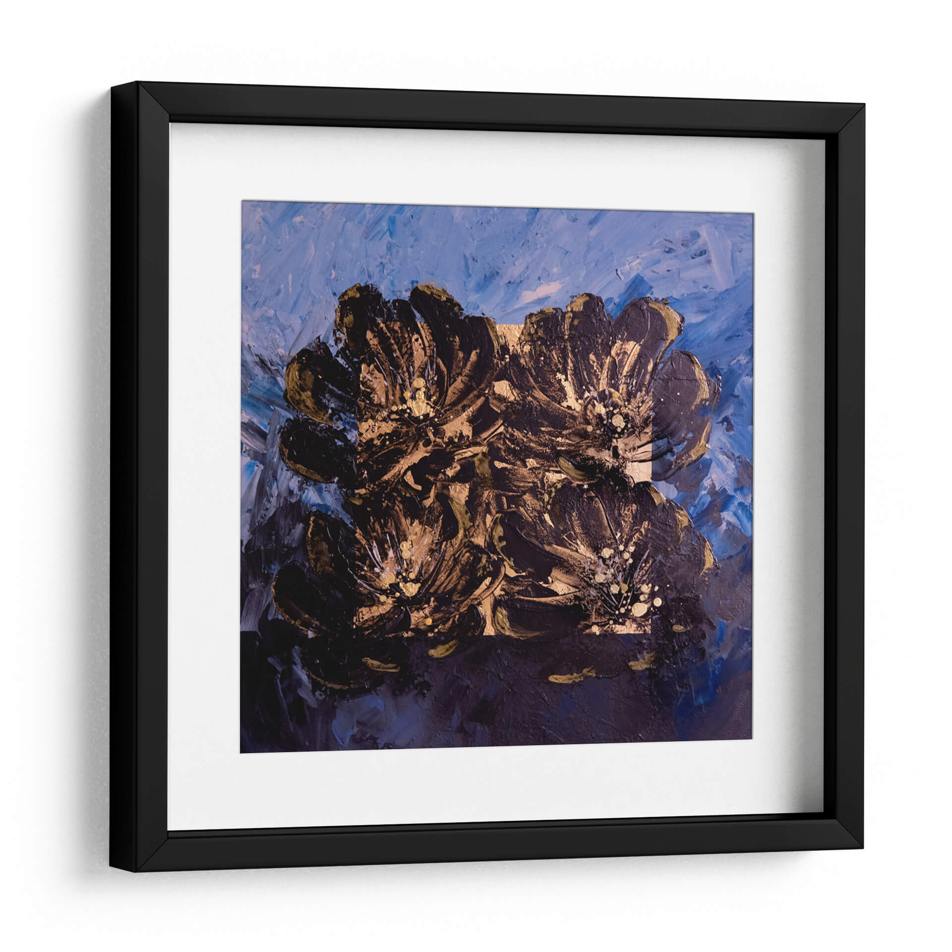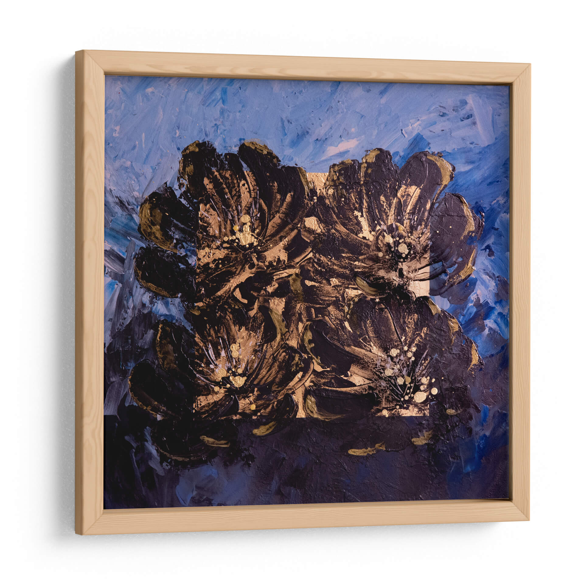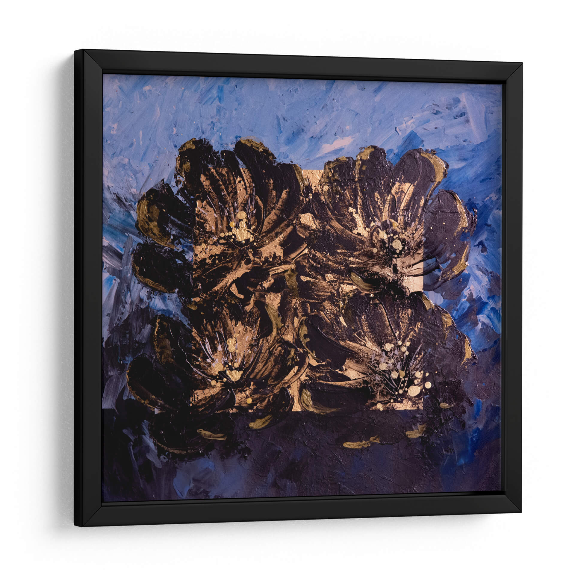 Sumérgete en la enigmática belleza de "Ciclo", una obra de arte contemporáneo que captura la esencia de la naturaleza con un toque dramático. Este cuadro decorativo presenta un grupo de flores oscuras, casi sombrías, con sutiles toques dorados que emergen de un fondo vibrante de azules intensos y profundos. La técnica de pincelada audaz y texturizada añade una dimensión táctil y energética a la pieza, invitando a la contemplación. "Ciclo" evoca una sensación de misterio y transformación, ideal para espacios que buscan un punto focal sofisticado y lleno de carácter. Su paleta de colores contrastantes y la composición dinámica lo convierten en una adición perfecta para salas de estar modernas, estudios o cualquier rincón que desee infundir con arte que inspire conversación y reflexión. Transforma tu hogar con esta pieza única que fusiona lo oscuro y lo luminoso, creando una atmósfera cautivadora y elegante.