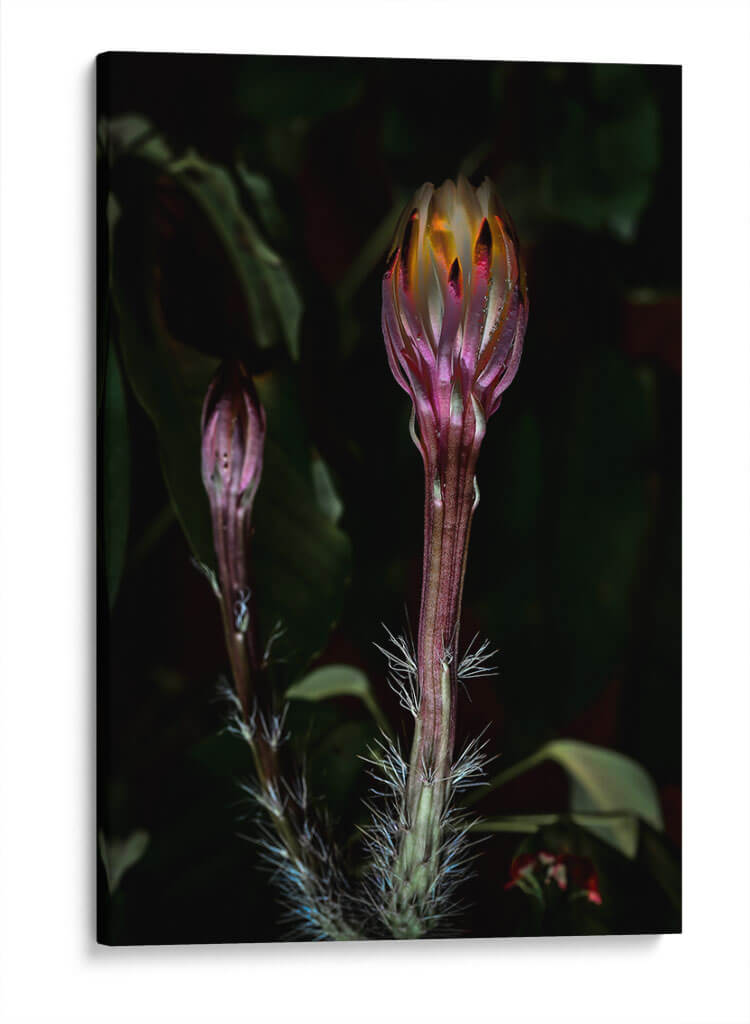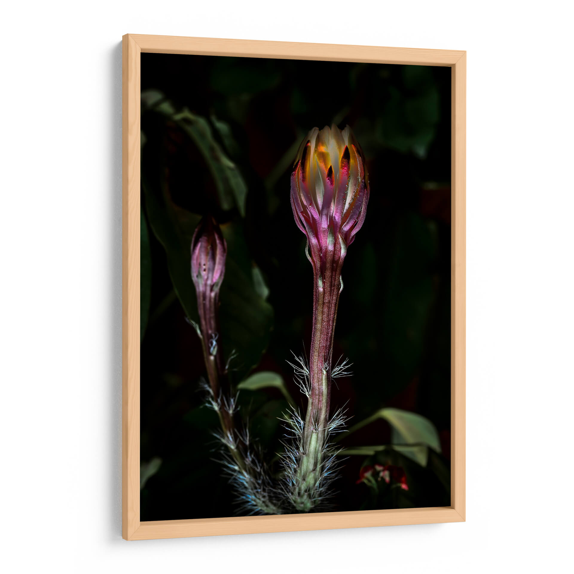 Sumérgete en la belleza enigmática de la naturaleza con este cautivador cuadro decorativo 'Natural Lantern'. La obra captura el instante delicado en que un capullo de cactus, con sus tonos púrpuras y rosados vibrantes, se prepara para florecer, iluminado por una luz interior que emana calidez y misterio. El fondo oscuro y texturizado de hojas verdes crea un contraste dramático, realzando la forma intrincada y la promesa de la flor. Esta pieza fotográfica, de un realismo impactante pero con un toque artístico, evoca una sensación de calma contemplativa y la maravilla de los ciclos naturales. Su estilo detallado y la paleta de colores evocadora la convierten en una adición perfecta para cualquier espacio que busque un toque de sofisticación orgánica y serenidad. Ideal para salones, dormitorios o estudios, este cuadro decorativo transformará tu pared en una ventana a la delicada fuerza de la vida, invitando a la reflexión y al aprecio por los detalles sutiles del mundo natural. Añade un aire de elegancia botánica a tu decoración con esta pieza única.