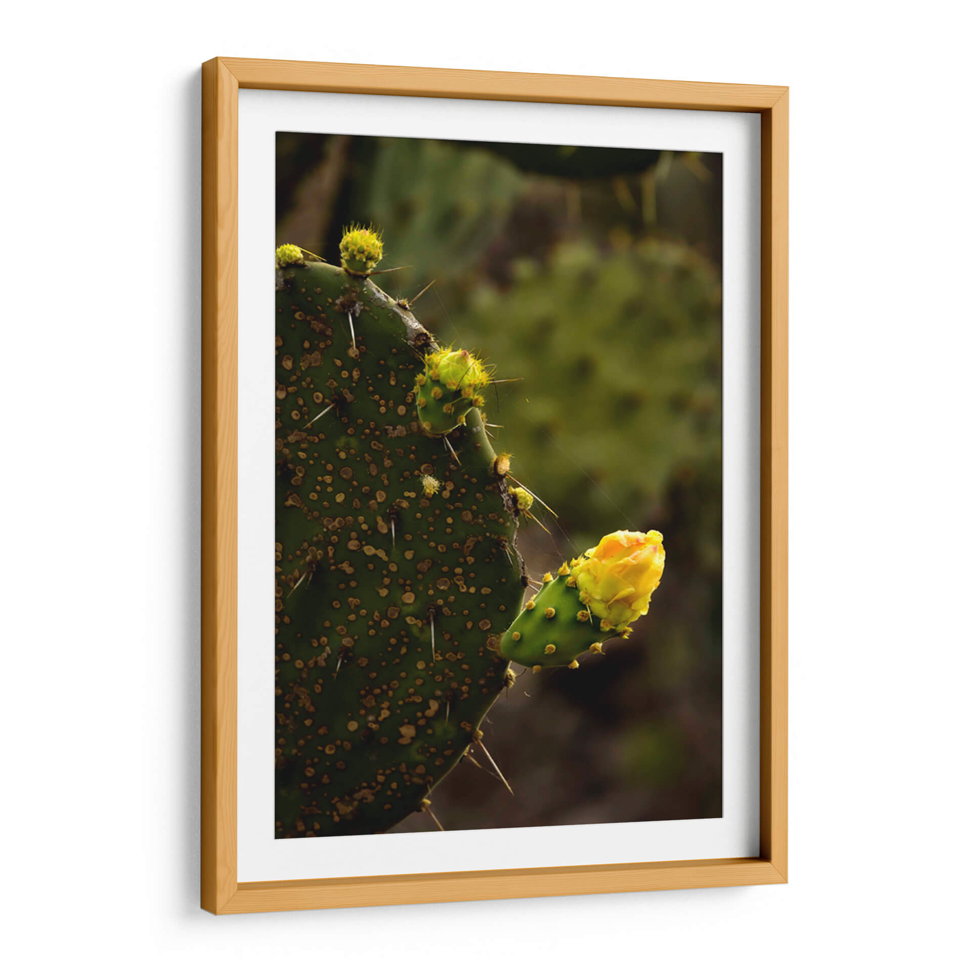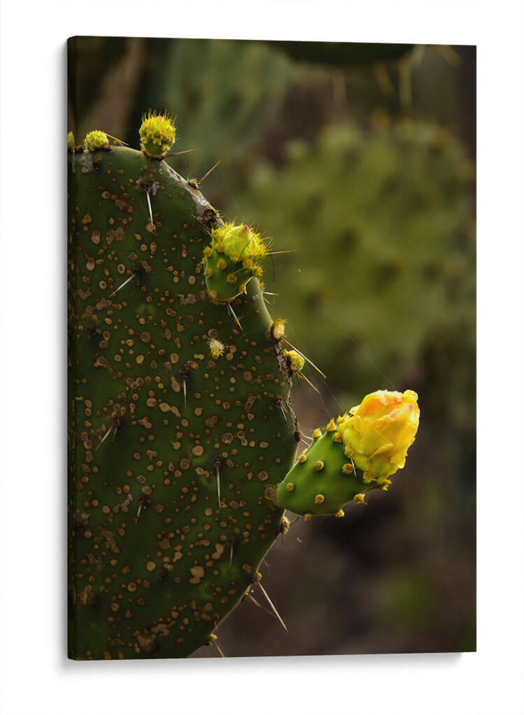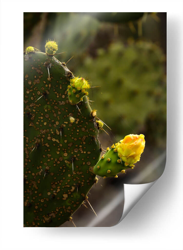 Captura la esencia de la resiliencia y la belleza efímera con nuestro cuadro decorativo 'Start', una obra que inmortaliza el florecimiento de un cactus. Esta pieza visualmente impactante se centra en la textura intrincada de la hoja de nopal, salpicada de areolas y protegida por espinas afiladas, contrastando delicadamente con el vibrante capullo de flor amarilla que emerge con promesa. La paleta de colores, dominada por profundos verdes y el cálido amarillo de la flor, crea una atmósfera de serenidad y fortaleza, evocando la resistencia de la naturaleza en entornos áridos. El estilo fotográfico, con un enfoque nítido en el primer plano y un suave desenfoque del fondo, dirige la mirada hacia el detalle y la complejidad de la planta, sugiriendo una narrativa de crecimiento y esperanza. Este cuadro decorativo es ideal para infundir un toque de vida y carácter a cualquier espacio, ya sea una sala de estar moderna, una oficina que busca inspiración o un dormitorio que anhela calma. Su composición vertical y la temática botánica lo convierten en una adición versátil que aporta un aire de sofisticación natural y un recordatorio visual de la belleza que puede surgir de las condiciones más desafiantes. Transforma tu hogar con este arte de pared que inspira y decora.
