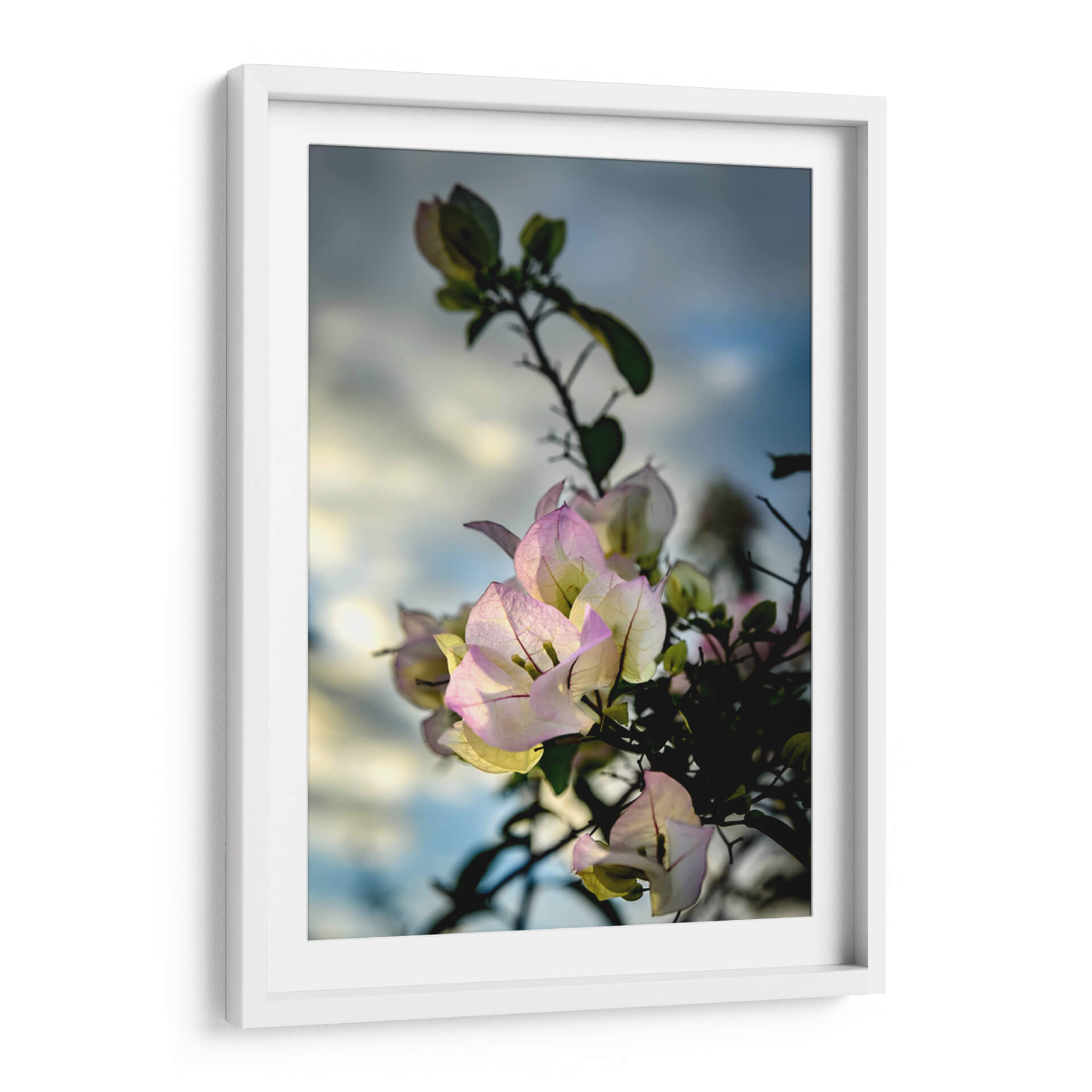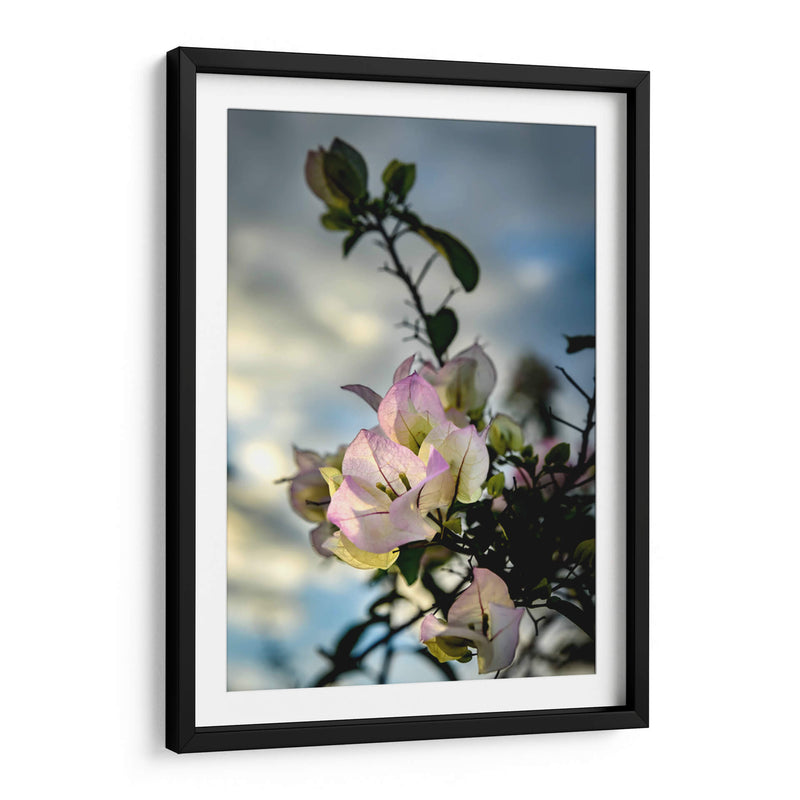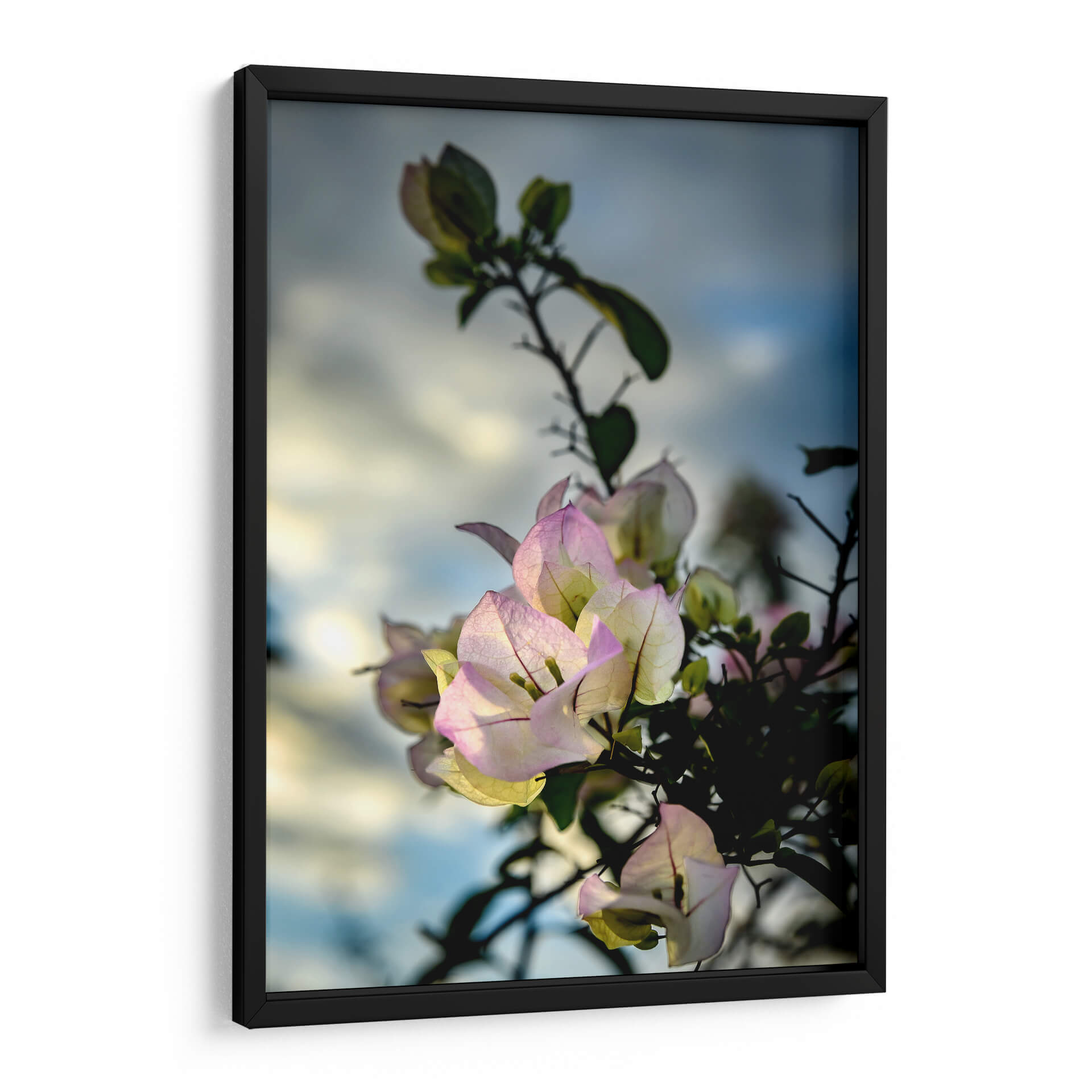 Captura la delicadeza y la serenidad de la naturaleza con esta obra de arte "Sticking Out" de PhotoVicz. Este cuadro decorativo presenta un primer plano exquisito de flores de buganvilla, donde los pétalos translúcidos de color rosa pálido y blanco se iluminan suavemente, revelando una red de venas finas que añaden textura y profundidad. El fondo, un cielo nublado con tonos azules y dorados, crea una atmósfera etérea y soñadora, contrastando maravillosamente con la intrincada estructura de las ramas oscuras y las hojas verdes. La composición enfoca la atención en la fragilidad y la belleza efímera de las flores, invitando a la contemplación. Con su paleta de colores suaves y su estilo fotográfico detallado, "Sticking Out" es ideal para añadir un toque de calma y elegancia natural a cualquier espacio, desde un dormitorio acogedor hasta una sala de estar luminosa o un estudio tranquilo. Transforma tu hogar en un oasis de paz con esta pieza artística que celebra la belleza sutil del mundo natural. Ideal para amantes de la botánica y la fotografía floral.