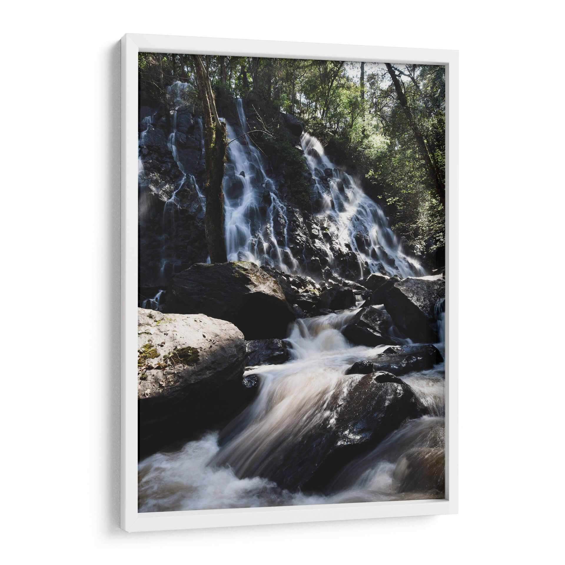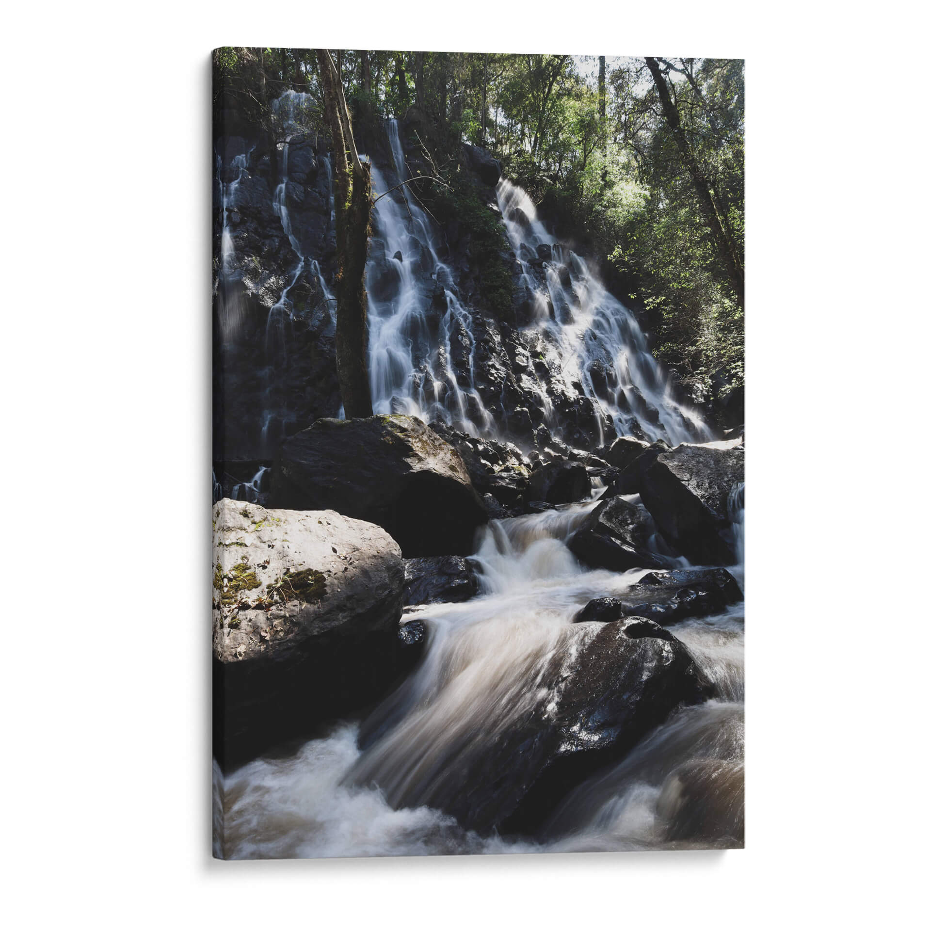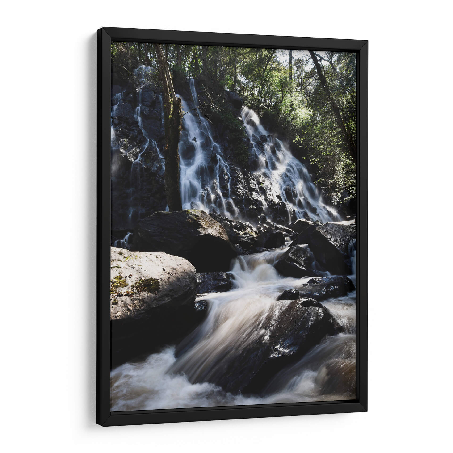 Sumérgete en la belleza natural de "Velo de Novia, México", una obra de arte que captura la majestuosidad de una cascada en medio de un frondoso bosque. La artista Ana Zagal ha logrado plasmar el movimiento etéreo del agua cayendo sobre rocas oscuras y musgosas, creando un efecto casi sedoso y envolvente. La paleta de colores, dominada por tonos terrosos profundos, verdes intensos y el blanco brillante del agua en movimiento, evoca una sensación de calma, serenidad y conexión con la naturaleza. La composición vertical, con la cascada como protagonista y el denso follaje de los árboles enmarcando la escena, invita a la contemplación y al asombro. Este cuadro decorativo es perfecto para quienes buscan infundir a sus espacios una atmósfera de paz y armonía natural. Imagina este impactante paisaje en tu sala de estar, aportando un toque de frescura y vitalidad, o en tu dormitorio, creando un santuario de tranquilidad. "Velo de Novia, México" no es solo una imagen, es una ventana a la exuberancia y el poder sereno de la naturaleza, ideal para transformar cualquier ambiente en un refugio de paz y belleza.