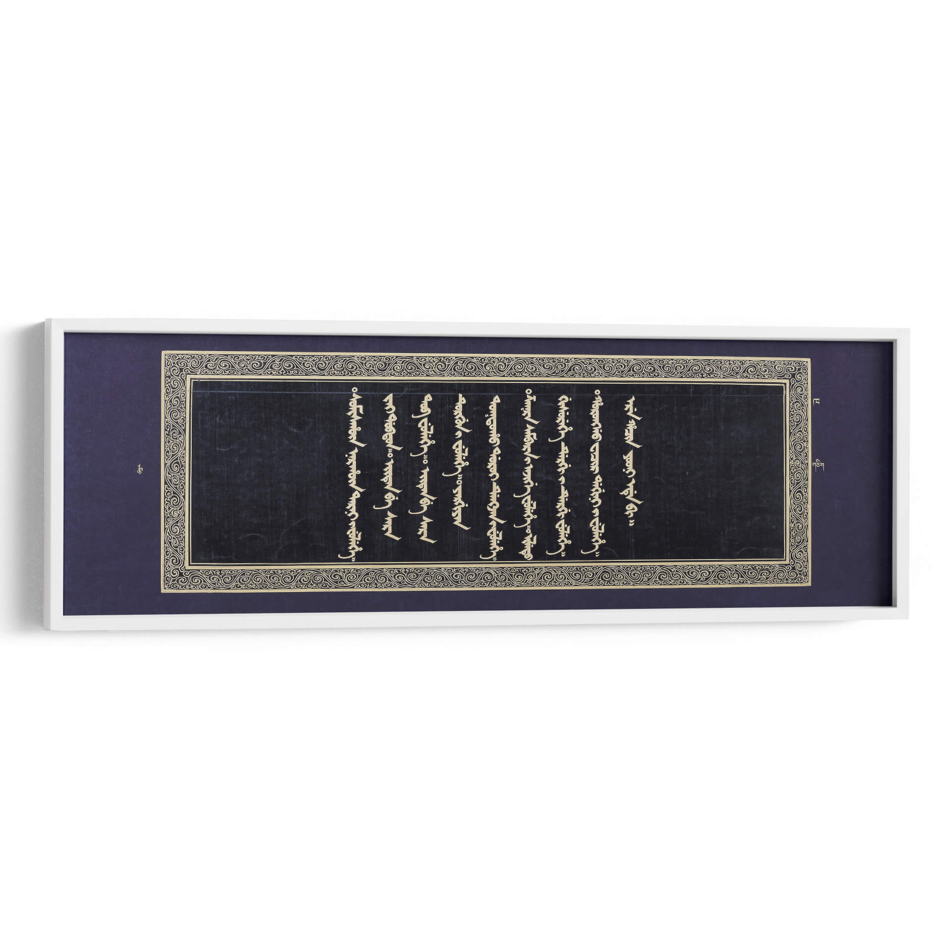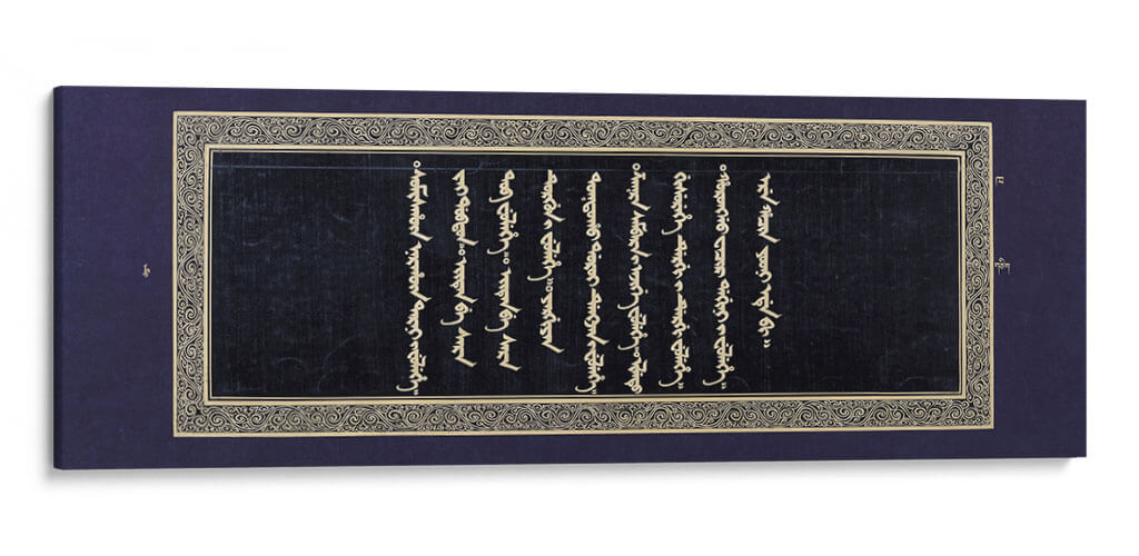 Sumérgete en la profundidad y el misterio con este cautivador cuadro decorativo que presenta una caligrafía budista tibetana sobre un fondo azul noche. La obra, titulada "Canon budista del dragón tibetano (hojas de papel azul)", evoca una sensación de sabiduría ancestral y serenidad espiritual. Los intrincados caracteres dorados, dispuestos en columnas ordenadas, contrastan elegantemente con la oscuridad del fondo, creando un efecto visual hipnótico. Un delicado marco ornamental de inspiración clásica rodea la composición central, añadiendo un toque de sofisticación y realzando la solemnidad del texto. Este cuadro decorativo es una pieza ideal para quienes buscan infundir calma, reflexión y un toque de misticismo oriental en sus espacios. Perfecto para un estudio, una sala de meditación o como un punto focal de intriga en un salón moderno, su diseño atemporal y su rica carga simbólica invitan a la contemplación y al diálogo. Añade una dimensión de paz interior y elegancia cultural a tu hogar u oficina con esta obra única que trasciende el tiempo y el espacio, conectándote con antiguas tradiciones y profundas enseñanzas espirituales. Su presencia es un recordatorio constante de la belleza en la simplicidad y la sabiduría en la quietud.