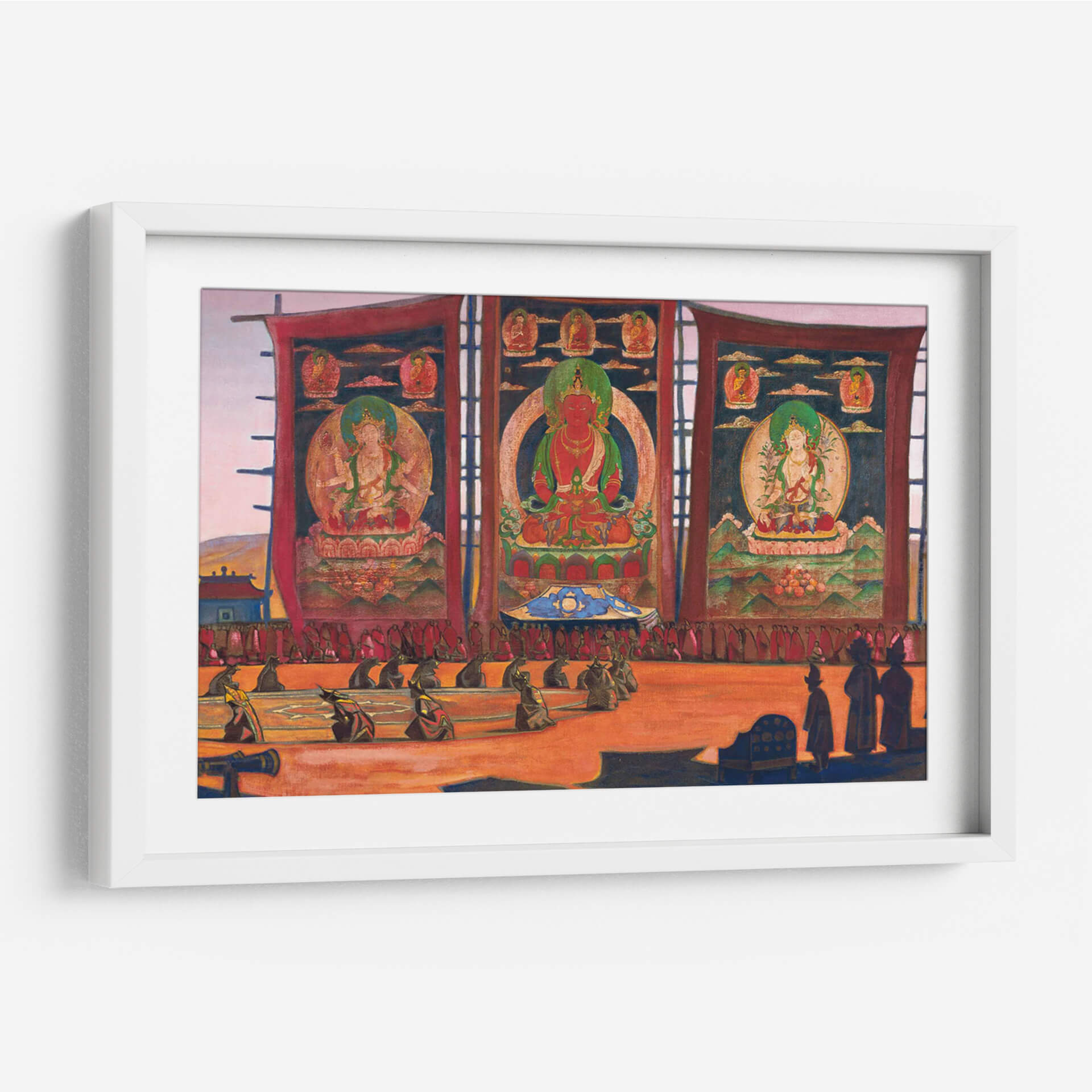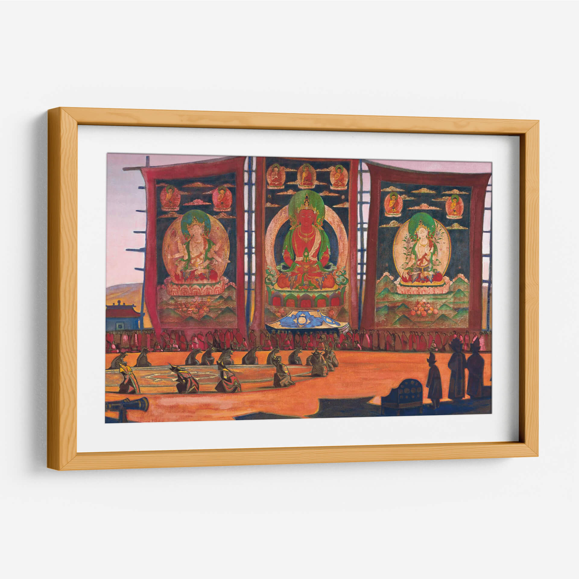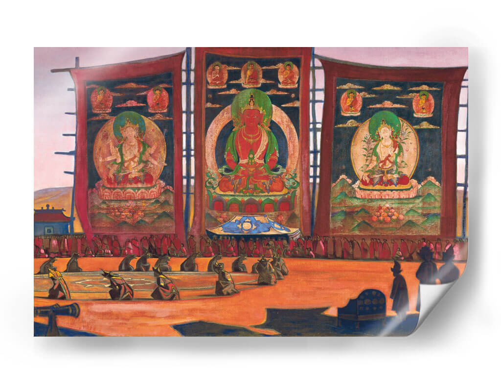 Sumérgete en la mística y espiritualidad de Mongolia con este cautivador cuadro decorativo, 'Ceremonia religiosa Tsam'. La obra maestra de Nicholas Roerich captura la esencia de un ritual sagrado, transportando al espectador a un mundo de devoción y tradición ancestral. La paleta de colores vibrantes, dominada por rojos intensos, verdes esmeralda y dorados radiantes, evoca una atmósfera de solemnidad y poder espiritual. Las figuras detalladas de deidades y devotos, dispuestas en una composición escénica, invitan a la contemplación profunda. Este cuadro es ideal para infundir un aire de trascendencia y cultura en tu sala de estar, estudio u oficina, convirtiéndose en un punto focal que inspira y eleva el espíritu. Su rica narrativa visual y su profundidad cultural lo convierten en una pieza de arte de pared única, perfecta para coleccionistas y amantes de la historia y la espiritualidad asiática. Añade un toque de misterio y sabiduría oriental a tu hogar con esta impresionante representación de una ceremonia sagrada mongola, un testimonio del legado artístico de Roerich y la riqueza de las tradiciones budistas.