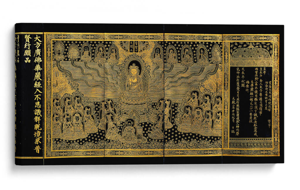 Transcripción del Avatamsaka Sutra (El Sutra de la guirnalda de flores) en papel dorado e índigo