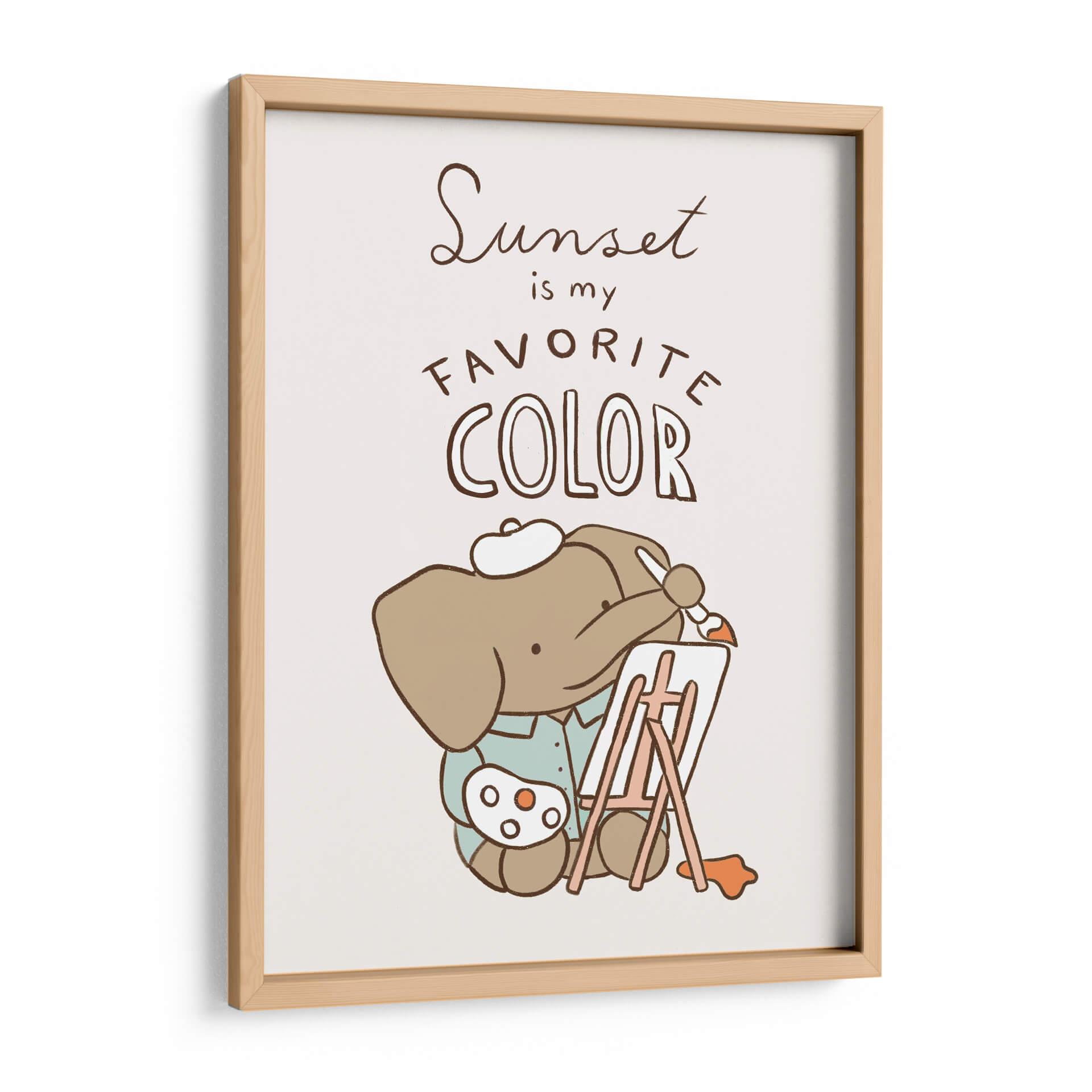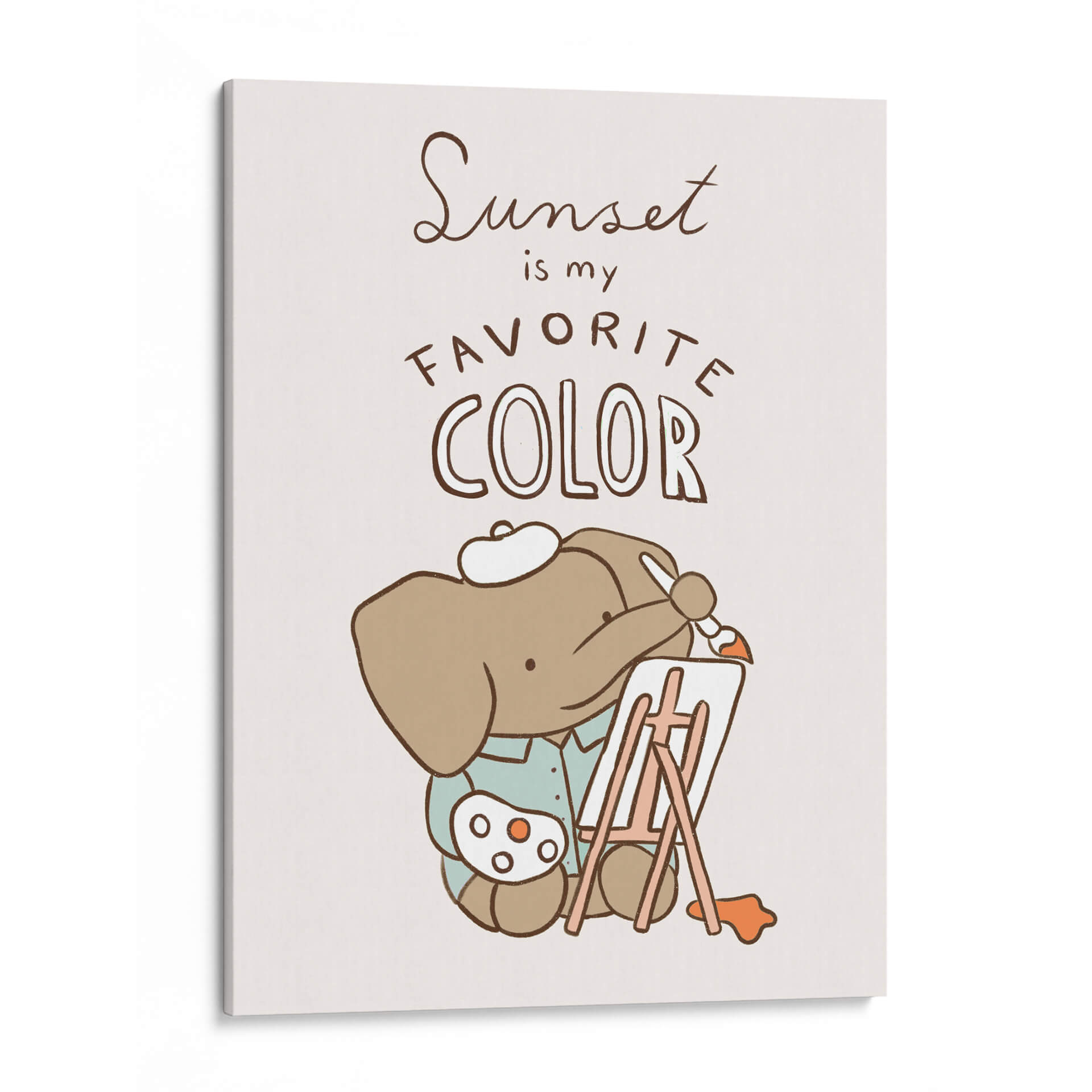 Captura la esencia de la creatividad y la alegría con "El Atardecer es mi Color Favorito", una encantadora obra de arte digital del artista Maita San. Esta pieza, con su estilo caricaturesco y líneas definidas, presenta un elefante adorable ataviado como pintor, listo para dar vida a su lienzo. La paleta de colores es suave y cálida, dominada por tonos tierra y toques de naranja que evocan la serenidad y la belleza de un atardecer. El texto central, "Sunset is my favorite color", refuerza el mensaje de apreciación por los momentos sencillos y los espectáculos naturales. Es una obra que irradia ternura y optimismo, perfecta para añadir un toque de luz y personalidad a cualquier espacio. Imagina este cuadro decorativo en una habitación infantil, una guardería, una sala de estar acogedora o incluso una oficina donde busques inspiración diaria. Su composición centrada y su temática universal la convierten en una pieza versátil y entrañable, ideal para quienes buscan arte que hable directamente al corazón y celebre la belleza en lo cotidiano. Un recordatorio visual de que los colores más hermosos a menudo se encuentran en la naturaleza.