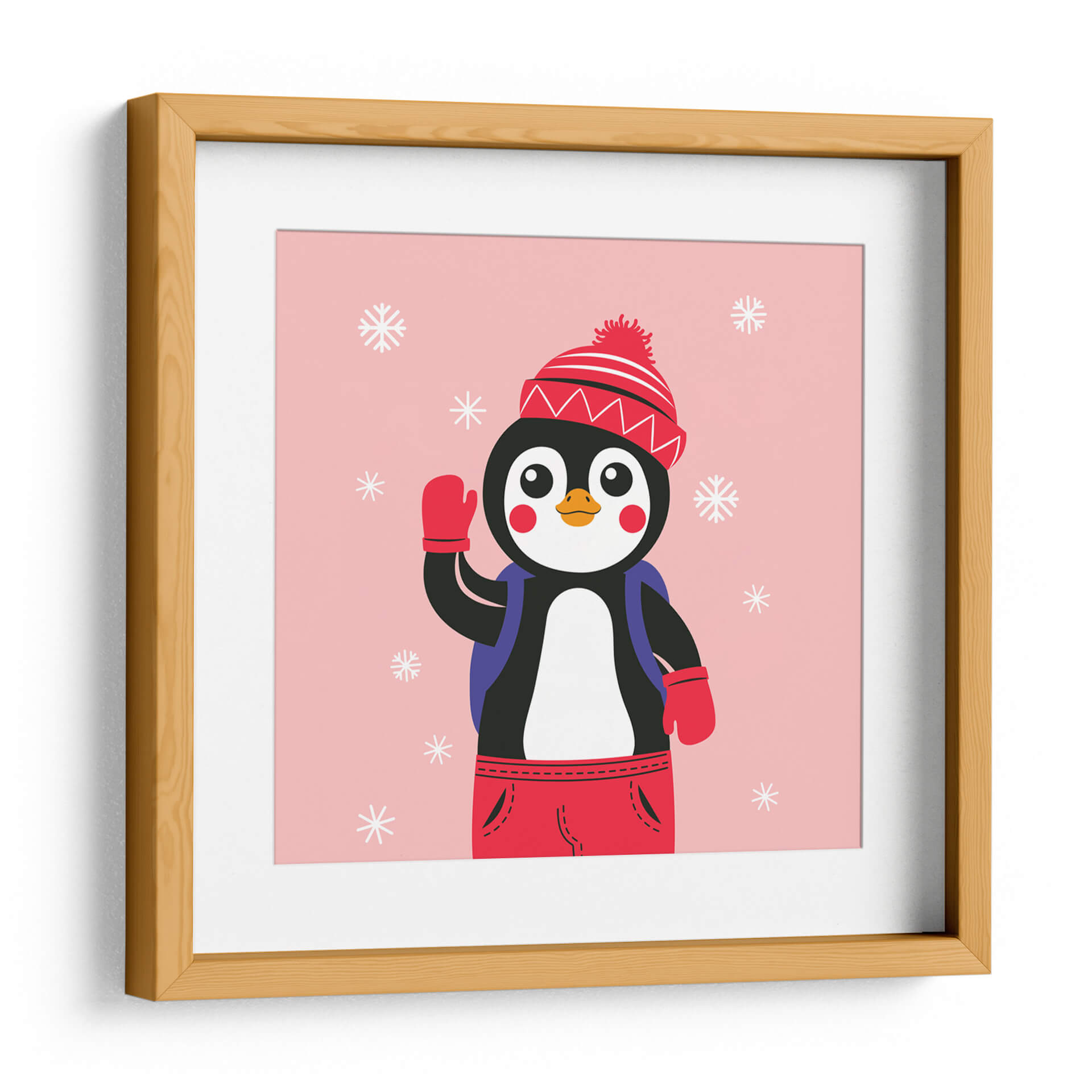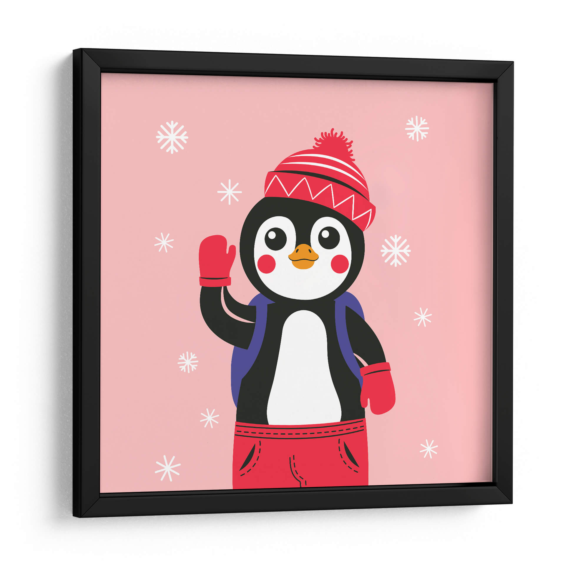 Alegra tu espacio con el encantador lienzo "HOLA, NIÑO", DICE EL PINGÜINO del artista Najesi. Esta obra de arte captura la inocencia y la alegría a través de la imagen de un adorable pingüino vestido para el frío, saludando con una mano enguantada. El diseño plano y estilizado presenta un pingüino amigable sobre un fondo rosa suave salpicado de copos de nieve blancos, creando una atmósfera juguetona y acogedora. La paleta de colores, dominada por el rosa pastel, el negro, el blanco y los vibrantes toques de rojo en el gorro y los guantes, irradia calidez y positividad. La composición es sencilla y directa, centrada en el personaje, lo que facilita su integración en diversas decoraciones. Ideal para habitaciones infantiles, guarderías o cualquier espacio que busque un toque de fantasía y dulzura. "HOLA, NIÑO", DICE EL PINGÜINO es más que una simple decoración; es una invitación a la sonrisa y a recordar la belleza de los momentos simples y puros. Añade este lienzo lleno de carácter a tu colección y transforma tu hogar en un rincón lleno de encanto y personalidad.