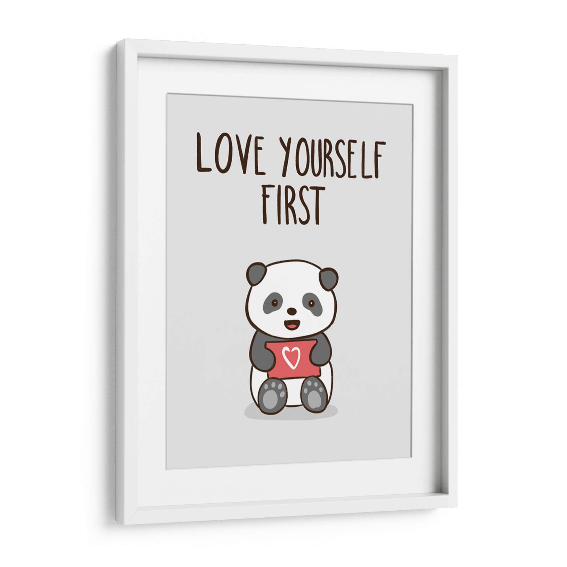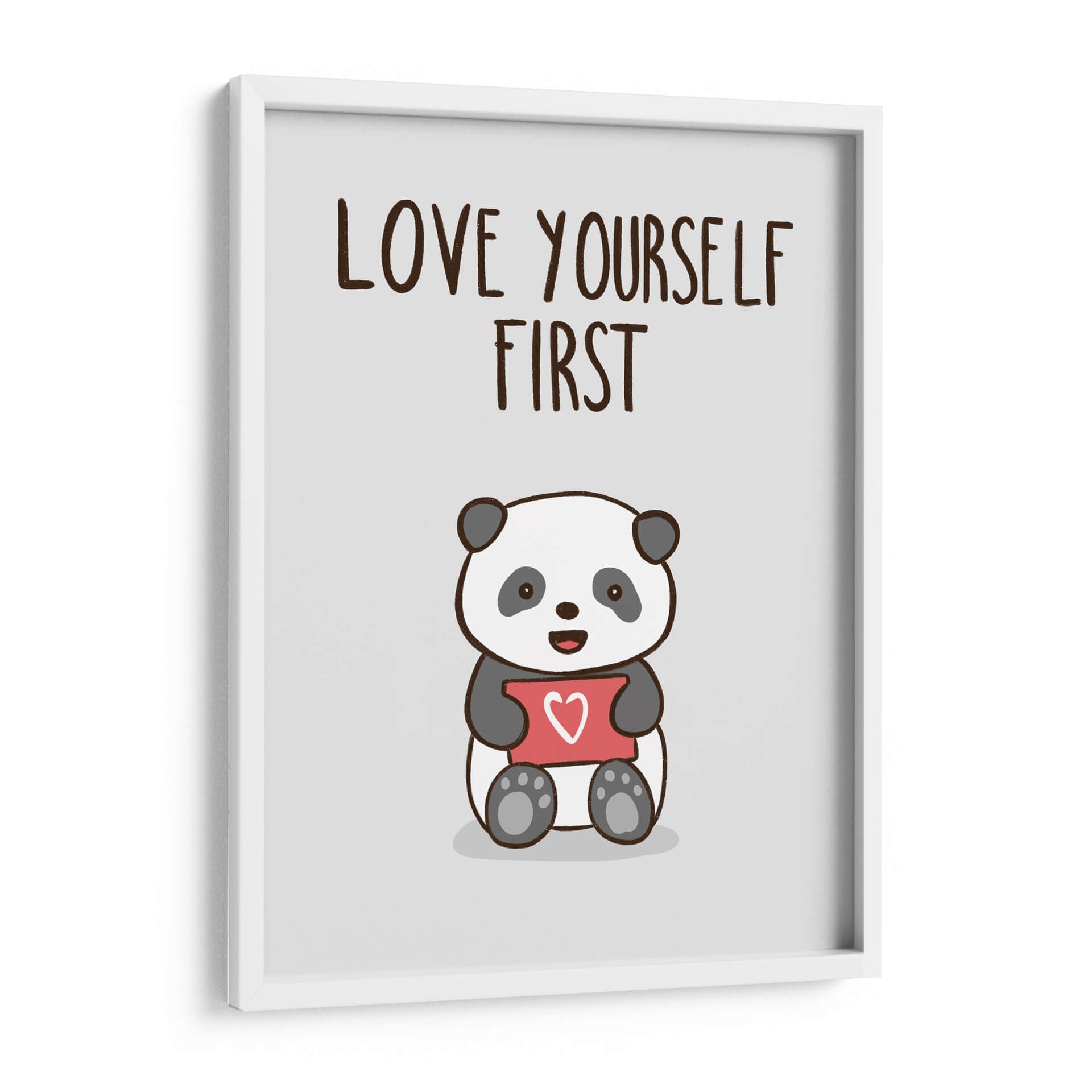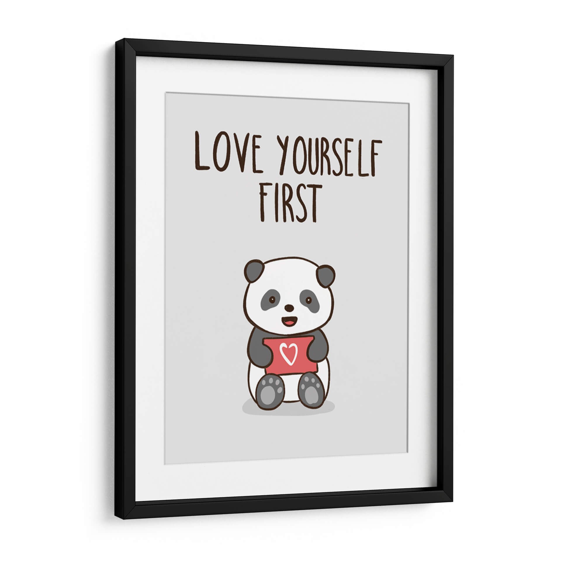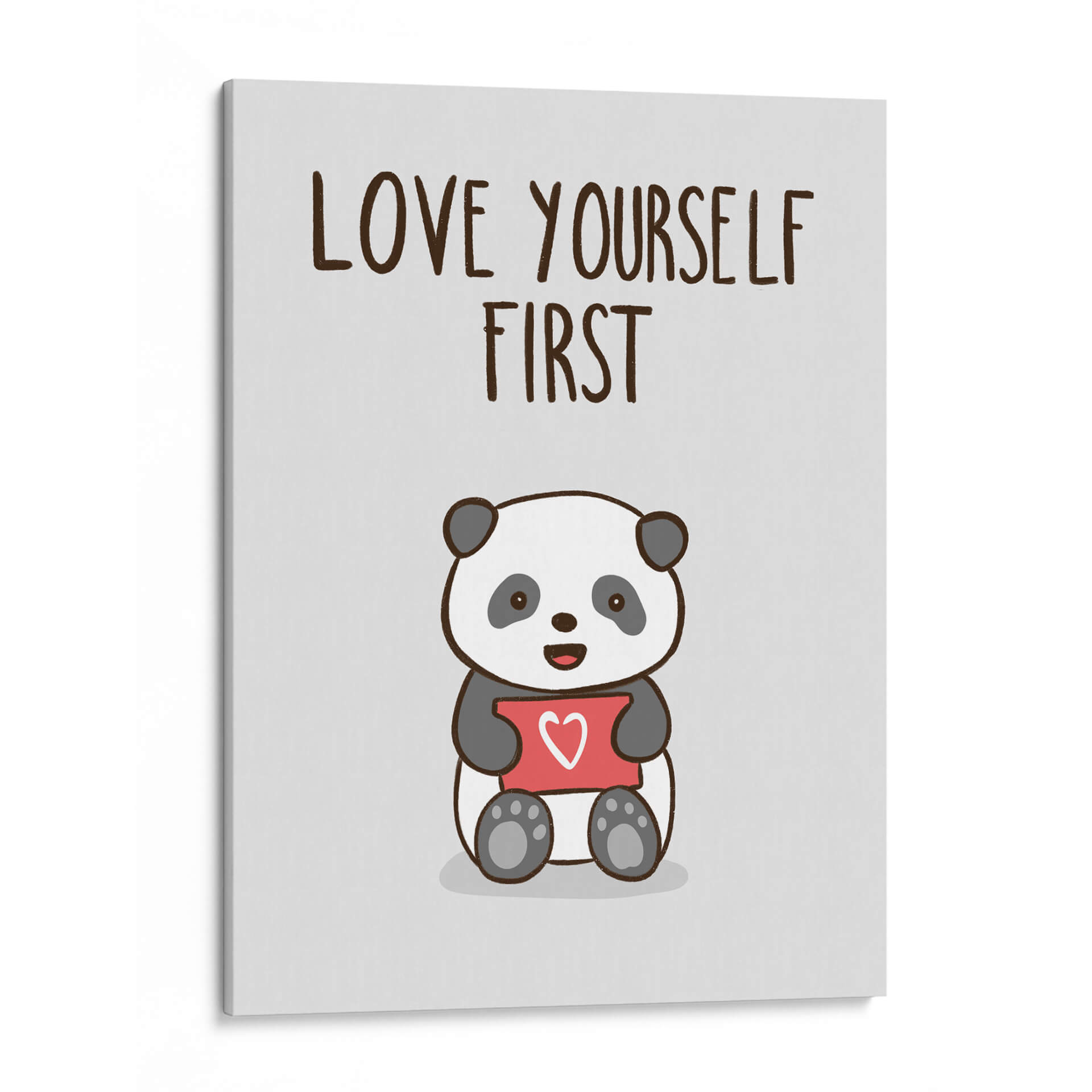 Embárcate en un viaje de autoaceptación con este encantador cuadro decorativo que presenta un tierno panda sosteniendo un corazón rojo y el inspirador mensaje "Love yourself first". La obra, con su estilo de ilustración digital y una paleta de colores suave y acogedora, irradia calidez y positividad. El fondo neutro y los detalles sencillos de este diseño lo convierten en una pieza versátil, perfecta para añadir un toque de dulzura y motivación a cualquier espacio. Ideal para dormitorios infantiles, estudios o cualquier rincón que necesite un recordatorio amable de la importancia del amor propio. Este cuadro es más que una simple decoración; es un mensaje visual de empoderamiento y bienestar, diseñado para inspirar sonrisas y fomentar la autocompasión. Su composición centrada y la clara tipografía aseguran que el mensaje sea el protagonista, mientras que el adorable personaje del panda añade un elemento entrañable y reconfortante. Transforma tu hogar con esta obra de arte única que celebra el amor propio de una manera tierna y memorable, ideal para quienes buscan una decoración que nutra el alma y eleve el espíritu.