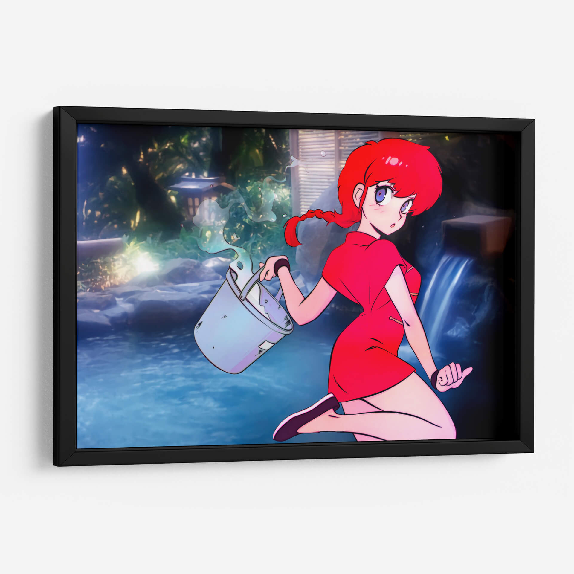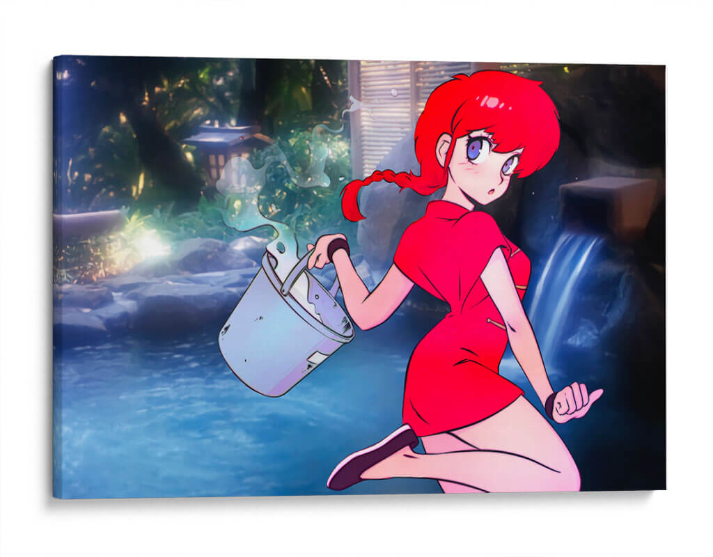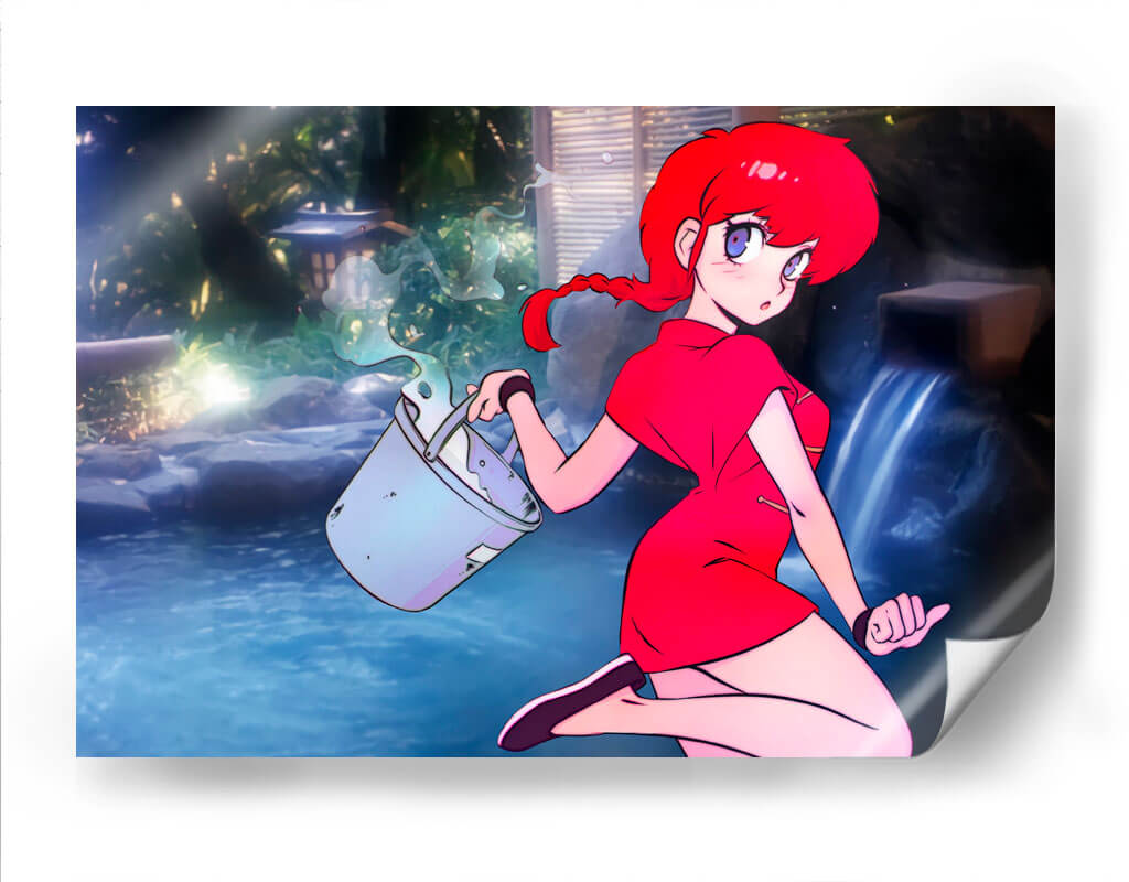 Sumérgete en la atmósfera vibrante de "Ranco con Cubeta", una obra de arte digital que captura la esencia de un momento fugaz con un estilo anime cautivador. La pieza presenta a una joven de cabello rojo intenso y ojos expresivos, vestida con un llamativo traje rojo, quien se encuentra en un entorno sereno que evoca un jardín japonés o un onsen. El azul profundo del agua, contrastando con la vegetación exuberante y las luces tenues, crea un escenario de tranquilidad y misterio. La composición se centra en la figura de la chica y el gesto dinámico de llevar una cubeta de la que se derrama agua, añadiendo un toque de acción a la escena. Esta obra es ideal para quienes buscan inyectar color y un aire de fantasía a sus espacios, ya sea una sala de estar moderna, una oficina creativa o un dormitorio personal. "Ranco con Cubeta" no es solo una decoración, es una ventana a un mundo de fantasía y serenidad, perfecta para añadir un toque único y personal a cualquier ambiente, atrayendo miradas y generando conversaciones. Su estética anime contemporánea la convierte en una pieza versátil para diversos estilos de decoración.