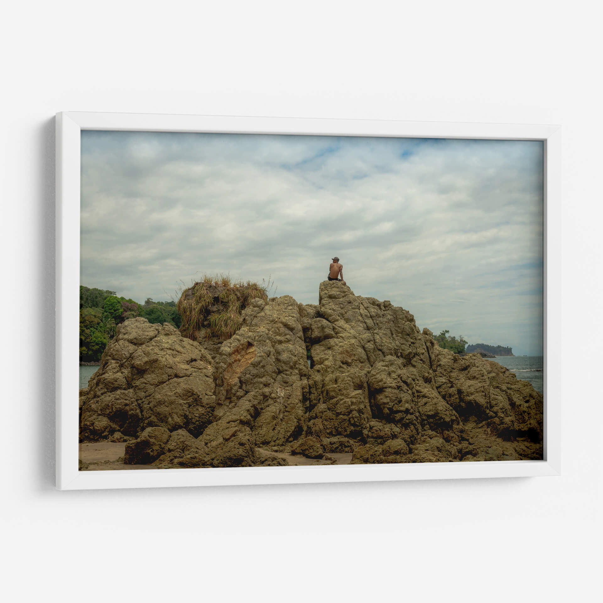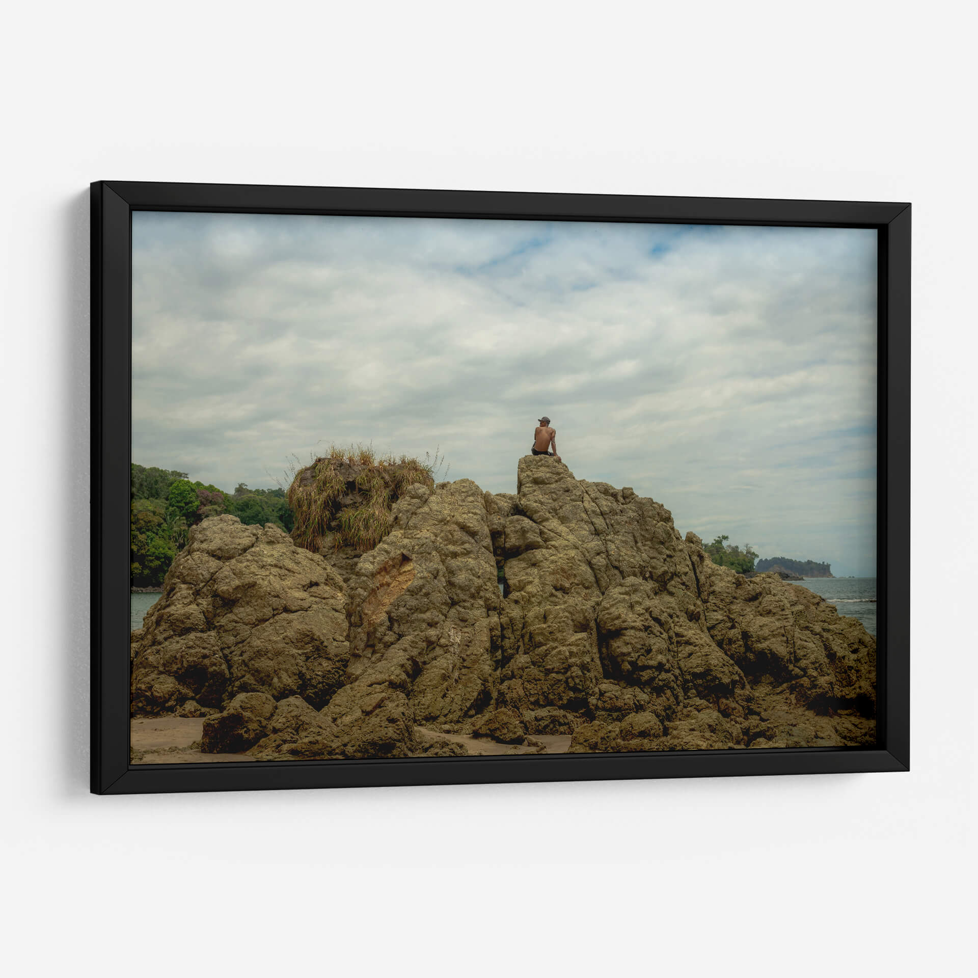 Sumérgete en la contemplación con 'Perfil rocoso', una obra que captura la esencia de la introspección y la conexión con la naturaleza. La pieza presenta una figura solitaria sentada en la cima de una formación rocosa imponente, con el vasto océano y un cielo nublado como telón de fondo. La paleta de colores, dominada por tonos tierra, verdes exuberantes y el gris azulado del cielo, crea una atmósfera serena y reflexiva. La composición, que enfoca la inmensidad del paisaje y la pequeñez humana ante la grandeza natural, invita a la meditación. Este cuadro decorativo es perfecto para espacios que buscan un toque de calma y serenidad, como un dormitorio, un estudio o una sala de estar donde se desee crear un ambiente de paz. La textura de las rocas y la suave bruma marina evocan una sensación de tranquilidad atemporal. 'Perfil rocoso' no es solo una imagen, sino una invitación a encontrar tu propio espacio de reflexión y paz interior. Ideal para quienes aprecian el arte que combina realismo con una profunda carga emocional y una conexión con paisajes evocadores. Añade esta pieza a tu colección para transformar tu hogar en un santuario de serenidad y contemplación.