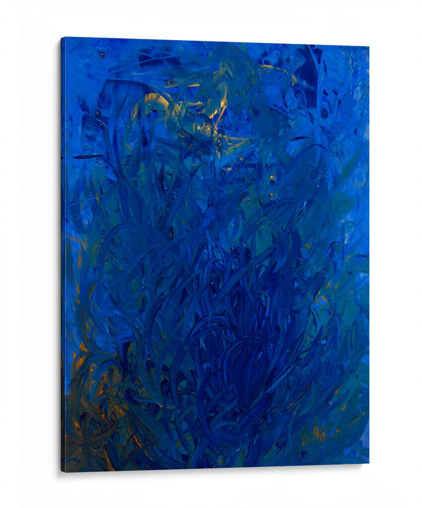 Sumérgete en la profundidad del 'Éxtasis azul Número uno', una obra abstracta cautivadora del artista Carlos Pixley. Este cuadro decorativo es una explosión de energía y serenidad, dominado por una rica paleta de azules intensos que evocan la inmensidad del océano o la calma del cielo nocturno. Las pinceladas audaces y fluidas crean un movimiento hipnótico, invitando al espectador a perderse en sus intrincados patrones. Pequeños toques de dorado se entrelazan sutilmente con el azul, añadiendo destellos de luz y sofisticación, como rayos de sol filtrándose a través de las aguas o estrellas titilando en la oscuridad. La composición abstracta permite una interpretación personal, lo que la convierte en una pieza versátil para cualquier espacio. Ideal para un salón moderno que busque un punto focal vibrante, un estudio que inspire creatividad, o un dormitorio que anhele un toque de tranquilidad profunda. Este cuadro abstracto contemporáneo no es solo decoración, es una invitación a sentir y soñar. Añade una dimensión de color y emoción a tu hogar u oficina con esta pieza única que fusiona la potencia del azul con la delicadeza del oro, creando un equilibrio visual impactante y duradero que transformará tu ambiente.