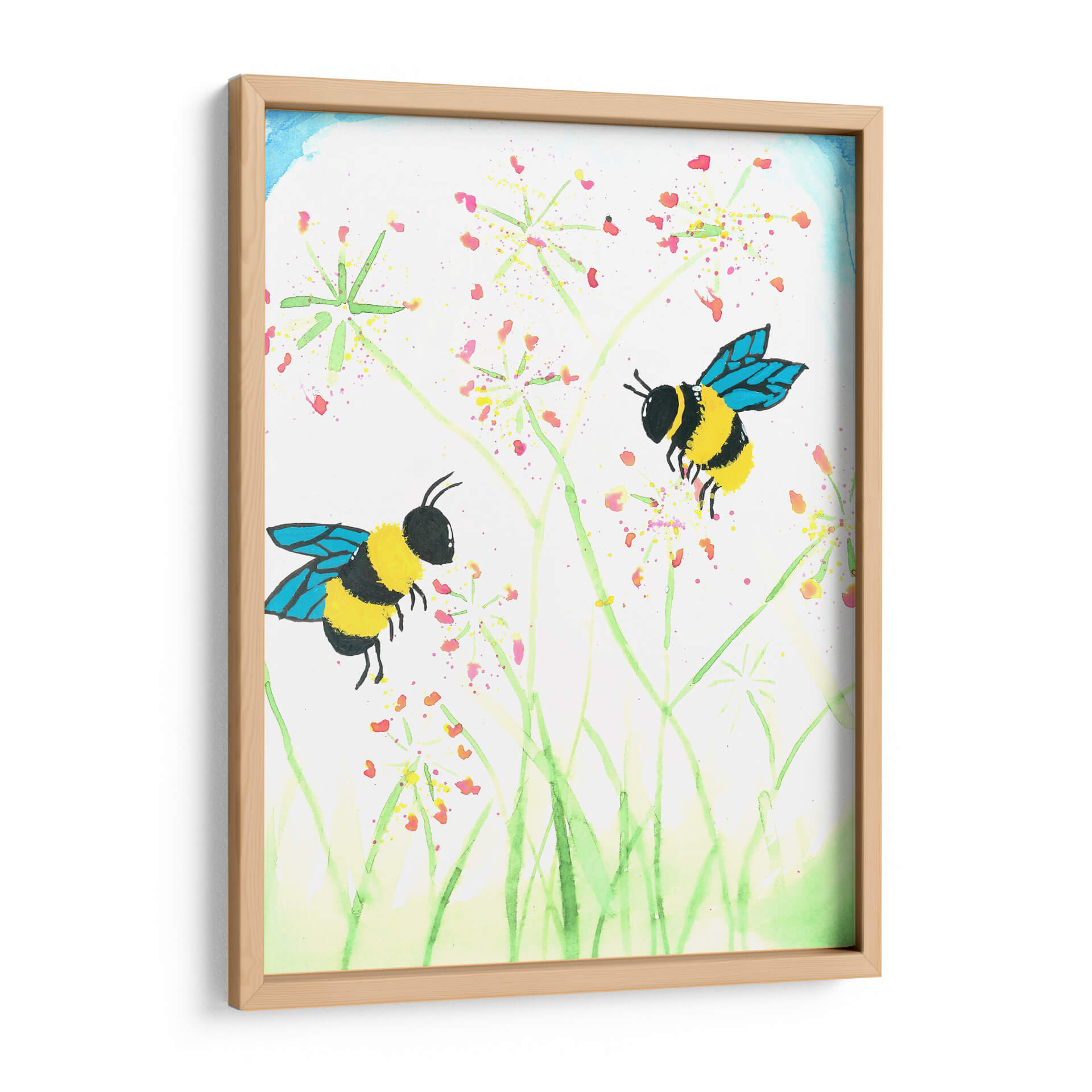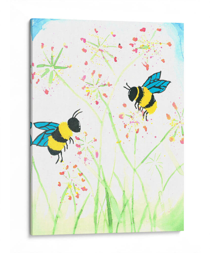 Captura la esencia de la naturaleza y la delicadeza con este encantador cuadro decorativo 'Abejitas de Hadasa Pelcastre'. La obra presenta dos abejas vibrantes, con sus característicos trazos amarillos y negros y alas de un azul cielo que contrastan con el fondo blanco y etéreo. El estilo acuarela, con pinceladas sueltas y salpicaduras de color, aporta una sensación de ligereza y movimiento, como si las abejas danzaran entre las flores. La paleta de colores se centra en verdes suaves para los tallos y flores en tonos rosados y anaranjados, creando una atmósfera alegre y optimista. El cielo, representado con un ligero toque de azul acuarelado, añade profundidad sin abrumar la composición. Este cuadro es ideal para añadir un toque de vida y dulzura a cualquier espacio, ya sea un dormitorio infantil, una sala de estar con un toque rústico o una cocina. Su diseño evoca la calma de un día soleado y la energía de la vida al aire libre. Si buscas arte que transmita alegría y conexión con la naturaleza, 'Abejitas de Hadasa Pelcastre' es la elección perfecta para infundir tu hogar con encanto y vitalidad.