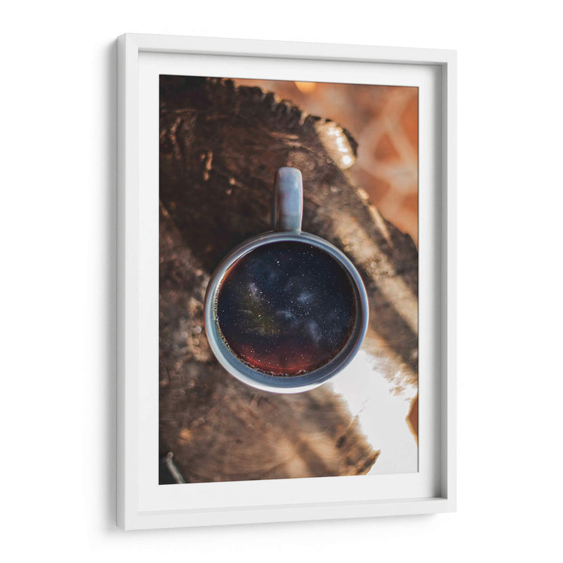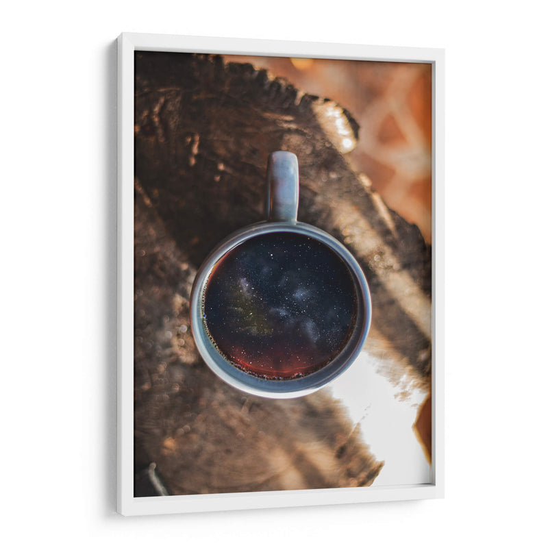 Sumérgete en la inmensidad del universo con "Café del Universo", una obra de arte única de Chepo Murua. Este cuadro decorativo captura un momento surrealista y fascinante, donde una taza de café oscuro se convierte en un portal a la galaxia. La superficie del líquido refleja un cielo estrellado, invitando a la contemplación y al asombro. Los tonos profundos del café y el cielo nocturno se complementan con las texturas orgánicas y cálidas del fondo, creando un contraste visual cautivador. La composición, centrada en la taza, dirige la mirada del espectador hacia el misterio del cosmos contenido en lo cotidiano. Es una pieza ideal para aquellos que buscan añadir un toque de originalidad, intriga y un sentido de la maravilla a su hogar u oficina. Perfecta para espacios que buscan un punto de conversación, este cuadro decorativo evoca sensaciones de calma, profundidad y la conexión entre lo terrenal y lo infinito. Añade esta pieza inspiradora a tu colección y transforma cualquier ambiente en un rincón de ensueño cósmico, ideal para salas de estar, estudios o dormitorios que buscan un toque de magia.