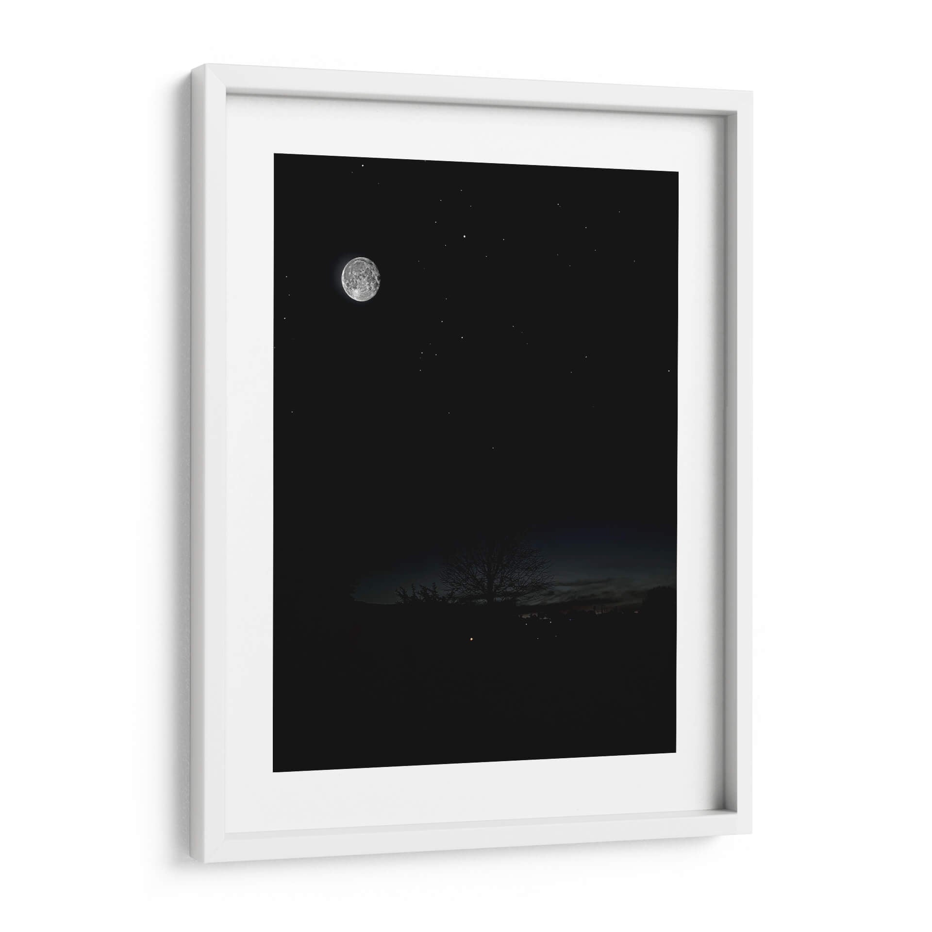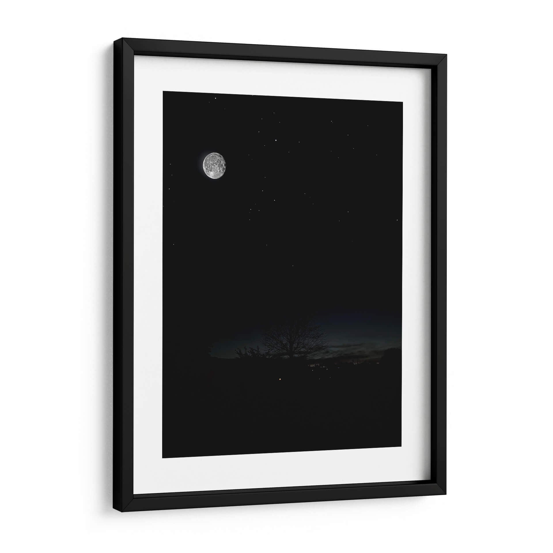 Sumérgete en la serenidad de la noche con "La Luna y el Árbol 1", una obra de arte que captura la magia del firmamento estrellado sobre un paisaje silueteado. La imponente luna llena ilumina la escena, rodeada por la sutil presencia de estrellas que adornan el cielo oscuro. En primer plano, la silueta de un árbol desnudo se erige como un guardián silencioso, añadiendo un toque de misterio y contemplación. La paleta de colores, dominada por negros profundos y grises tenues con el blanco brillante de la luna, crea una atmósfera de calma y tranquilidad, perfecta para espacios que buscan evocar paz y reflexión. Este cuadro decorativo es ideal para dormitorios, estudios o cualquier rincón de tu hogar donde desees introducir un elemento de calma nocturna y belleza natural. La composición minimalista y la atmósfera etérea hacen de "La Luna y el Árbol 1" una pieza versátil que complementa estilos de decoración modernos, escandinavos o contemporáneos, aportando un toque de elegancia atemporal y una conexión con la inmensidad del universo. Transforma tu espacio con la poesía visual de esta cautivadora obra.