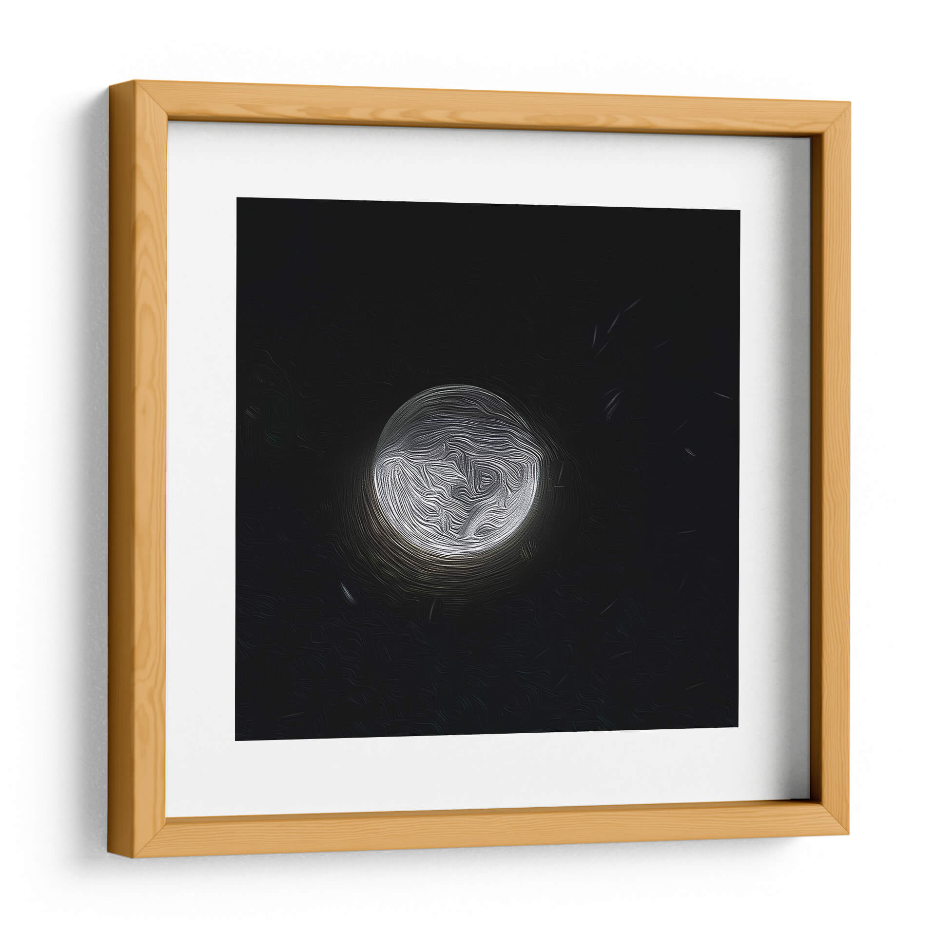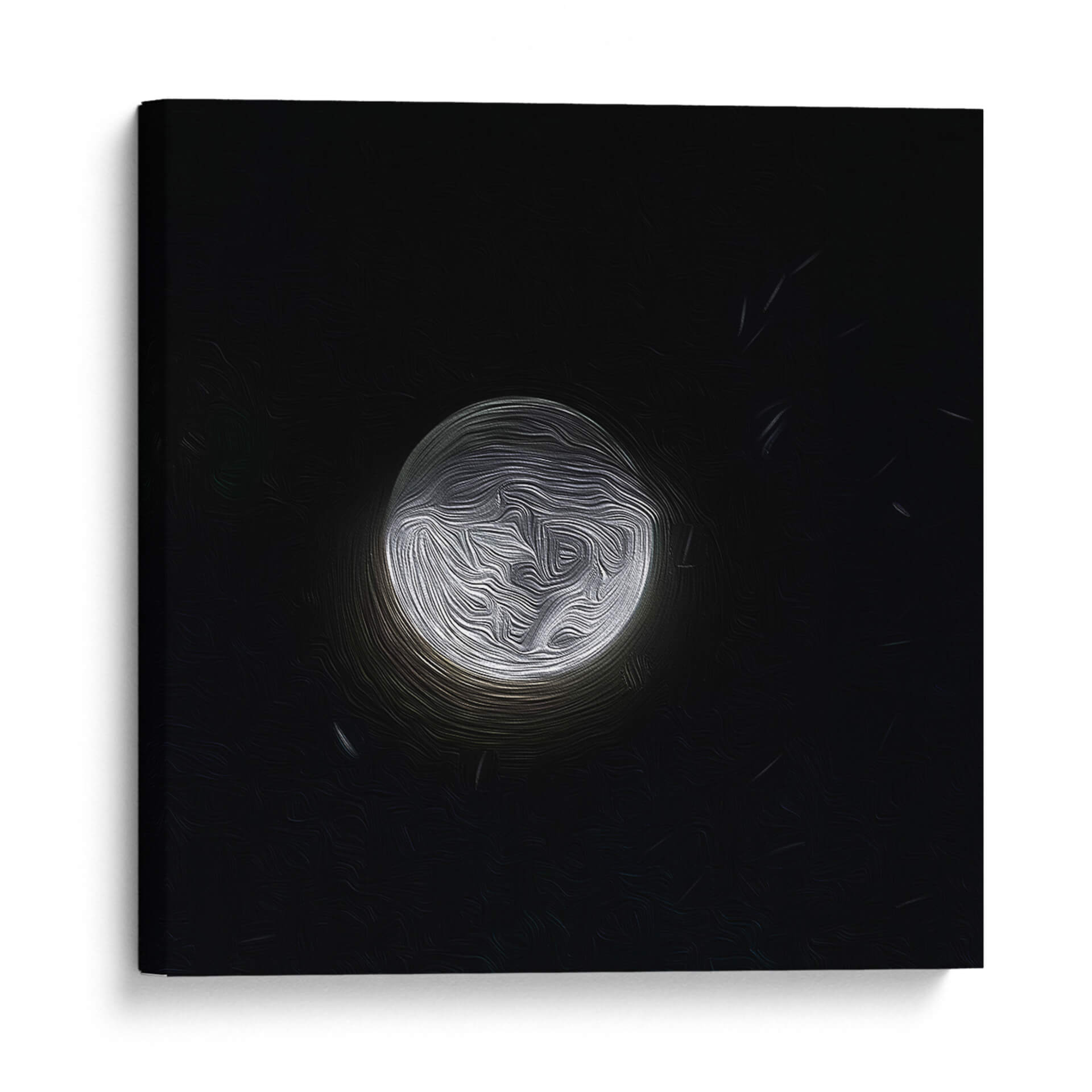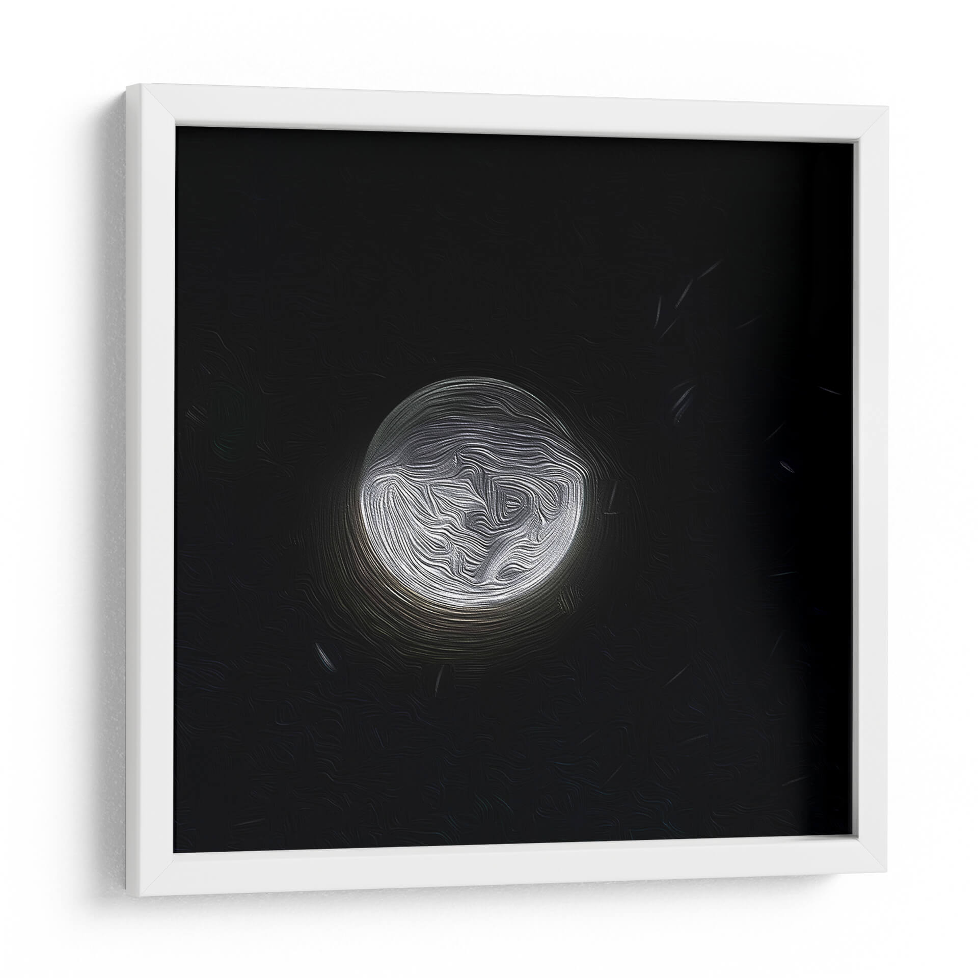 Sumérgete en la enigmática belleza de "LUNA PINTADA 2", una obra de arte contemporáneo que captura la esencia etérea de la noche. Este cuadro decorativo presenta una representación abstracta y texturizada de la luna, bañada en una luz plateada que contrasta dramáticamente con un fondo negro profundo. Las pinceladas fluidas y orgánicas crean una sensación de movimiento y profundidad, invitando al espectador a perderse en sus intrincados detalles. La paleta de colores es sutil pero impactante, dominada por los blancos y grises luminosos de la luna y el vacío oscuro del espacio, evocando una atmósfera de misterio, calma y contemplación. Ideal para añadir un toque de sofisticación moderna a cualquier sala de estar, dormitorio u oficina, esta pieza abstracta sirve como un punto focal cautivador. Su diseño minimalista pero expresivo la convierte en una adición versátil para diversos estilos de decoración, desde lo contemporáneo hasta lo ecléctico. "LUNA PINTADA 2" no es solo una decoración de pared, es una invitación a la reflexión, un pedazo de cosmos en tu propio hogar que inspira paz y asombro ante la inmensidad del universo. Añade esta pieza única para transformar tu espacio en un santuario de serenidad y estilo.