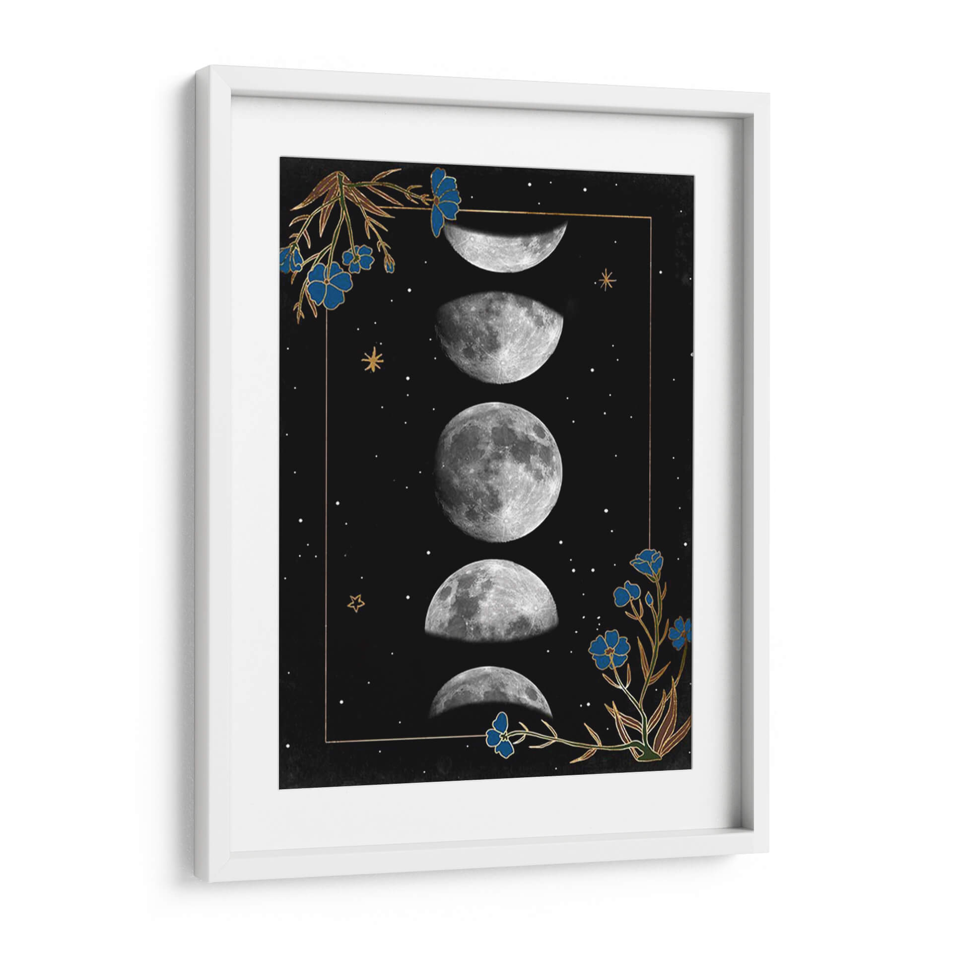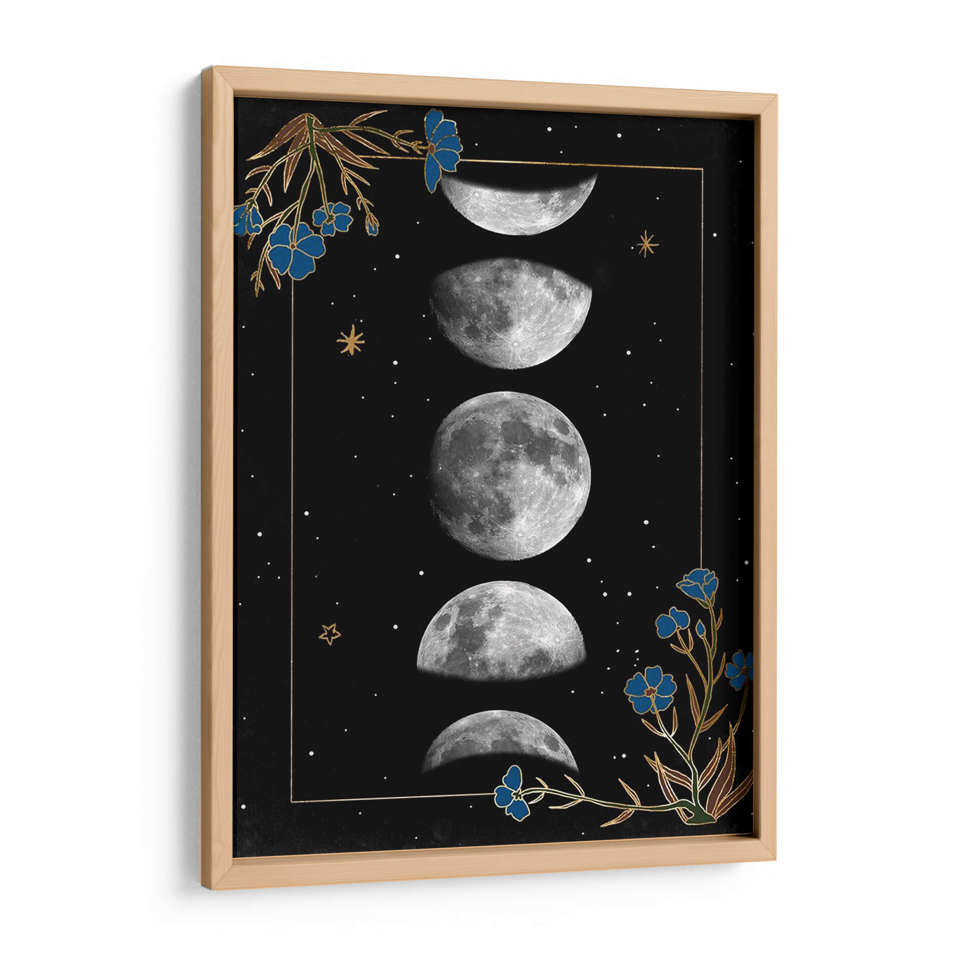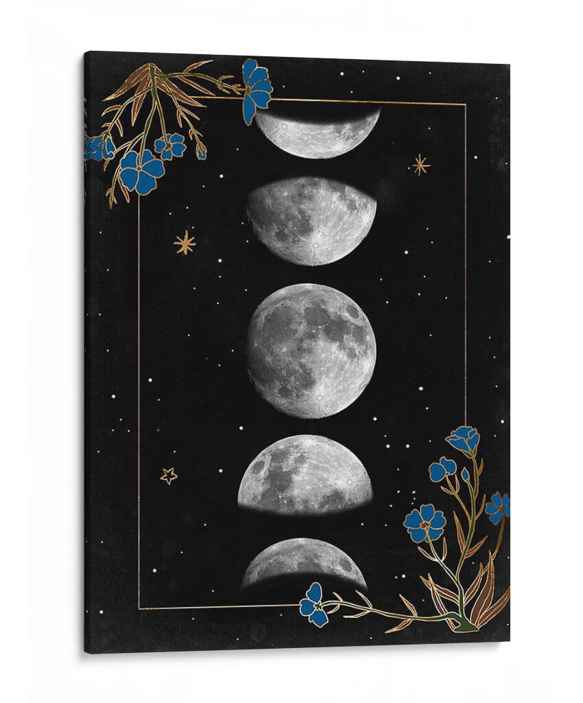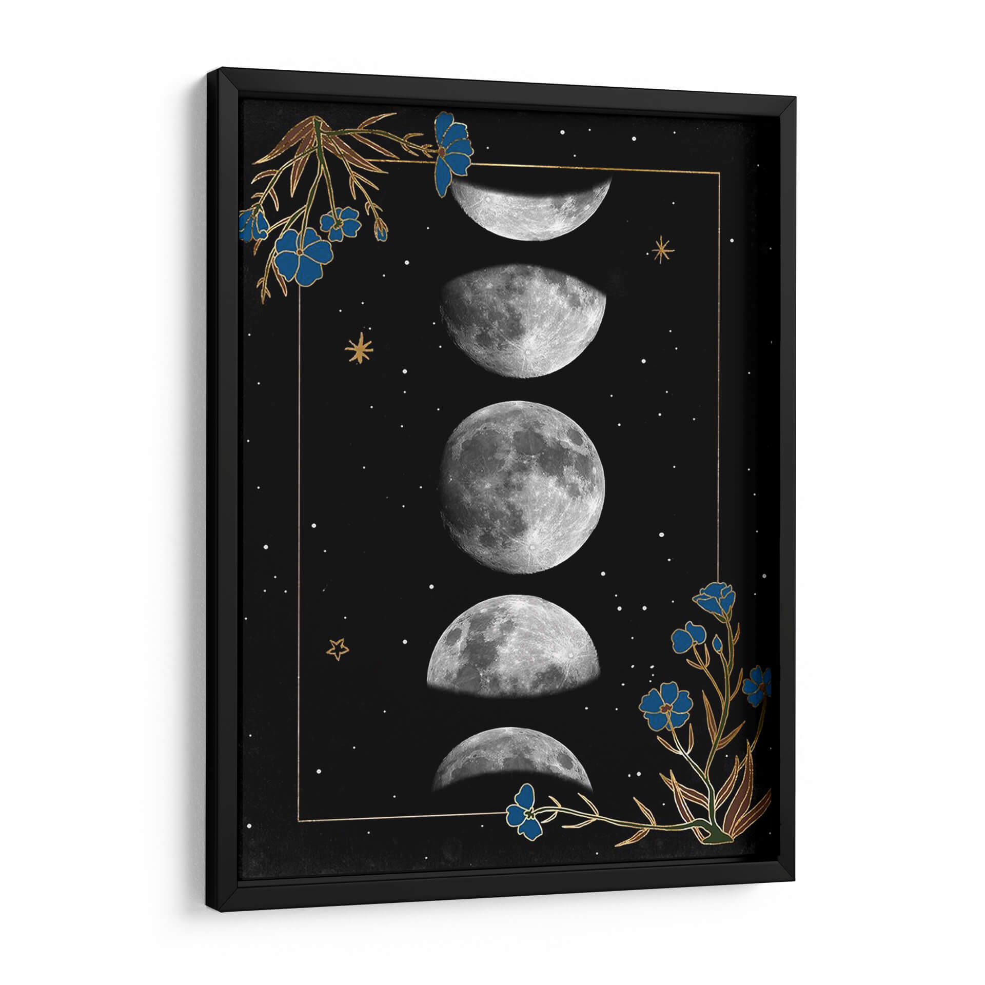 Sumérgete en la mística del cosmos con "Noche Luna I", una cautivadora obra de arte de Melissa Wang. Este cuadro decorativo presenta una secuencia hipnótica de las fases lunares, desde la luna nueva hasta la luna llena, suspendidas en un profundo y estrellado cielo nocturno. Los detalles realistas de la superficie lunar contrastan elegantemente con las delicadas pinceladas de flores azules y ramas doradas que enmarcan la composición, añadiendo un toque de sofisticación terrenal a la maravilla celestial. La paleta de colores, dominada por negros profundos, grises lunares y acentos vibrantes de azul y dorado, crea una atmósfera de serenidad, misterio y conexión con la naturaleza. Ideal para quienes buscan infundir a su hogar u oficina una sensación de calma, introspección y asombro cósmico. "Noche Luna I" es más que una simple decoración de pared; es una invitación a contemplar la belleza cíclica del universo y a encontrar tu propio ritmo en la sinfonía de la noche. Perfecta para salones, dormitorios o estudios que deseen un punto focal evocador y lleno de personalidad.