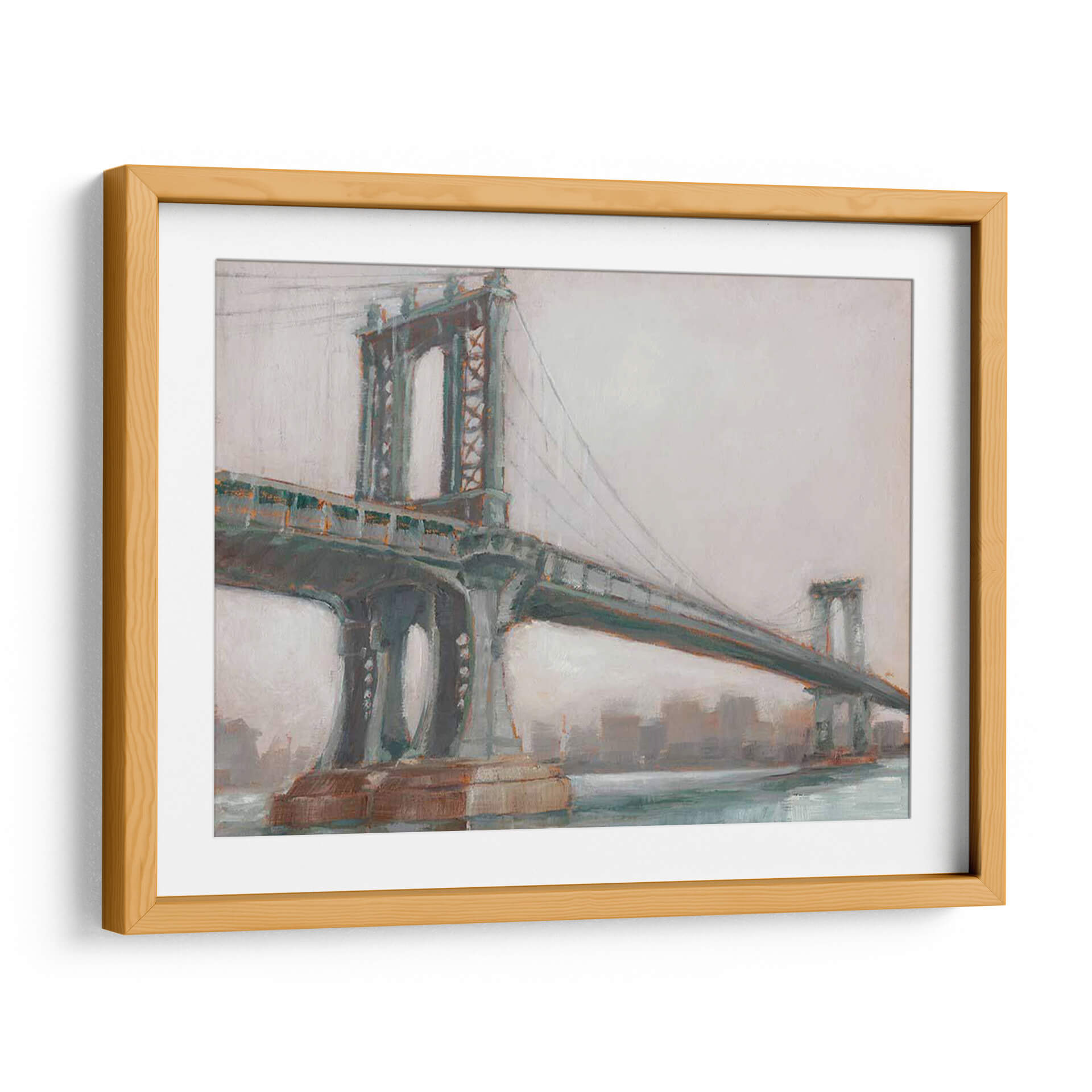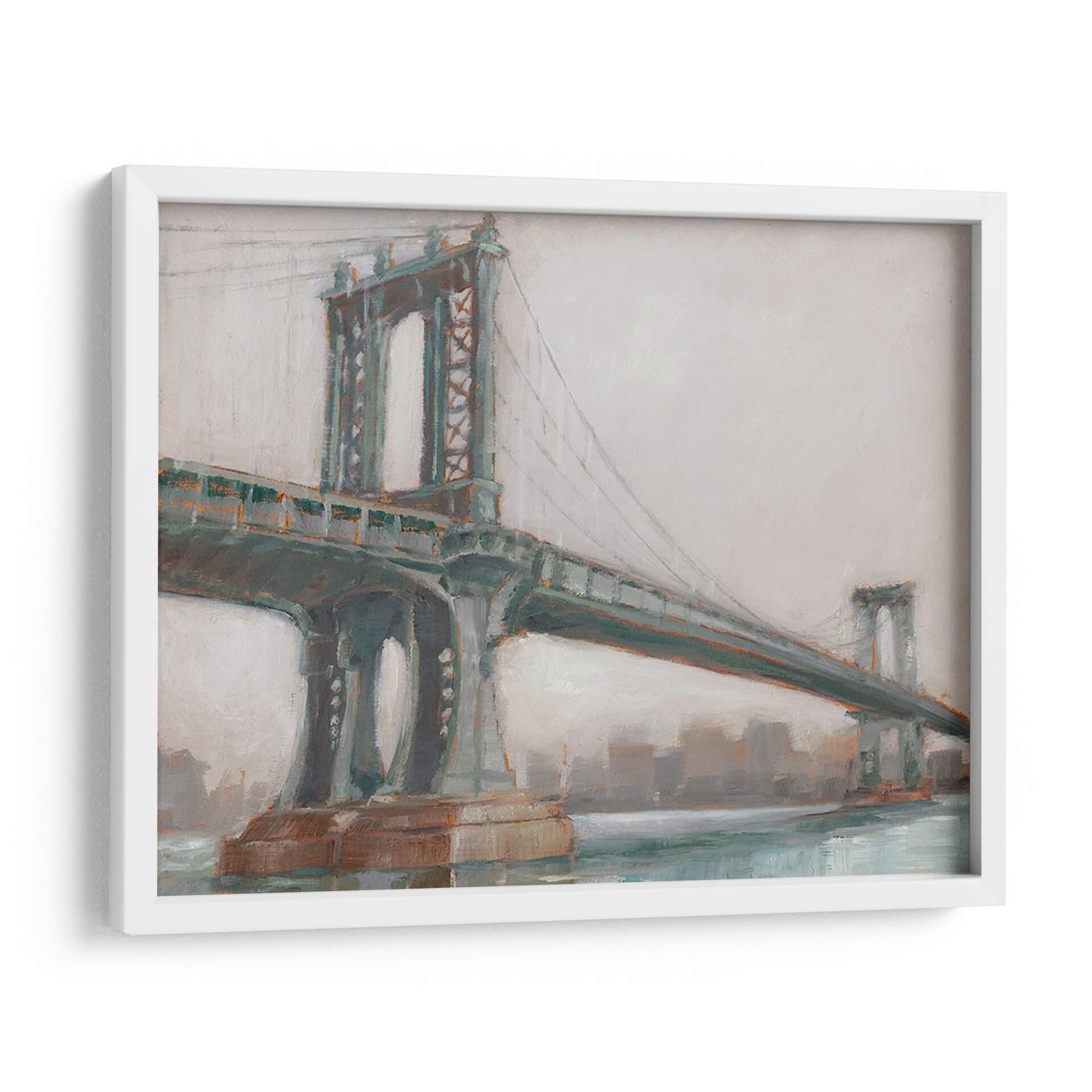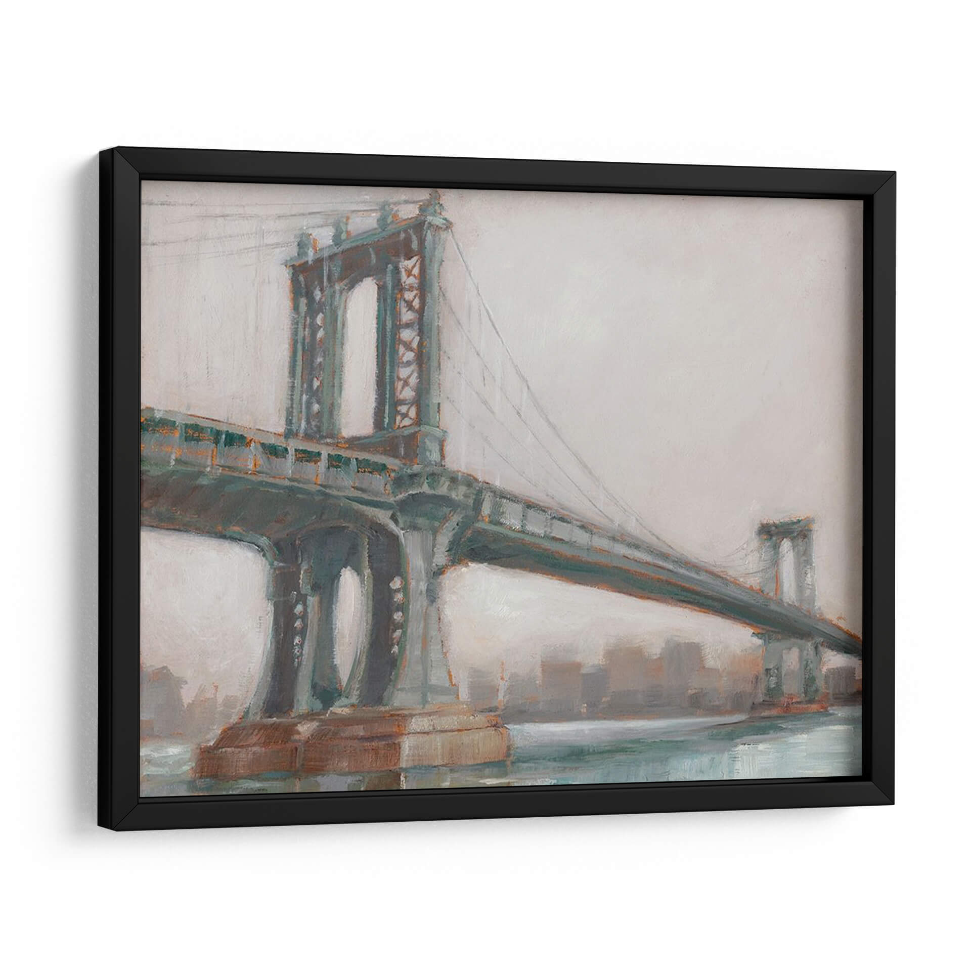 Captura la majestuosidad urbana con "Ante El East River II", una obra de arte que evoca la atmósfera neoyorquina. Este cuadro decorativo, pintado por Ethan Harper, presenta una interpretación impresionista del icónico puente, con sus robustas estructuras de acero teñidas de tonos verde azulado y ocres, emergiendo de una neblina etérea. El agua del río, representada con pinceladas sueltas y tonos fríos, añade una sensación de calma y movimiento reflexivo. La paleta de colores, dominada por grises suaves, azules verdosos y toques de óxido, crea una atmósfera melancólica y serena, ideal para espacios que buscan un toque de sofisticación urbana sin ser abrumadores. Las sutiles siluetas de la ciudad en el fondo, difuminadas por la bruma, refuerzan la profundidad y el carácter introspectivo de la pieza. "Ante El East River II" es perfecto para añadir un punto de interés visual a una sala de estar moderna, un estudio o una oficina, invitando a la contemplación y al aprecio por la arquitectura industrial transformada en arte. Una pieza que trasciende el tiempo y celebra la belleza de los paisajes urbanos.