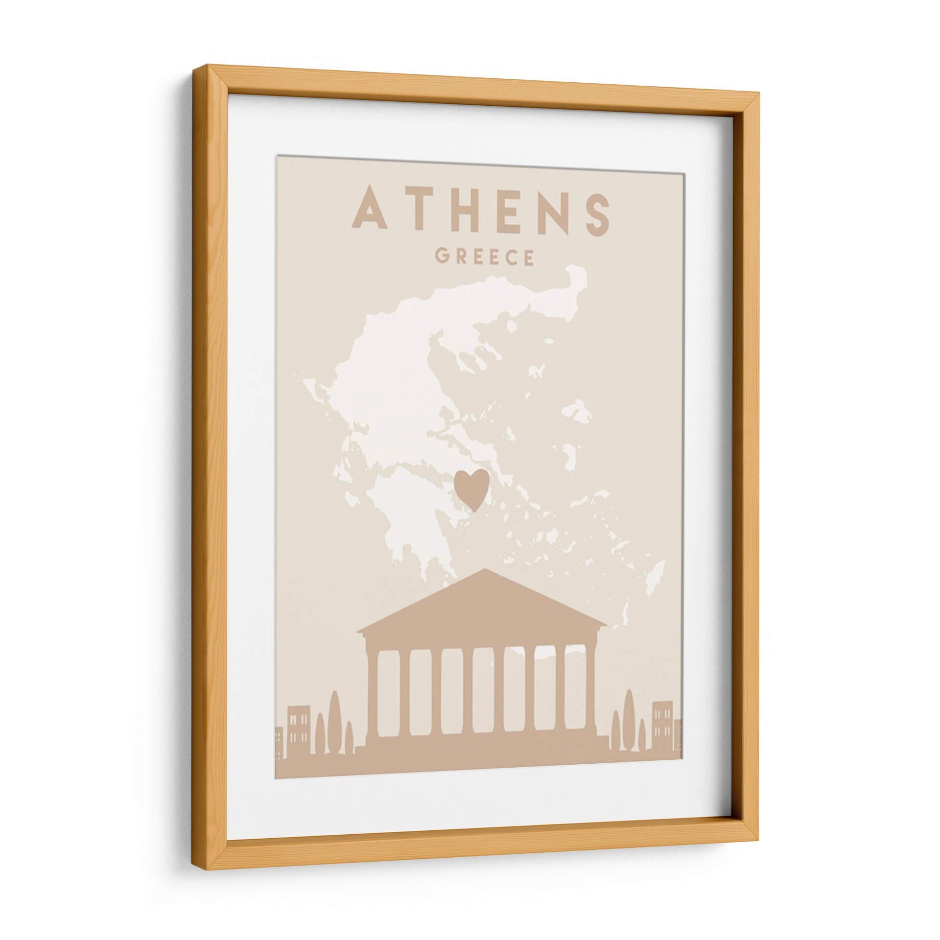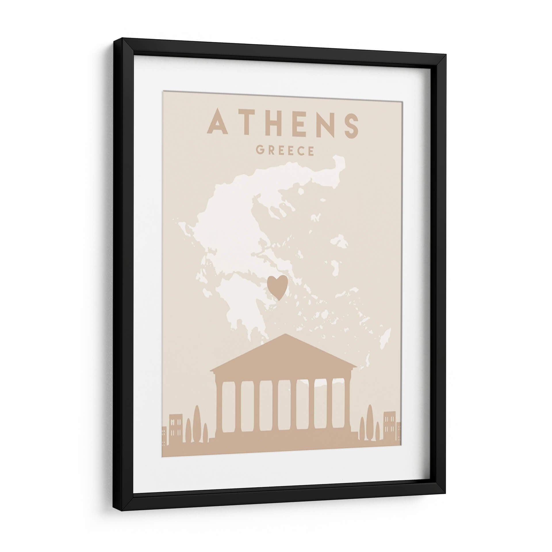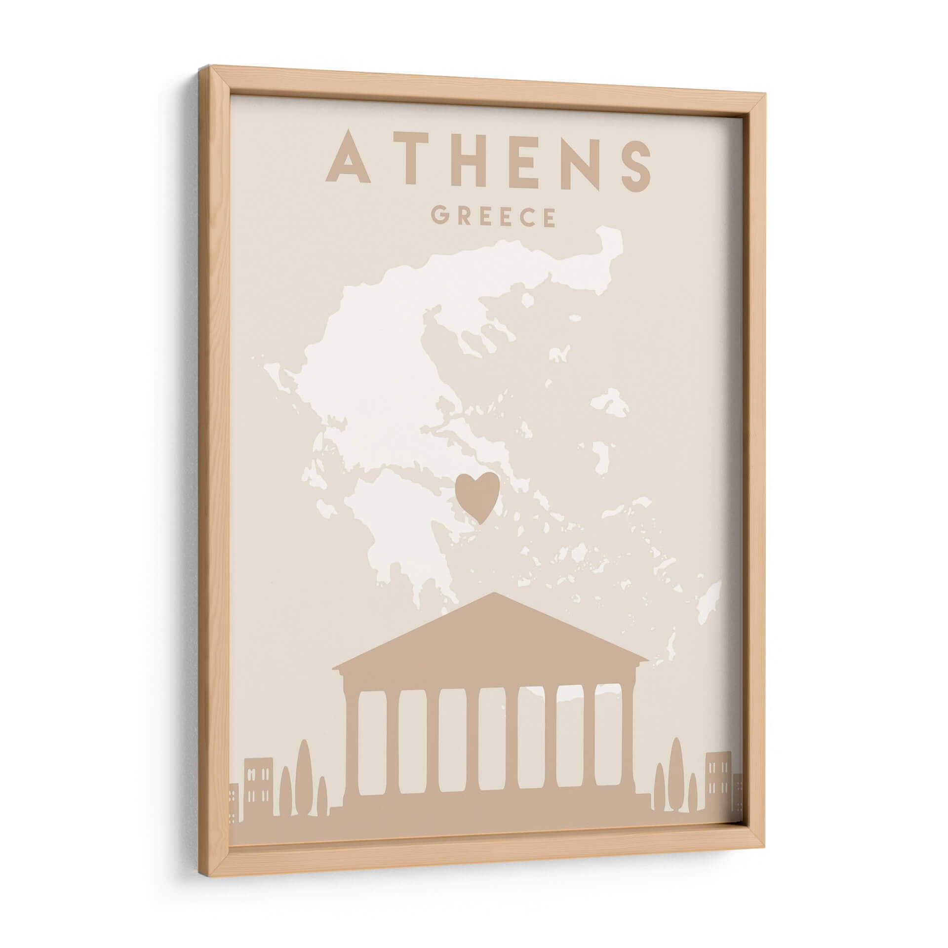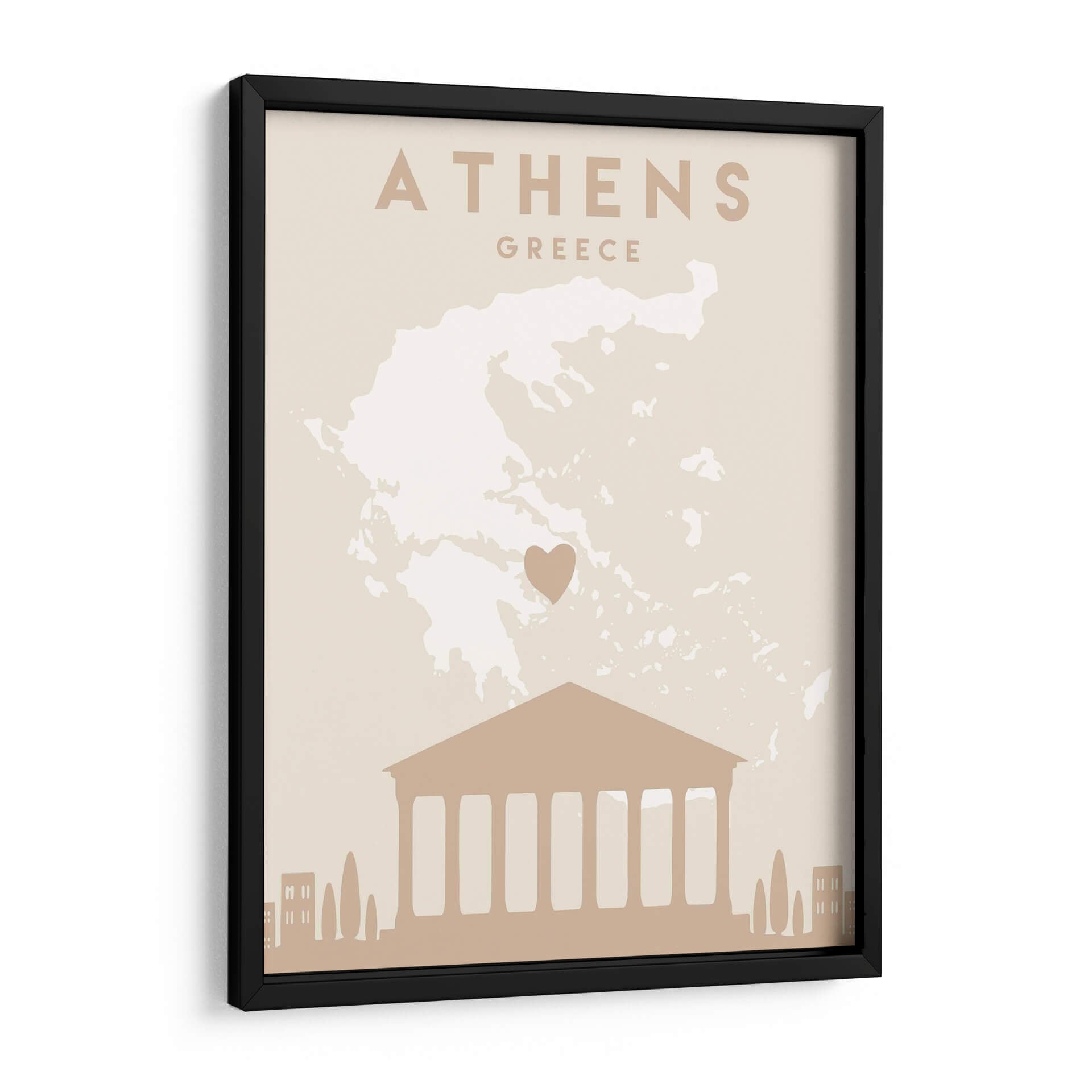 Celebra la esencia de Atenas con este cautivador cuadro decorativo, una pieza que fusiona la geografía de Grecia con un guiño al corazón de su capital. La obra presenta una estilizada silueta del mapa de Grecia, con un distintivo corazón que marca la ubicación de Atenas, evocando un profundo sentido de pertenencia y amor por la ciudad. Debajo, la icónica arquitectura de un templo griego, junto con un sutil perfil urbano, añade una capa de historia y modernidad a la composición. La paleta de colores neutros y terrosos, con tonos beige y marrones suaves, crea una atmósfera de calma y sofisticación, permitiendo que la pieza se integre armoniosamente en una variedad de estilos decorativos, desde el minimalista hasta el bohemio chic. Este cuadro es ideal para quienes buscan añadir un toque de elegancia y significado a su hogar u oficina, sirviendo como un recordatorio visual de viajes memorables o aspiraciones de descubrimiento. Su diseño limpio y contemporáneo lo convierte en un punto focal interesante sin abrumar el espacio, perfecto para salones, dormitorios o estudios.