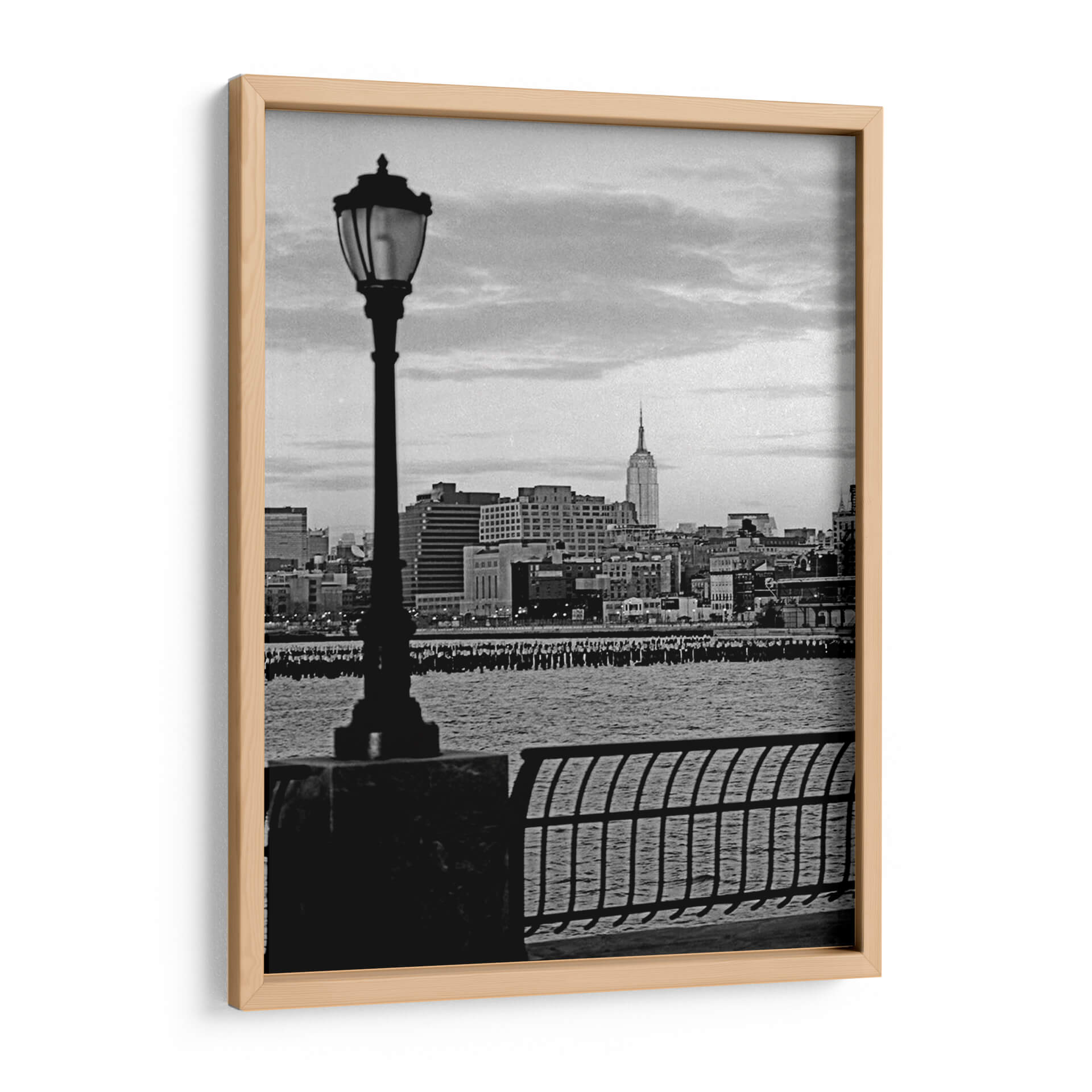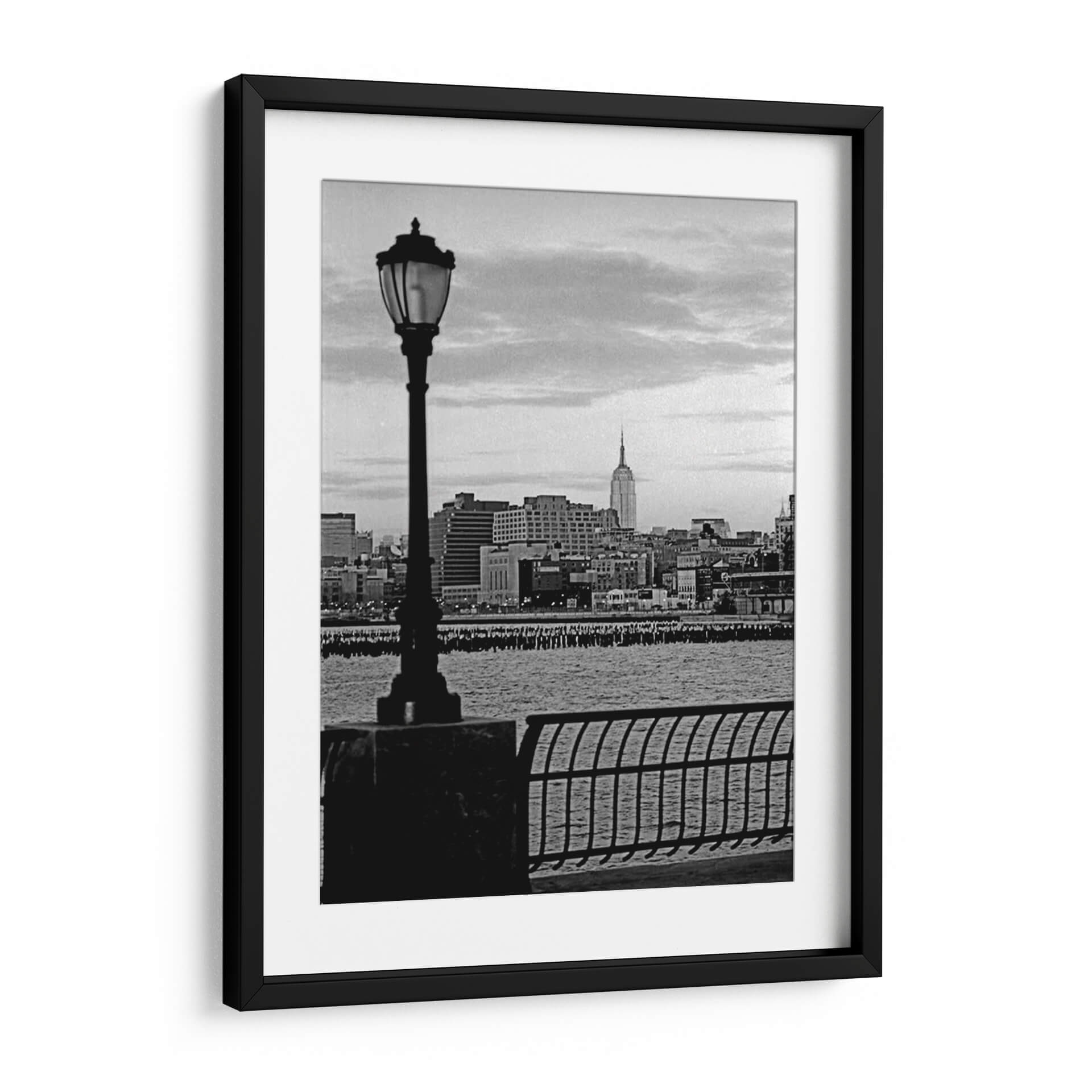 Sumérgete en la icónica silueta de Nueva York con "Battery Park City II" de Jeff Pica. Este cautivador cuadro decorativo en blanco y negro captura la majestuosidad de la ciudad, con el imponente Empire State Building asomando entre un denso conjunto de edificios urbanos. La fotografía evoca una atmósfera melancólica y nostálgica, acentuada por la presencia de una farola clásica en primer plano, que parece guiar la mirada hacia el horizonte metropolitano. El agua tranquila del río, bordeada por un elegante barandal, añade un toque de serenidad al dinamismo urbano, creando un contraste visual fascinante. La paleta monocromática, rica en matices de grises, confiere a la obra una elegancia atemporal y versátil, permitiendo que se integre a la perfección en diversos estilos decorativos, desde el moderno hasta el industrial. "Battery Park City II" es más que una simple imagen; es una invitación a revivir la energía y el encanto de una de las ciudades más vibrantes del mundo, ideal para añadir carácter y profundidad a tu sala de estar, oficina o cualquier espacio que desees transformar en un rincón de inspiración urbana. Descubre la belleza de la arquitectura y el espíritu neoyorquino a través de la lente artística de Jeff Pica.