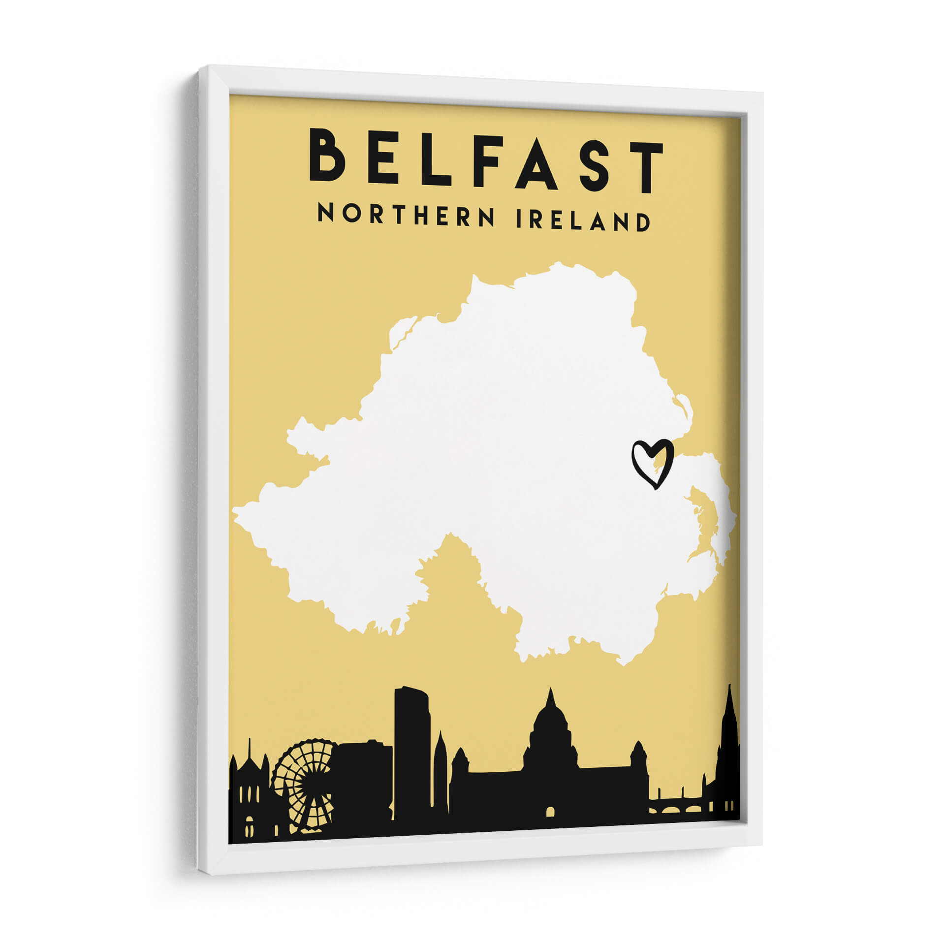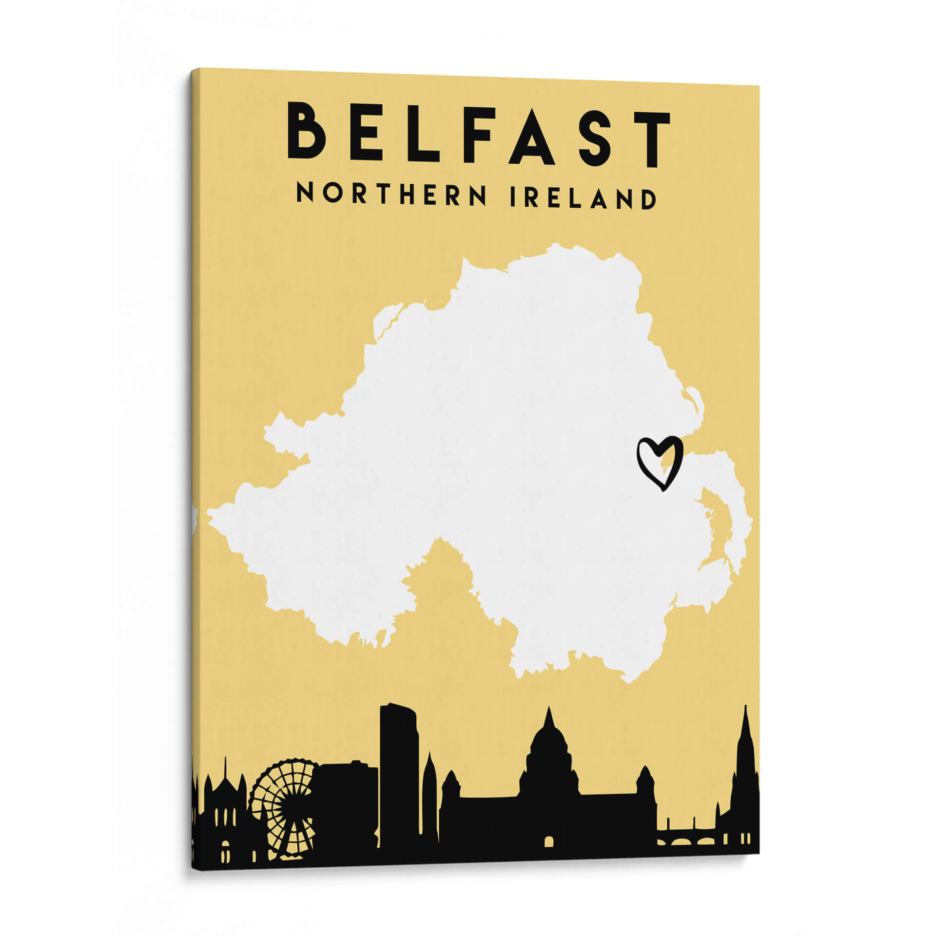 Lleva la esencia de Belfast a tu hogar con este evocador cuadro decorativo de la colección 'Mapas de amor de la ciudad'. Diseñada por Emiliano Deificus, esta obra captura la silueta icónica de la ciudad sobre un fondo de color amarillo vibrante y cálido. La silueta en negro contrasta nítidamente con el mapa blanco de Irlanda del Norte, destacando los puntos de referencia urbanos como la noria y edificios emblemáticos, mientras que un pequeño corazón negro señala simbólicamente la ubicación de Belfast. Este cuadro decorativo minimalista y moderno es perfecto para añadir un toque de personalidad a cualquier espacio, ya sea una sala de estar, un dormitorio o una oficina. Su estilo gráfico y la paleta de colores distintiva lo convierten en una pieza versátil que complementa una amplia gama de decoraciones interiores. Ideal para amantes de los viajes, aquellos con una conexión personal con Belfast o simplemente para quienes aprecian el arte contemporáneo con un toque geográfico. Añade este mapa estilizado de Belfast a tu colección de arte de pared y celebra la belleza de las ciudades.