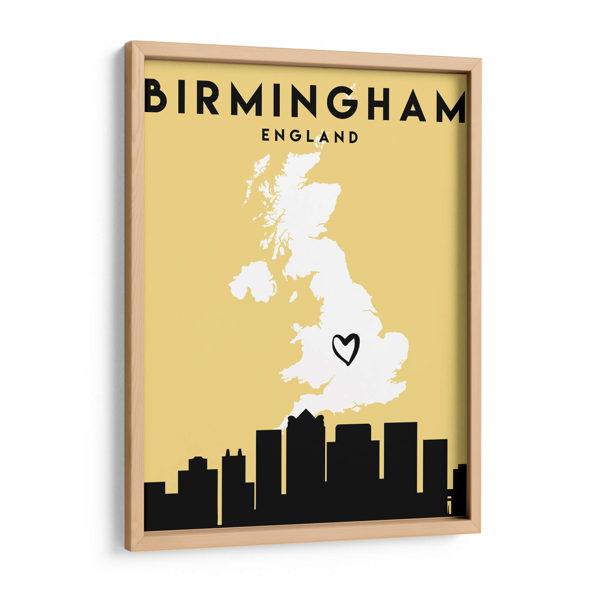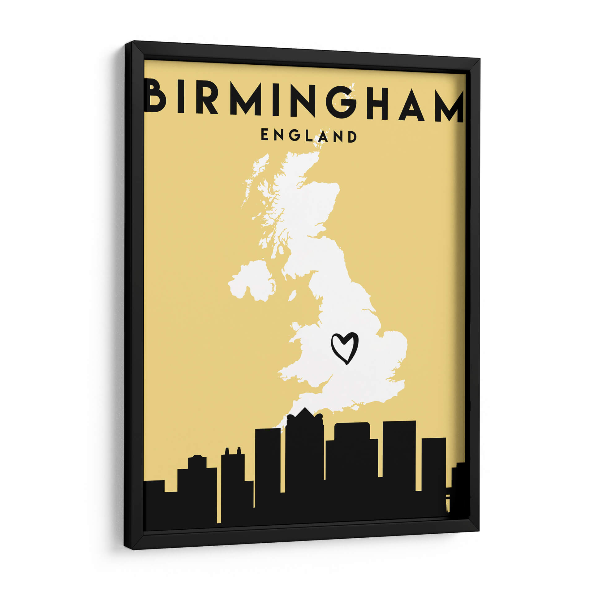 Celebra tu conexión con la ciudad de Birmingham con este evocador cuadro decorativo, parte de la exclusiva colección 'Mapas de Amor de la Ciudad' de Emiliano Deificus. Esta obra captura la esencia de Birmingham a través de un diseño estilizado y moderno, donde la silueta de la ciudad se fusiona con un mapa de Inglaterra, destacando la ubicación de Birmingham con un sutil corazón negro. La paleta de colores, dominada por un suave fondo amarillo ocre y contrastes nítidos en negro, crea una atmósfera cálida y acogedora, a la vez que contemporánea. Es una pieza de arte ideal para aquellos que desean personalizar su hogar u oficina con un toque de identidad y nostalgia, recordando lugares especiales o celebrando el espíritu de esta vibrante ciudad inglesa. Su estilo minimalista y gráfico la convierte en un punto focal versátil, perfecto para salas de estar modernas, estudios o pasillos, aportando un aire de sofisticación urbana y un recordatorio visual de tus afectos geográficos. Añade un toque distintivo a tu decoración con este mapa de amor artístico.
