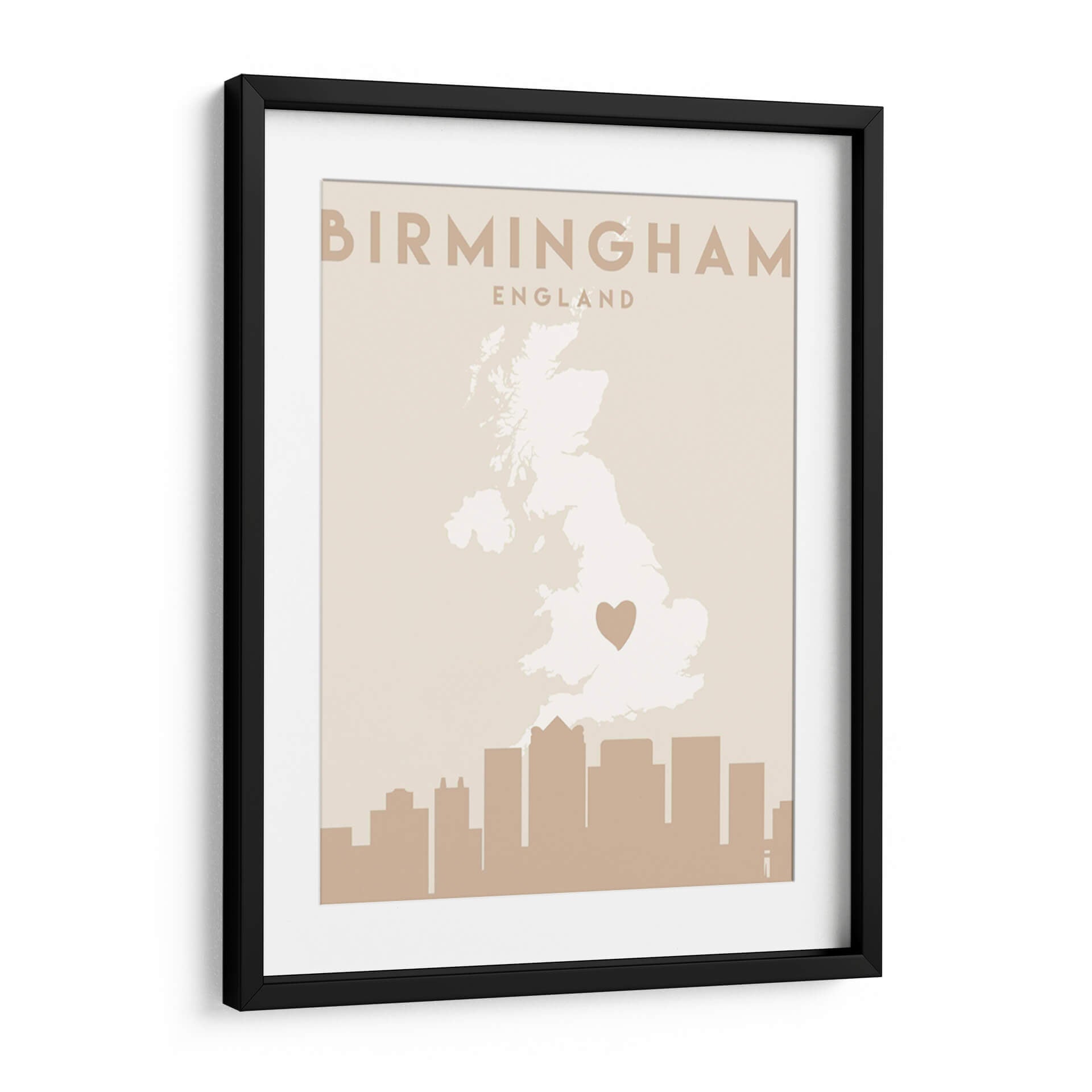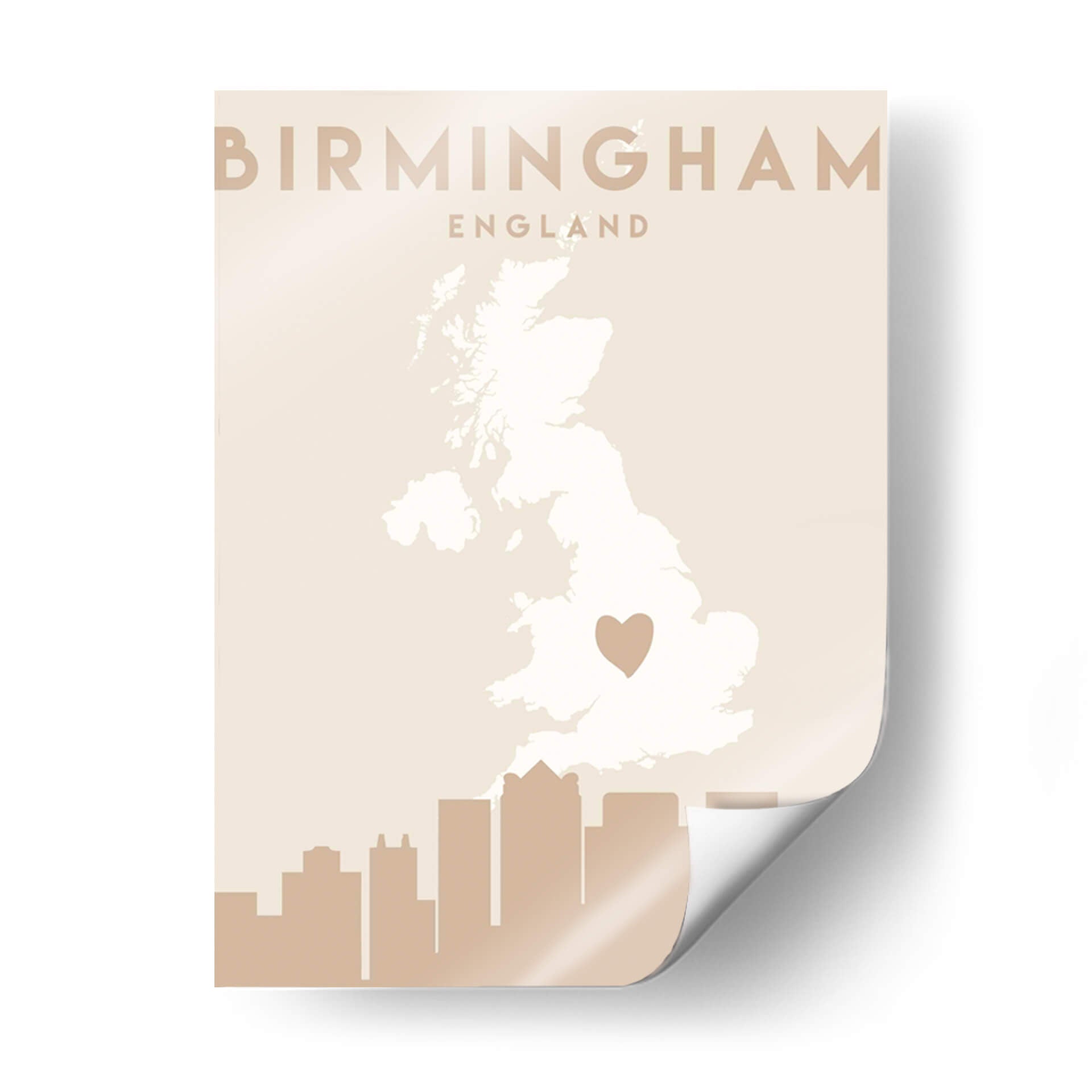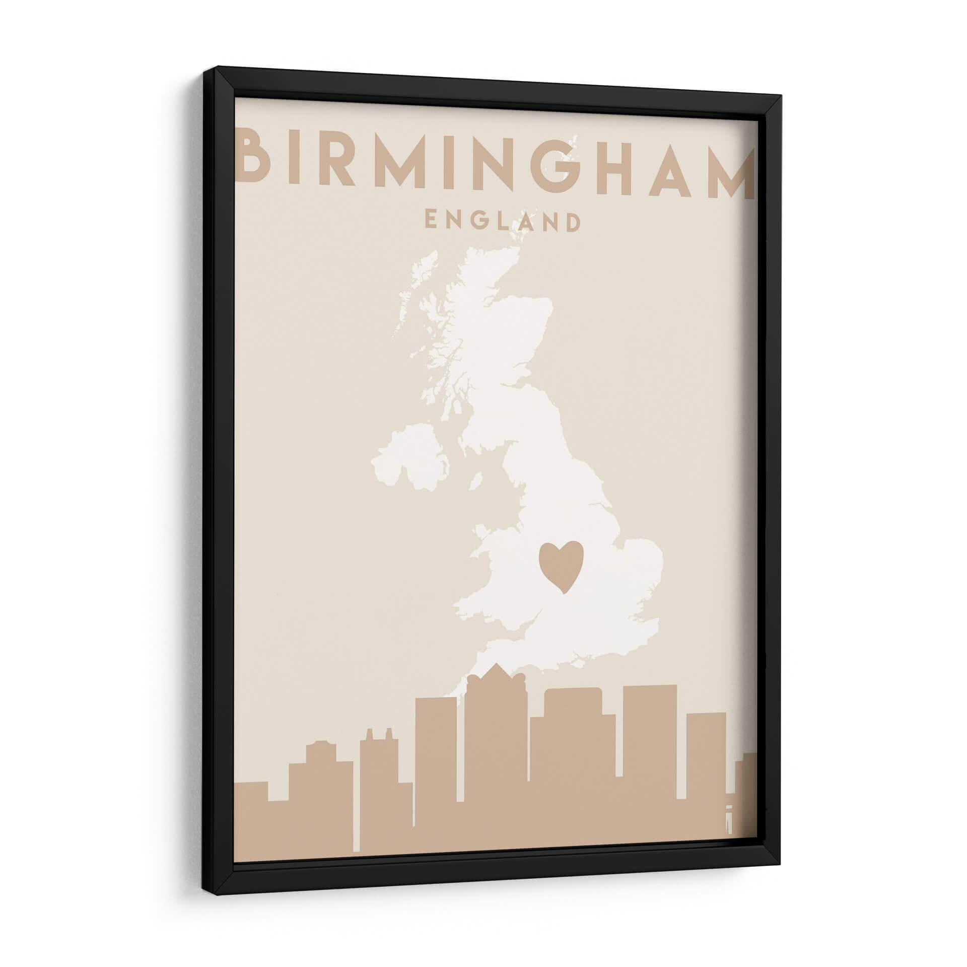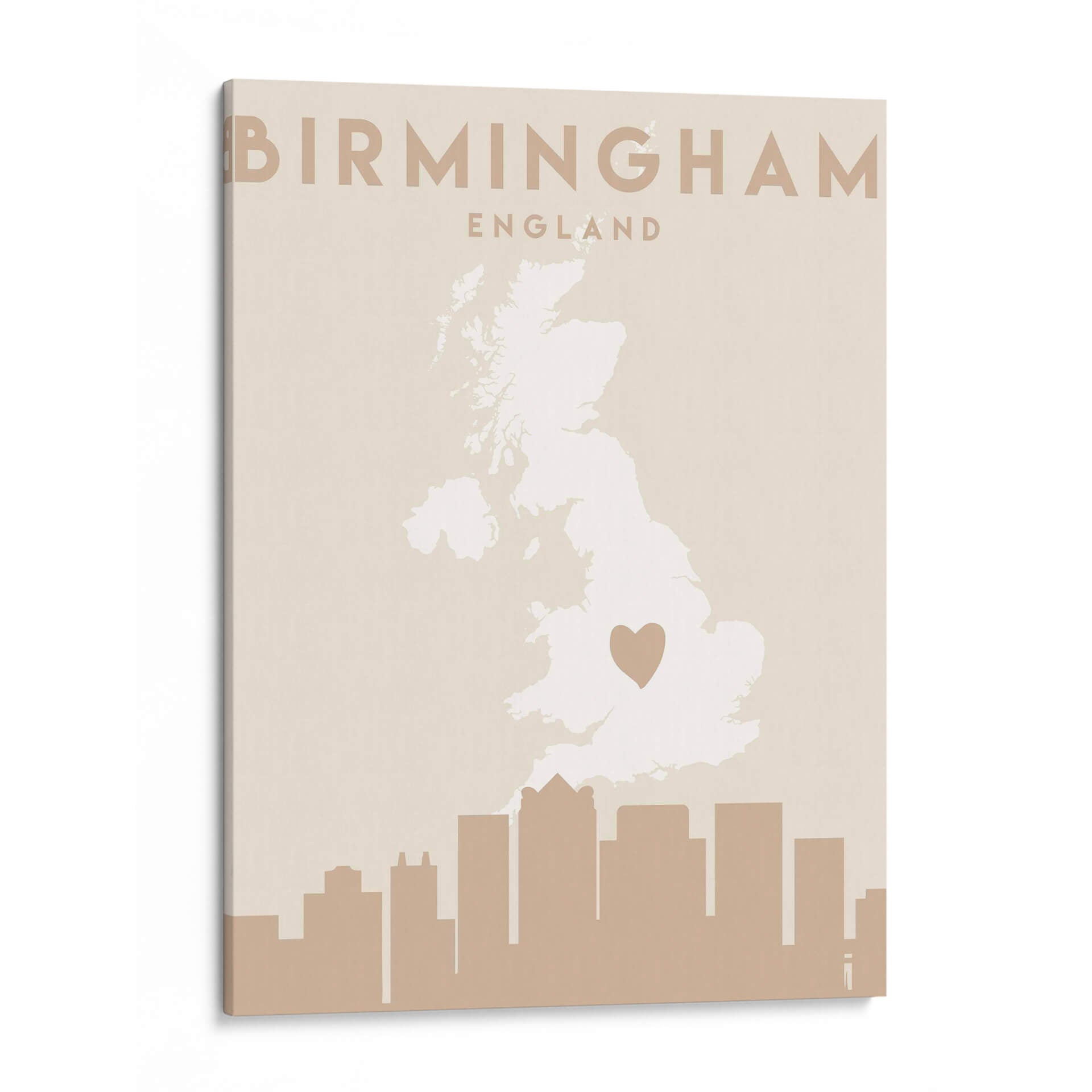 Celebra tu conexión con Birmingham con este cautivador cuadro decorativo, "Mapas del corazón de la ciudad 14" de Emiliano Deificus. Esta obra de arte minimalista presenta un mapa estilizado del Reino Unido, con un destacado corazón que marca la ubicación de Birmingham, rodeado por un perfil de horizonte urbano en tonos tierra. La paleta de colores neutros y terrosos de la pieza, predominantemente beiges y marrones suaves, emana una sensación de calma y sofisticación, lo que la convierte en una adición versátil para cualquier espacio. Su diseño limpio y moderno es ideal para complementar la decoración de salas de estar, oficinas o dormitorios, aportando un toque personal y geográfico. Este cuadro no es solo una pieza decorativa, sino una expresión del amor por un lugar especial, perfecto para quienes buscan arte con significado. Su composición equilibrada y el sutil contraste entre el mapa y el horizonte crean un punto focal atractivo sin abrumar el ambiente. Añade un toque de identidad a tu hogar con este diseño contemporáneo que fusiona el arte cartográfico con la estética urbana.