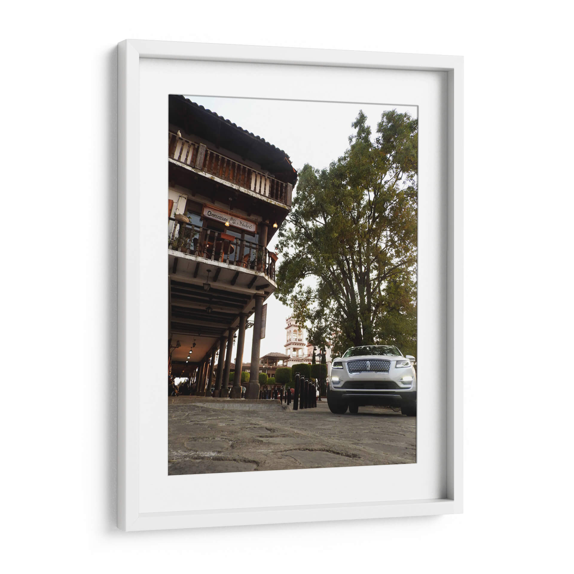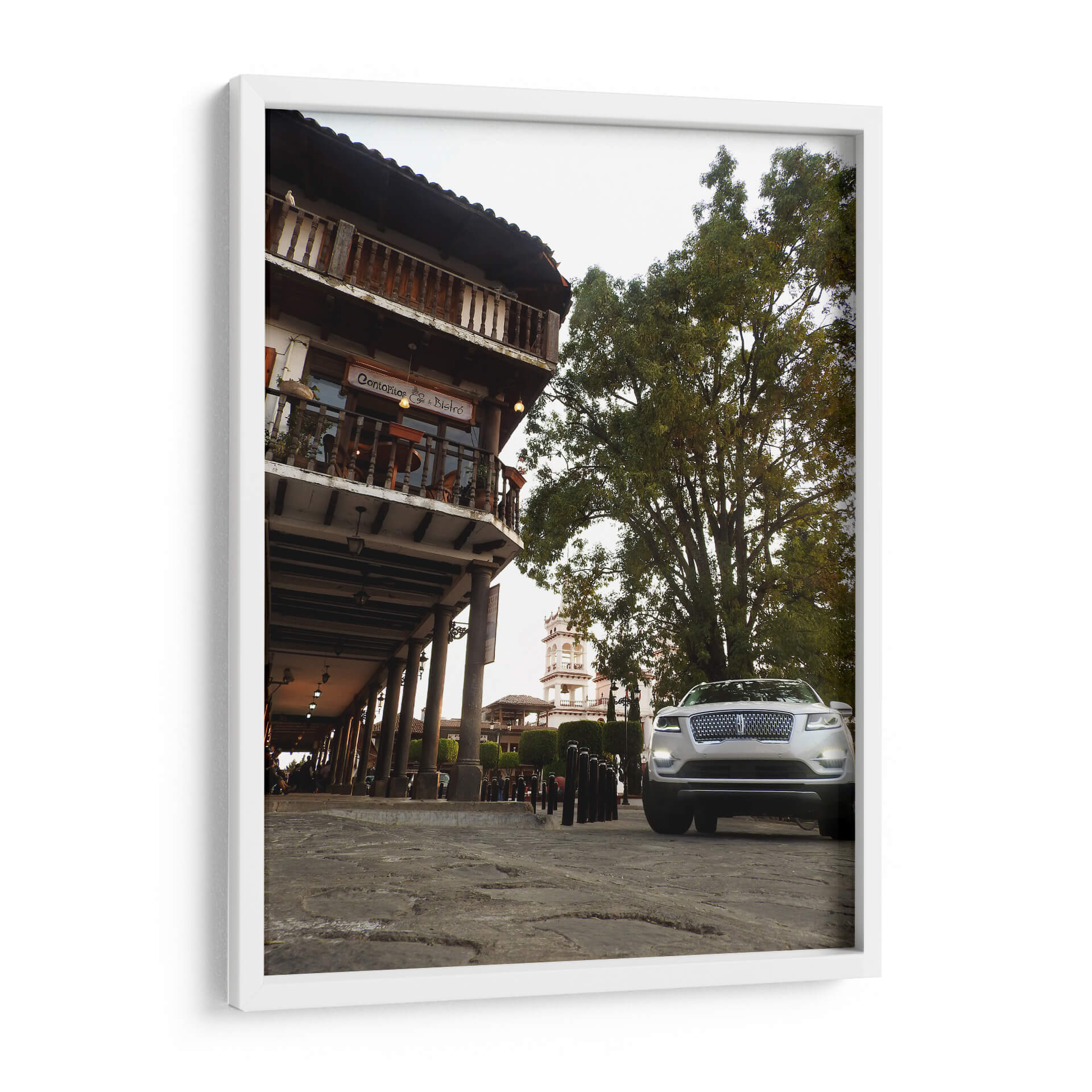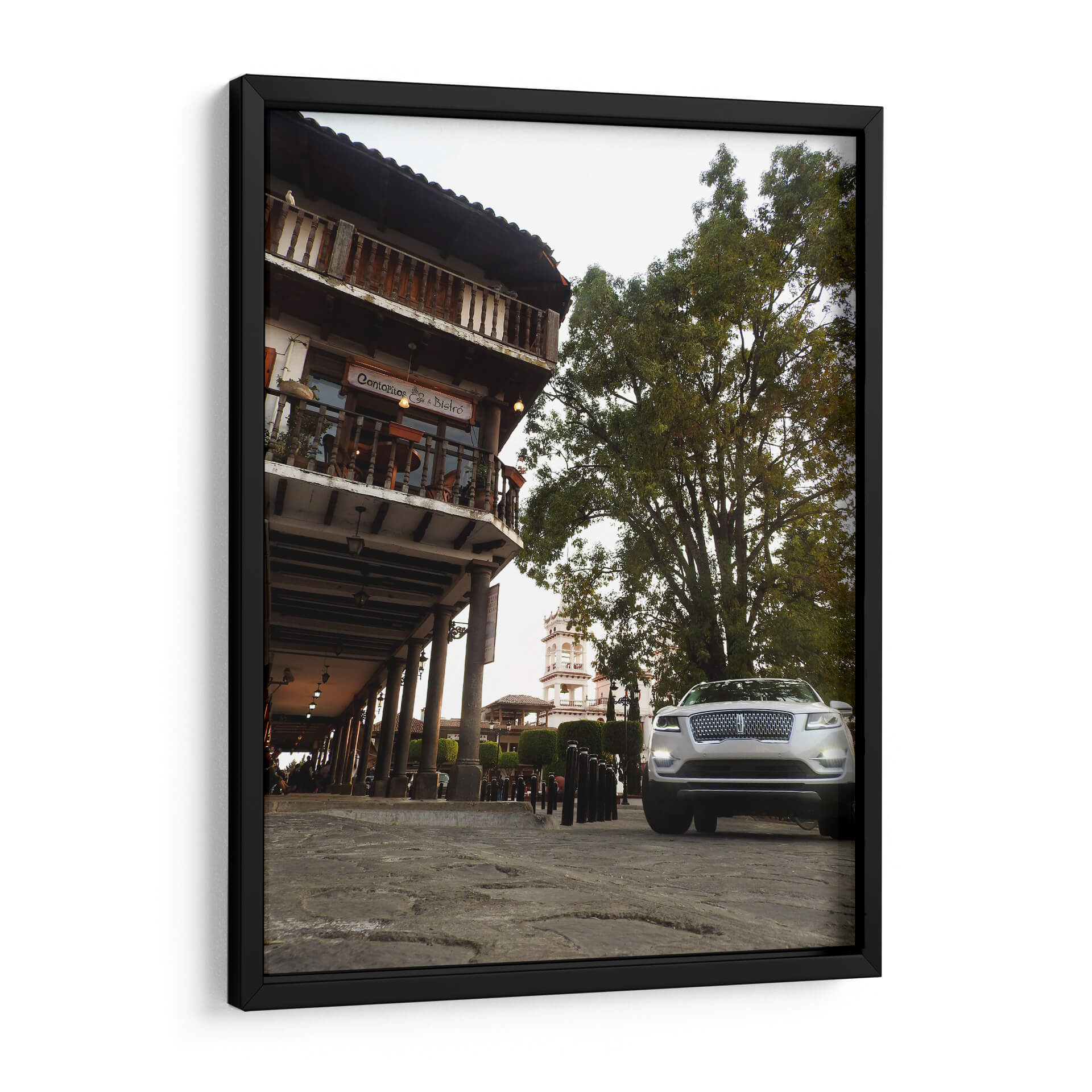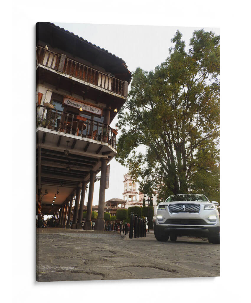 Captura la esencia de un momento cotidiano con 'Café', una obra de Hugo Segura que te transporta a una pintoresca calle adoquinada. La imagen presenta una arquitectura colonial con balcones de madera, un gran árbol frondoso y un moderno vehículo plateado detenido en primer plano. Los colores predominantes son los tonos tierra, verdes naturales y el plateado metálico, creando un contraste interesante entre lo rústico y lo contemporáneo. La iluminación sugiere una tarde apacible, invitando a la contemplación y al disfrute de un instante congelado en el tiempo. Este cuadro decorativo es ideal para añadir un toque de sofisticación y calidez a tu hogar u oficina, evocando una sensación de viaje y descubrimiento. Su composición, que fusiona elementos urbanos y naturales, lo convierte en una pieza versátil que puede integrarse en diversos estilos de decoración, desde lo clásico hasta lo moderno. 'Café' no es solo una imagen, es una invitación a detenerse, observar y apreciar la belleza en los detalles de la vida.