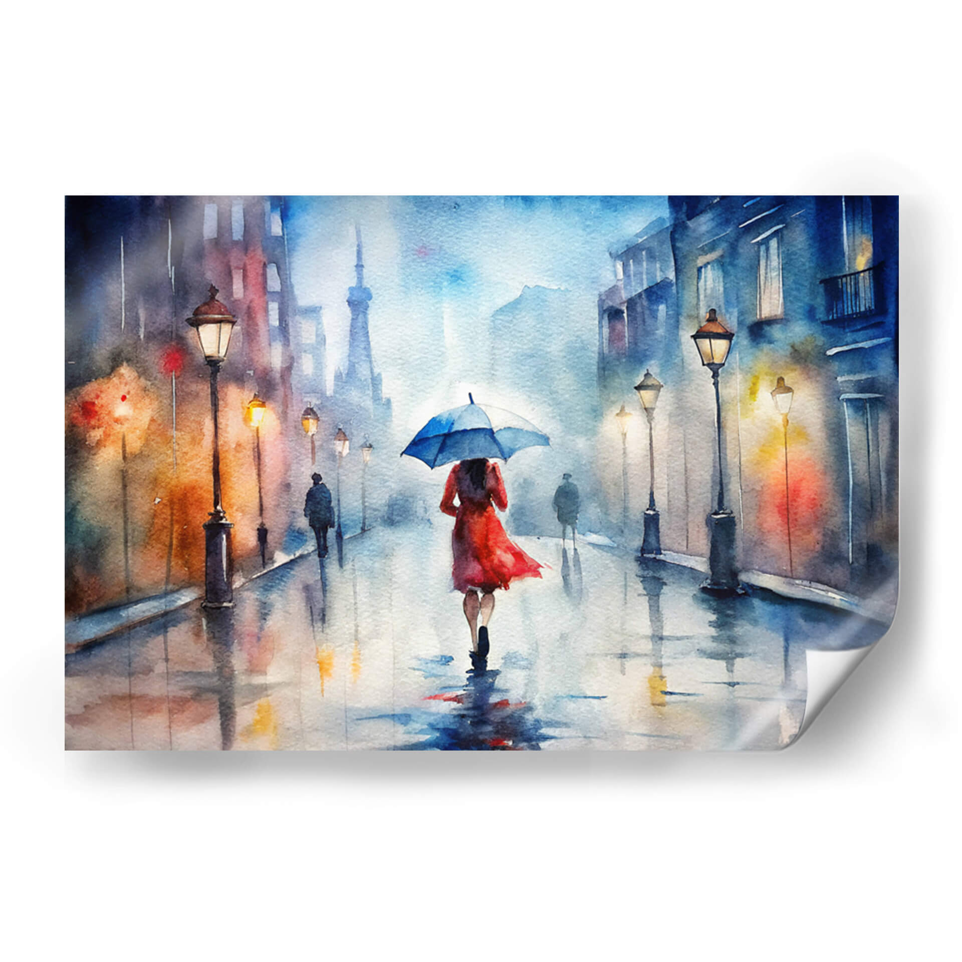 Sumérgete en la melancolía y el encanto de "Caminando bajo la lluvia III", una obra de arte que captura la atmósfera de una calle urbana empapada por la lluvia. La paleta de colores, dominada por profundos azules y grises, se ilumina con los cálidos resplandores de las farolas y el vibrante rojo del abrigo de la figura central, creando un contraste cautivador. Las pinceladas sueltas y evocadoras del estilo acuarela transmiten una sensación de movimiento y atmósfera, invitando al espectador a sentir la humedad del aire y el sonido de las gotas. Esta pieza es ideal para añadir un toque de introspección y elegancia a tu sala de estar, dormitorio o estudio. Su composición, que sugiere un paseo solitario pero lleno de vida a través de la ciudad, evoca sentimientos de contemplación y resiliencia. "Caminando bajo la lluvia III" no es solo un cuadro decorativo, sino una ventana a un momento de belleza efímera y profunda conexión emocional. Añade este cuadro a tu colección y transforma cualquier espacio en un refugio de arte contemporáneo.
