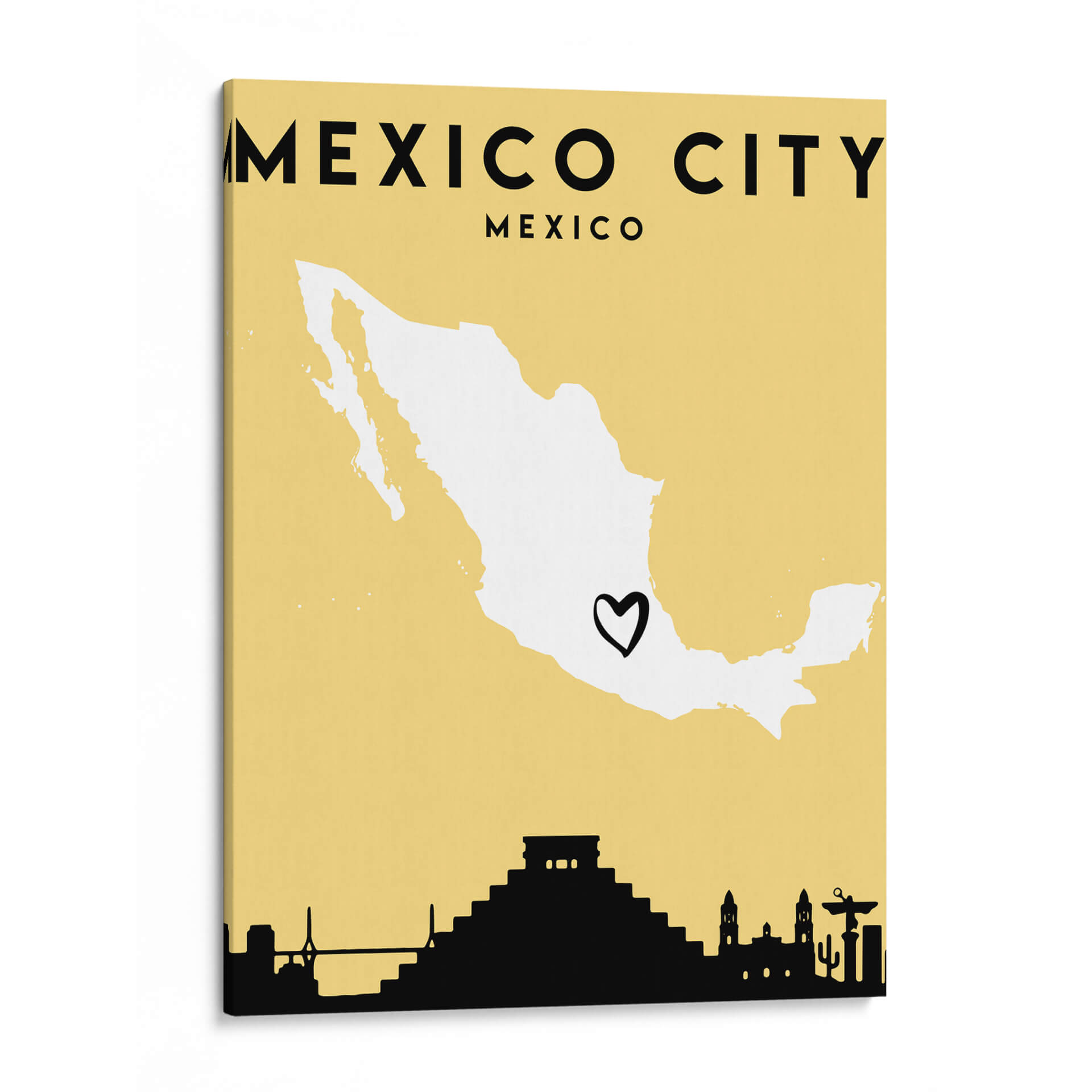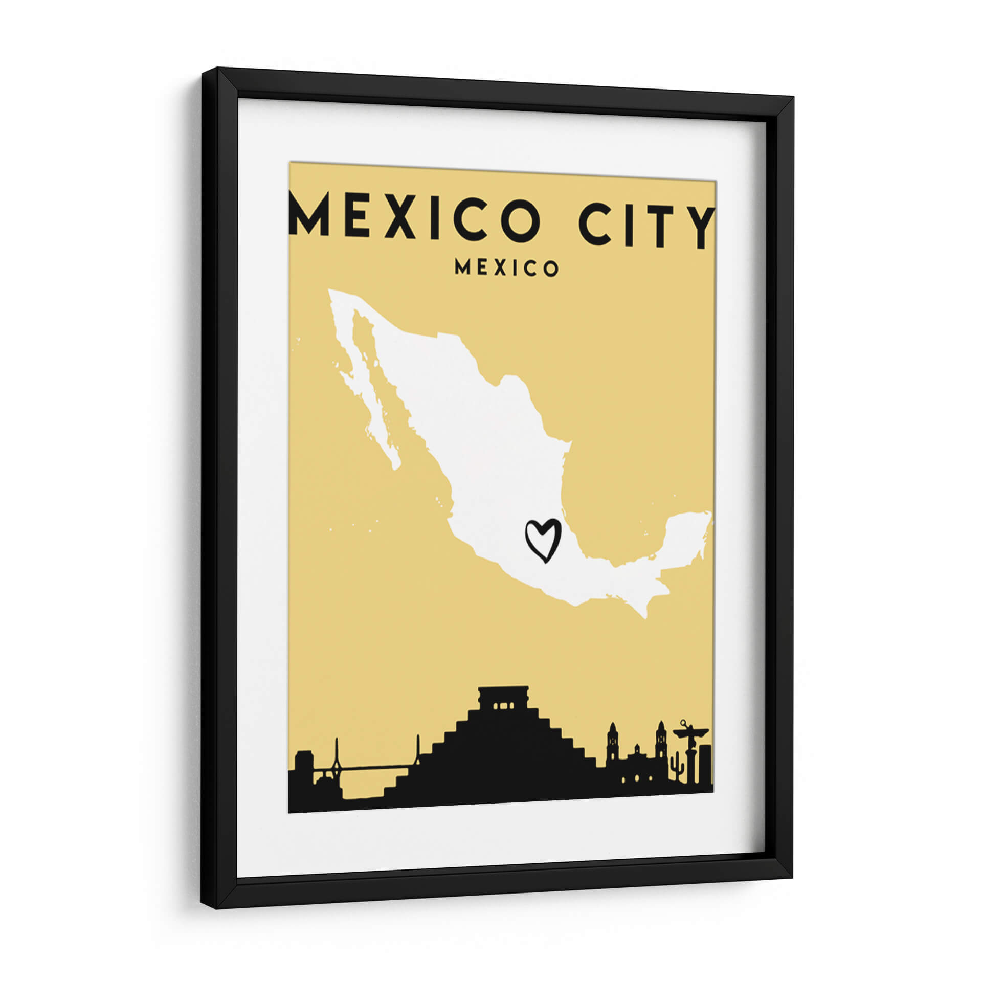 Celebra la vibrante esencia de la Ciudad de México con este cautivador cuadro decorativo, una pieza de arte que rinde homenaje a la capital mexicana a través de un diseño estilizado y moderno. La obra presenta un mapa de México en tono blanco sobre un fondo amarillo cálido y acogedor, destacando la ubicación de la Ciudad de México con un romántico corazón negro. En la parte inferior, una silueta urbana negra captura icónicos monumentos y el bullicio de la metrópoli, incluyendo pirámides ancestrales y elementos arquitectónicos contemporáneos. Esta pieza minimalista pero detallada evoca un sentimiento de pertenencia, nostalgia y orgullo por la riqueza cultural y la historia de México. Su paleta de colores, basada en el contraste entre el amarillo, blanco y negro, la hace versátil para integrarse en diversos estilos de decoración, desde la bohemia hasta la contemporánea. Es el cuadro perfecto para añadir un toque distintivo y personal a tu sala de estar, oficina o cualquier espacio que desees llenar de vida y carácter. Ideal para quienes aman México, los viajeros o aquellos que buscan una conexión emocional con su entorno.