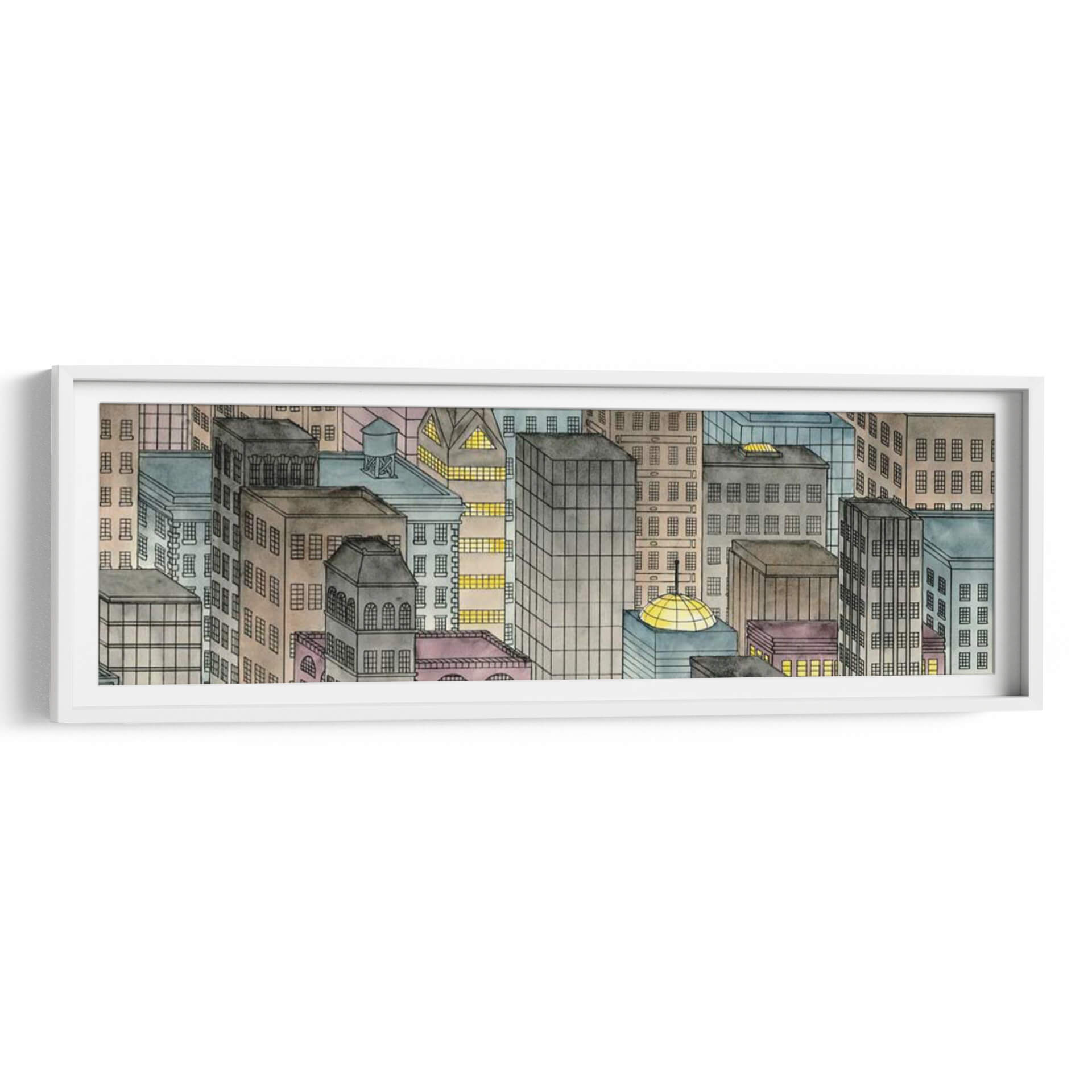 Sumérgete en la atmósfera urbana nocturna con "Ciudad De Noche II", una obra de arte que captura la esencia de la metrópoli iluminada. Este cuadro decorativo presenta una intrincada vista de rascacielos y edificios urbanos, detallados con acuarela y delineados con trazos finos que aportan profundidad y carácter. La paleta de colores, dominada por tonos fríos como azules y grises, se ve enriquecida por cálidos destellos amarillos y anaranjados que emanan de las ventanas iluminadas, evocando la vitalidad y el bullicio de la vida nocturna. La composición panorámica ofrece una perspectiva amplia de la ciudad, invitando al espectador a perderse en sus detalles arquitectónicos y en la sensación de escala. "Ciudad De Noche II" es una pieza versátil, perfecta para añadir un toque de sofisticación moderna a tu sala de estar, un aire de dinamismo a tu oficina o una atmósfera urbana a tu dormitorio. Este cuadro decorativo es ideal para amantes de la arquitectura, la vida urbana o simplemente para aquellos que aprecian el arte contemporáneo con un toque realista y evocador. Su estilo único lo convierte en un punto focal cautivador que estimula la conversación y la contemplación, transformando cualquier espacio en una galería personal.