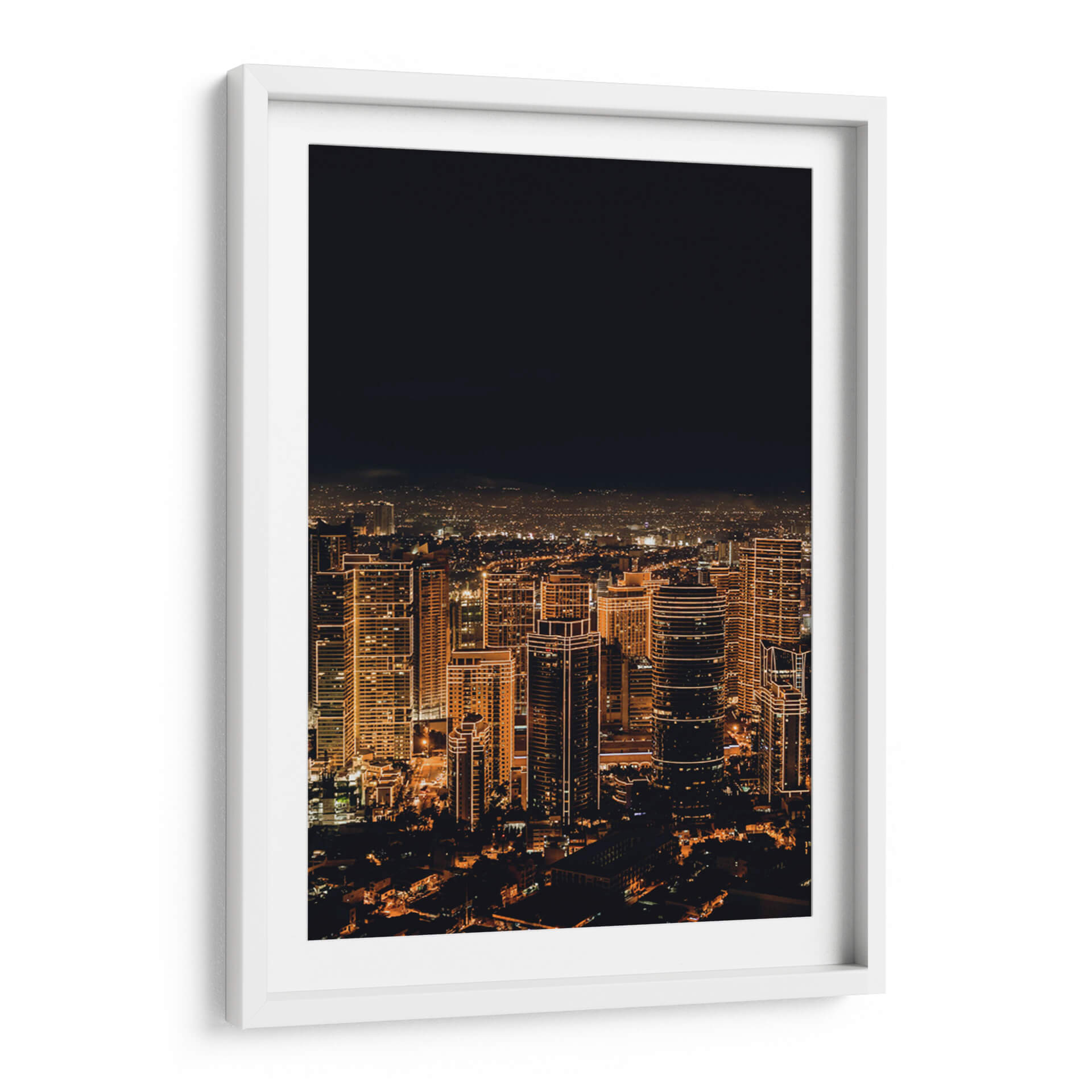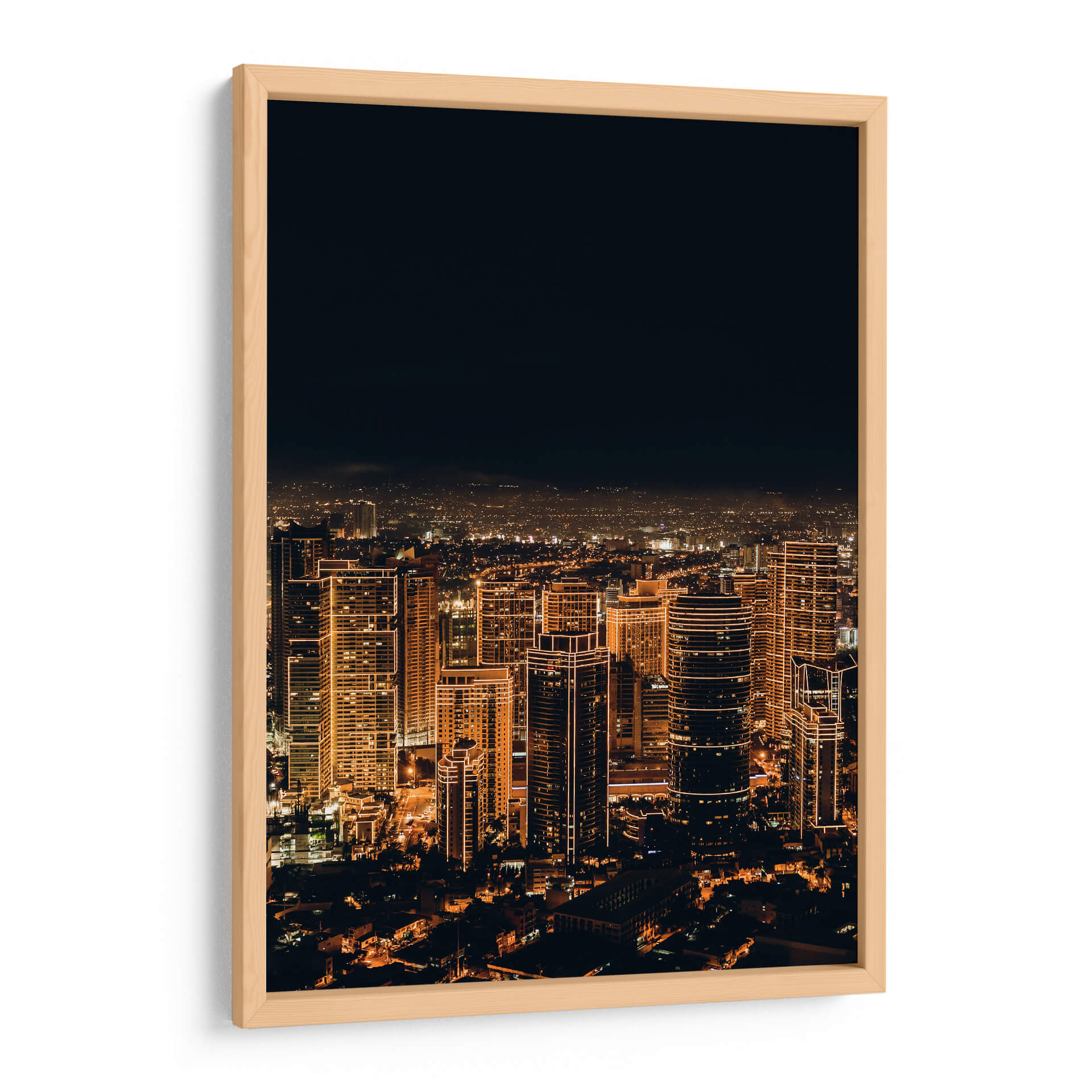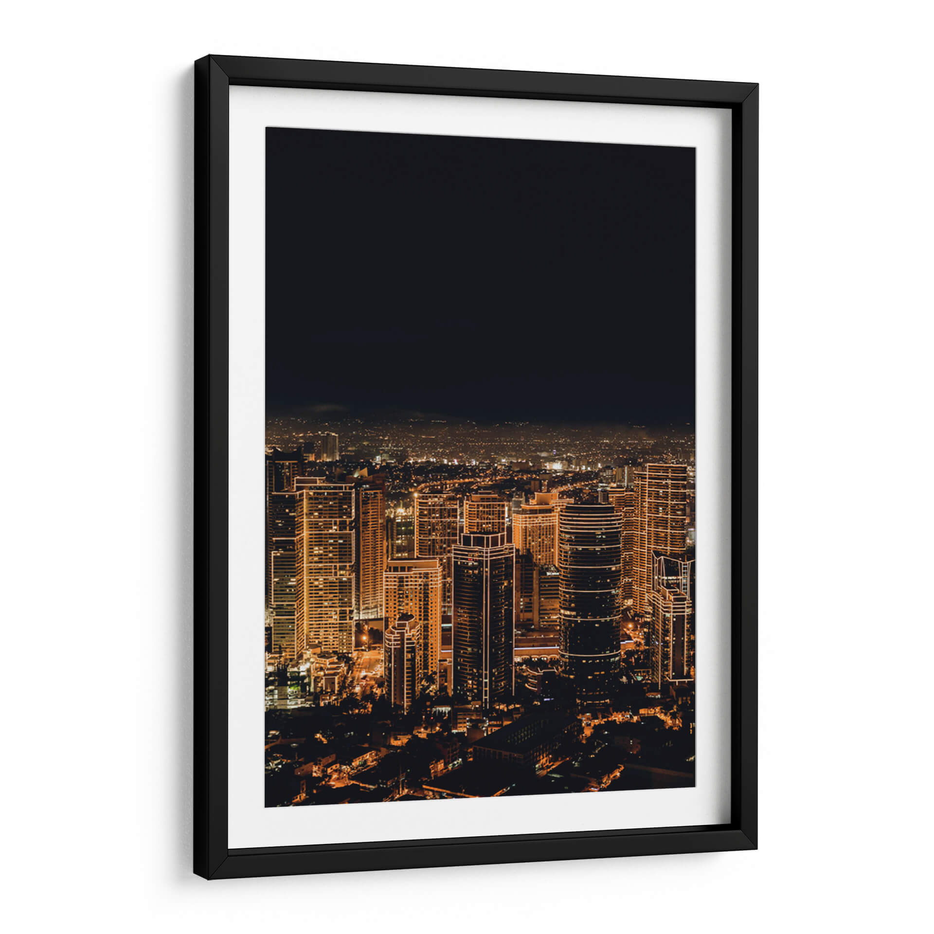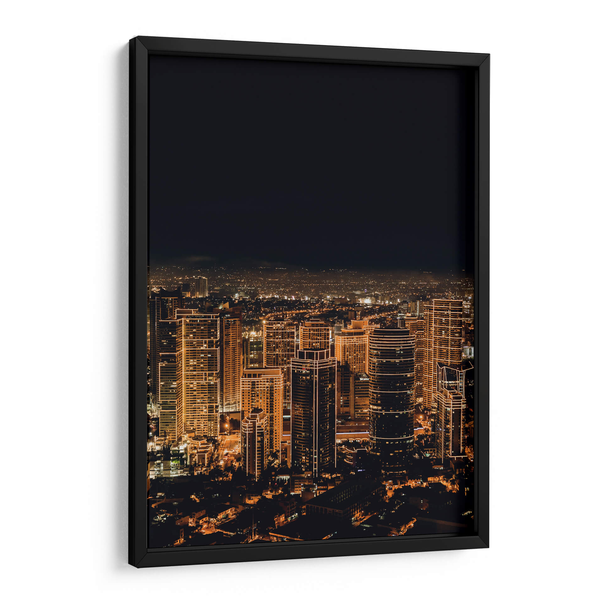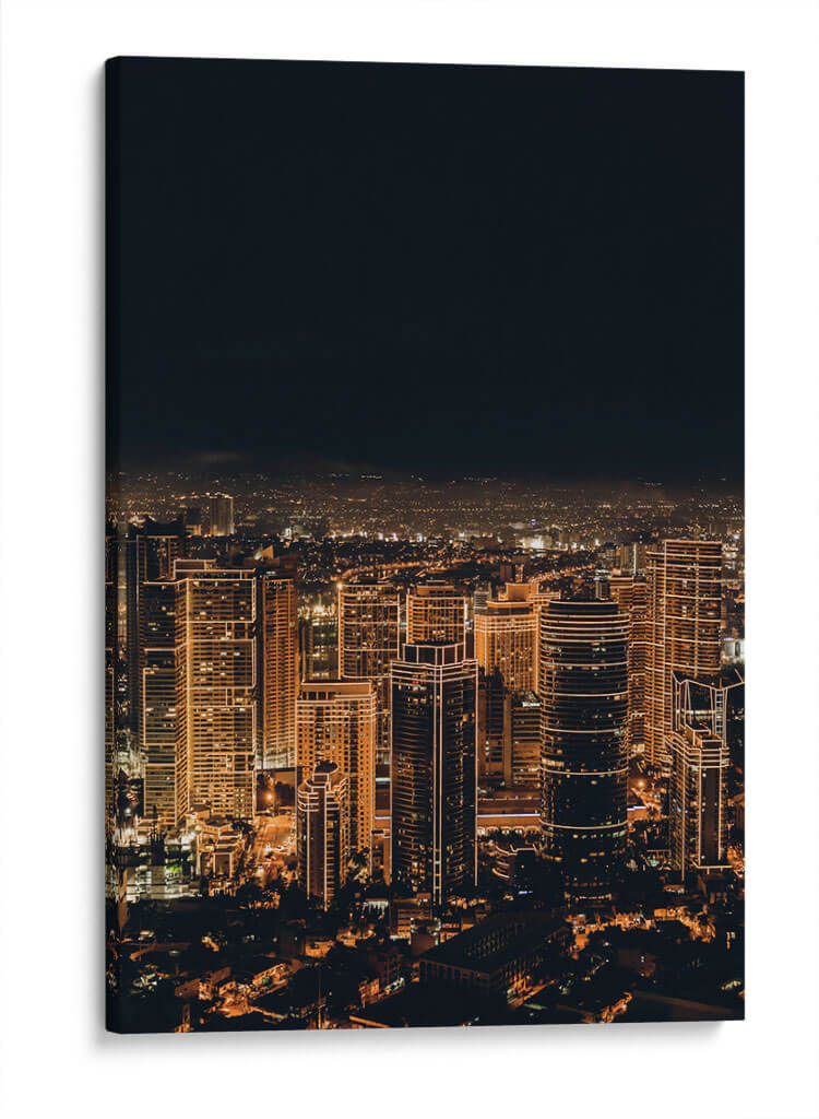 Sumérgete en la vibrante energía de la ciudad que nunca duerme con este cautivador lienzo, "Ciudad Despierta". Captura la esencia de un horizonte urbano nocturno iluminado por miles de luces cálidas que delinean la arquitectura moderna. Los imponentes rascacielos, bañados en tonos dorados y ámbar, se elevan hacia un cielo oscuro y profundo, creando un contraste dramático que evoca una sensación de asombro y dinamismo. La composición aérea ofrece una perspectiva expansiva de la metrópolis, revelando la intrincada red de calles y luces que se extienden hasta el horizonte. Esta obra de arte fotográfica, con su atmósfera envolvente y su paleta de colores cálidos, es perfecta para infundir vida y sofisticación en cualquier espacio. Ideal como punto focal en una sala de estar moderna, un estudio o incluso una oficina, "Ciudad Despierta" es una invitación a soñar con las posibilidades ilimitadas de la vida urbana, aportando un toque de elegancia contemporánea y un recordatorio constante del pulso incesante de la civilización.