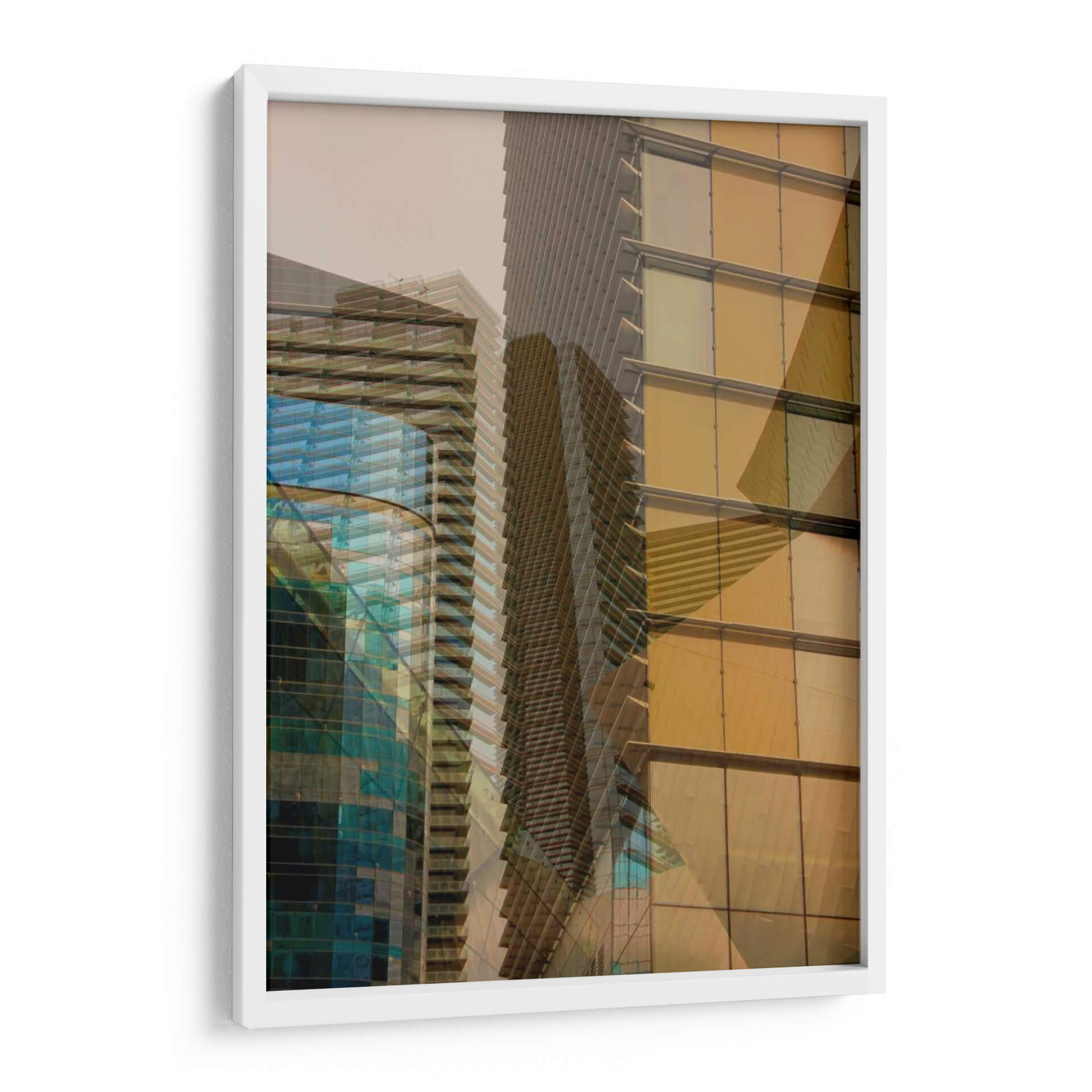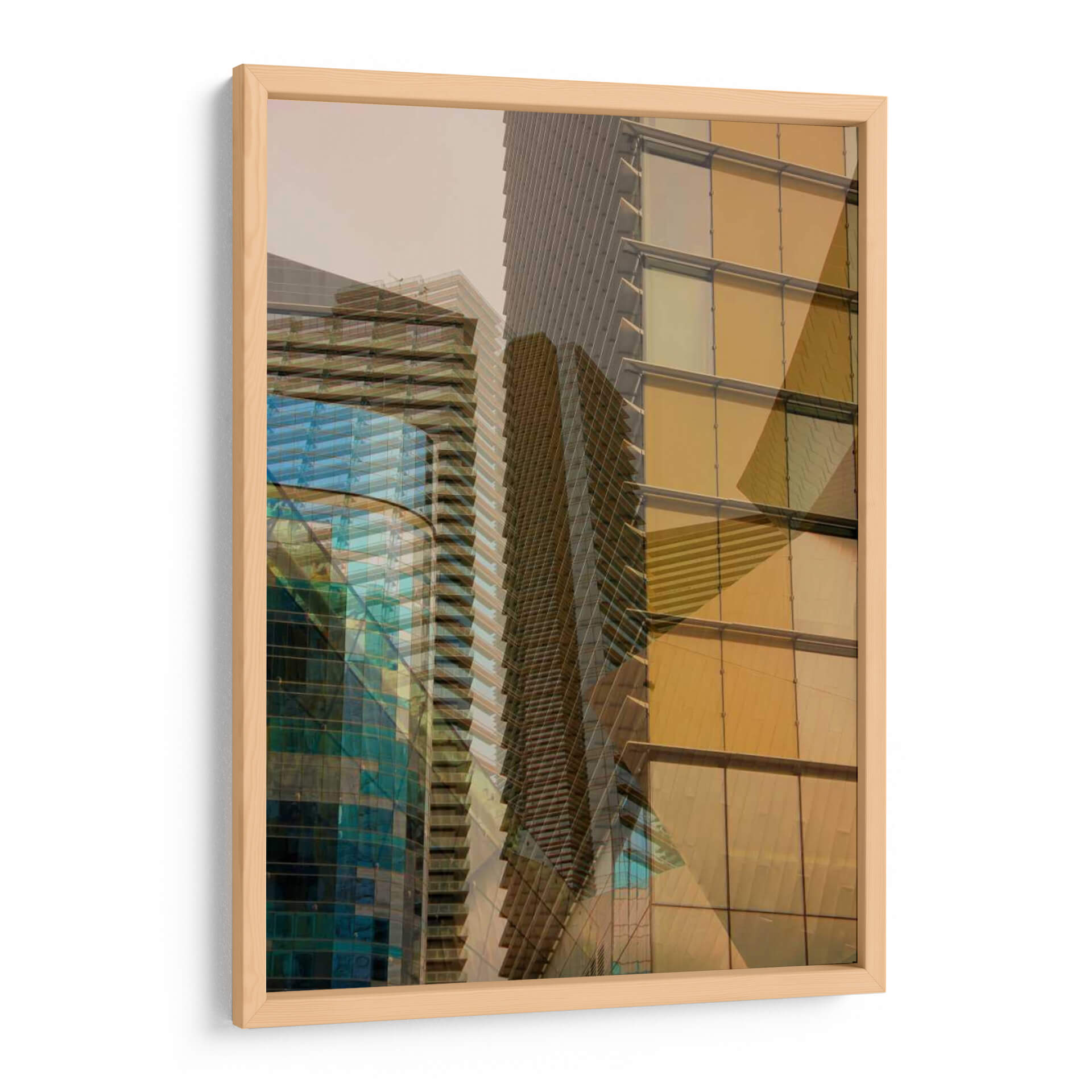 Sumérgete en la arquitectura moderna con "Doble Toma II" de Greg Perkins, una obra de arte visualmente cautivadora que juega con la perspectiva y la luz. Esta pieza se adentra en el mundo de los rascacielos, fusionando múltiples imágenes para crear una sensación de profundidad y dinamismo. Los tonos cálidos del ámbar y el dorado se entrelazan con los fríos azules y verdes de las fachadas de vidrio, generando un contraste intrigante que atrae la mirada. La composición, con sus líneas arquitectónicas repetidas y superpuestas, evoca una sensación de movimiento y complejidad, reflejando la naturaleza multifacética de la vida urbana. Ideal para espacios contemporáneos, este cuadro decorativo inyectará un toque de sofisticación y energía a tu hogar u oficina. Su estilo abstracto-fotográfico lo convierte en un punto focal versátil, capaz de complementar desde una decoración minimalista hasta ambientes más eclécticos. "Doble Toma II" no es solo una imagen, sino una invitación a explorar la belleza oculta en las estructuras que nos rodean, aportando una perspectiva única y moderna a tu pared.