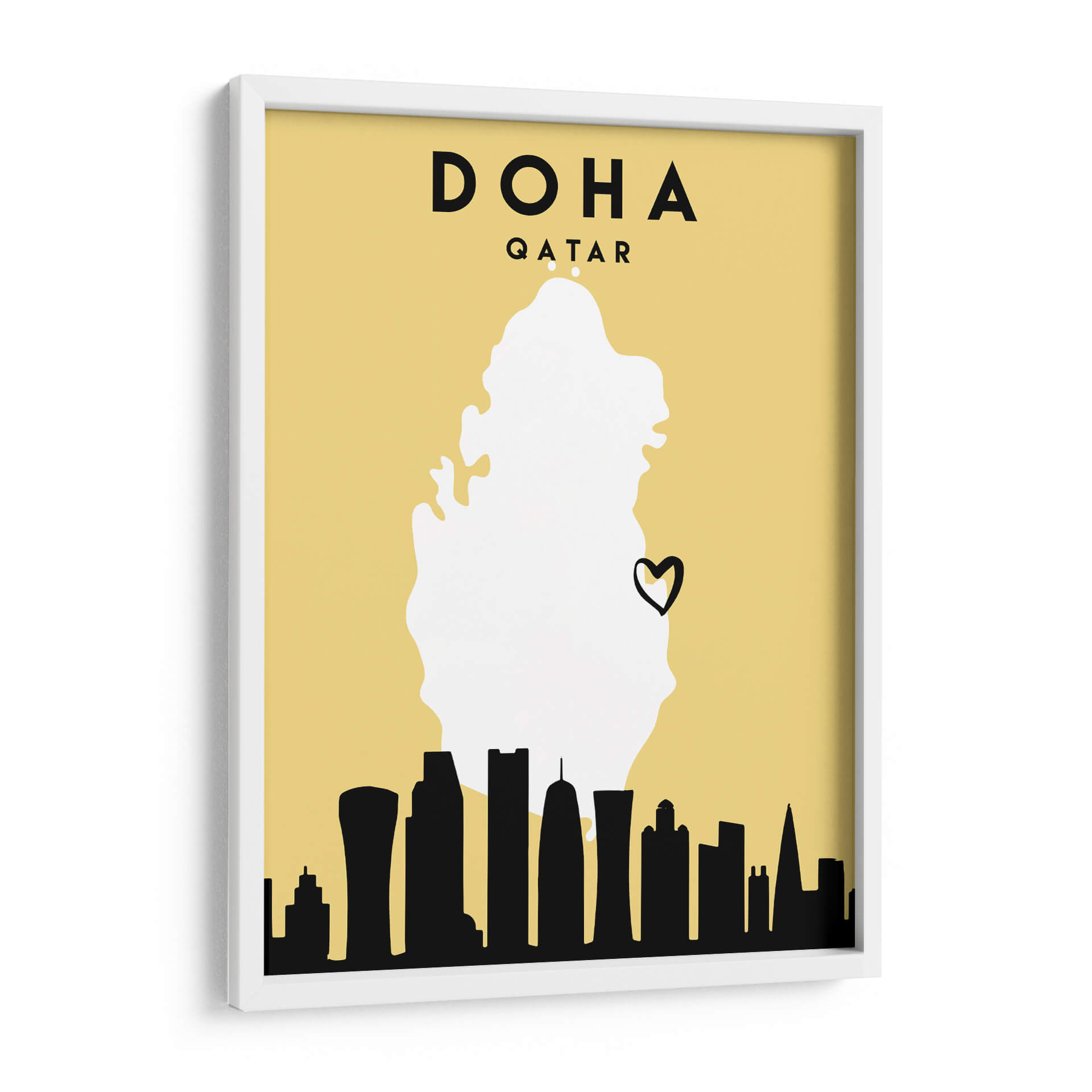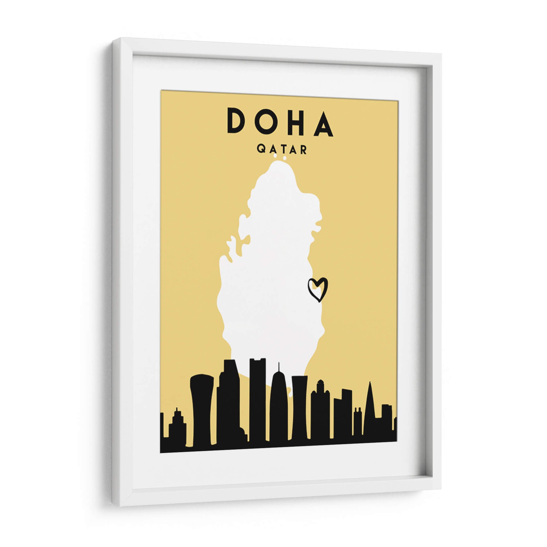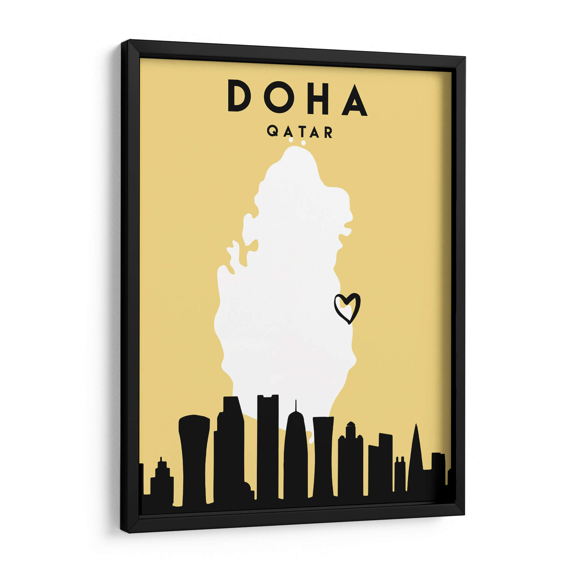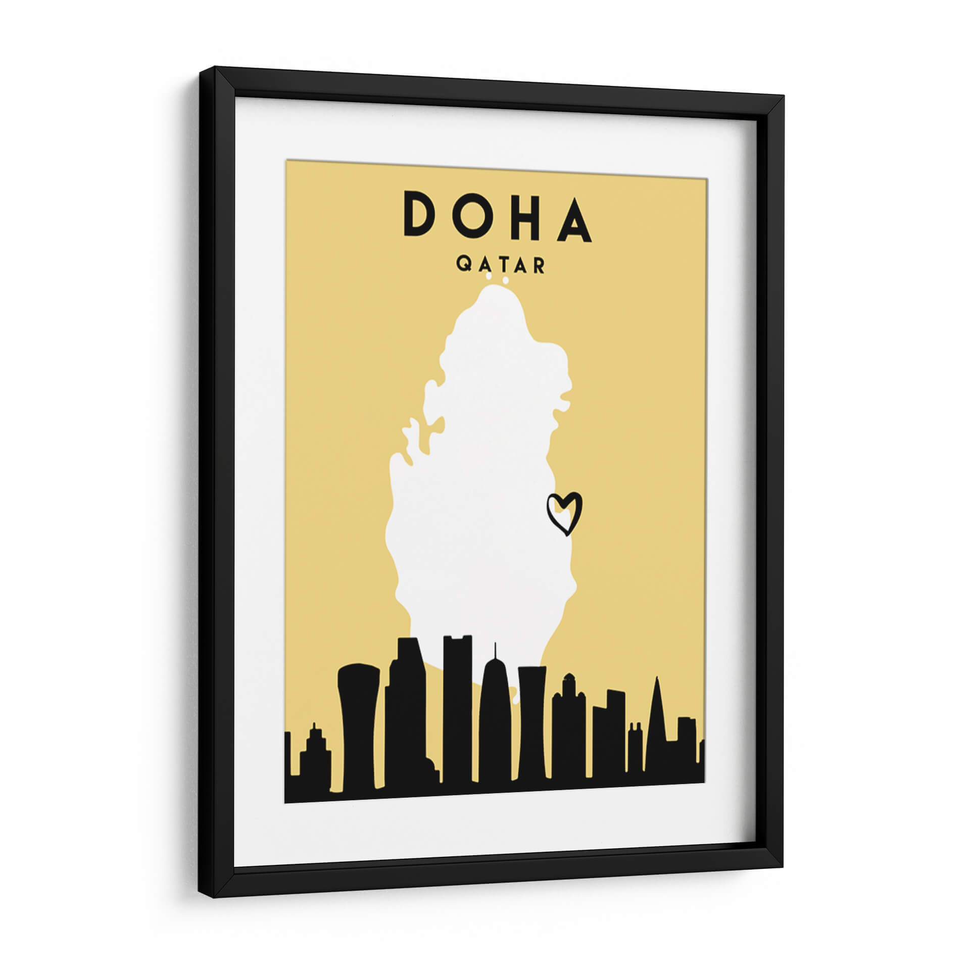 Celebra la esencia de Doha con este cautivador cuadro decorativo, "Doha - Mapas de amor de la ciudad 26", una obra maestra del artista Emiliano Deificus. Esta pieza visualmente impactante presenta un diseño estilizado que combina la silueta distintiva del país de Qatar, con un mapa resaltado en blanco sobre un fondo amarillo ocre cálido. En el corazón de esta representación geográfica, un pequeño y encantador corazón negro marca un punto de afecto, sugiriendo una conexión personal o un lugar especial dentro de la ciudad. La parte inferior de la composición se adorna con una vibrante silueta de rascacielos que evoca el moderno y dinámico horizonte de Doha. La paleta de colores, dominada por el amarillo ocre, el blanco y el negro, crea una atmósfera sofisticada y contemporánea, a la vez que proporciona un toque de calidez. Este cuadro decorativo es ideal para aquellos que buscan infundir a sus espacios un sentido de pertenencia, un recuerdo de viajes o simplemente una apreciación por la arquitectura urbana y la cartografía. Su estilo minimalista y gráfico lo convierte en un complemento versátil para cualquier decoración moderna, ya sea en una sala de estar, una oficina o un dormitorio, añadiendo un toque de elegancia urbana y un guiño a la rica cultura de Qatar.