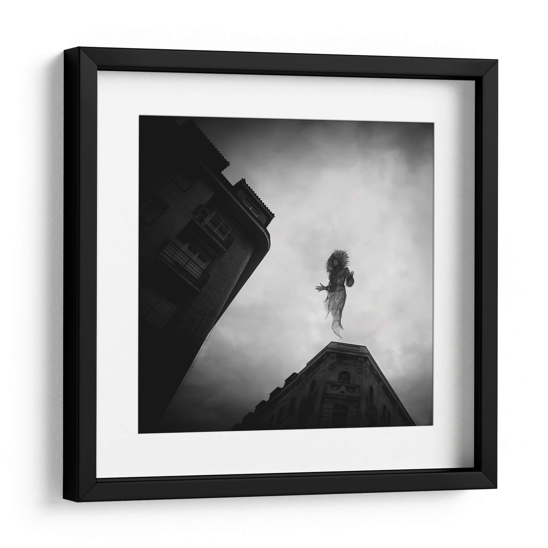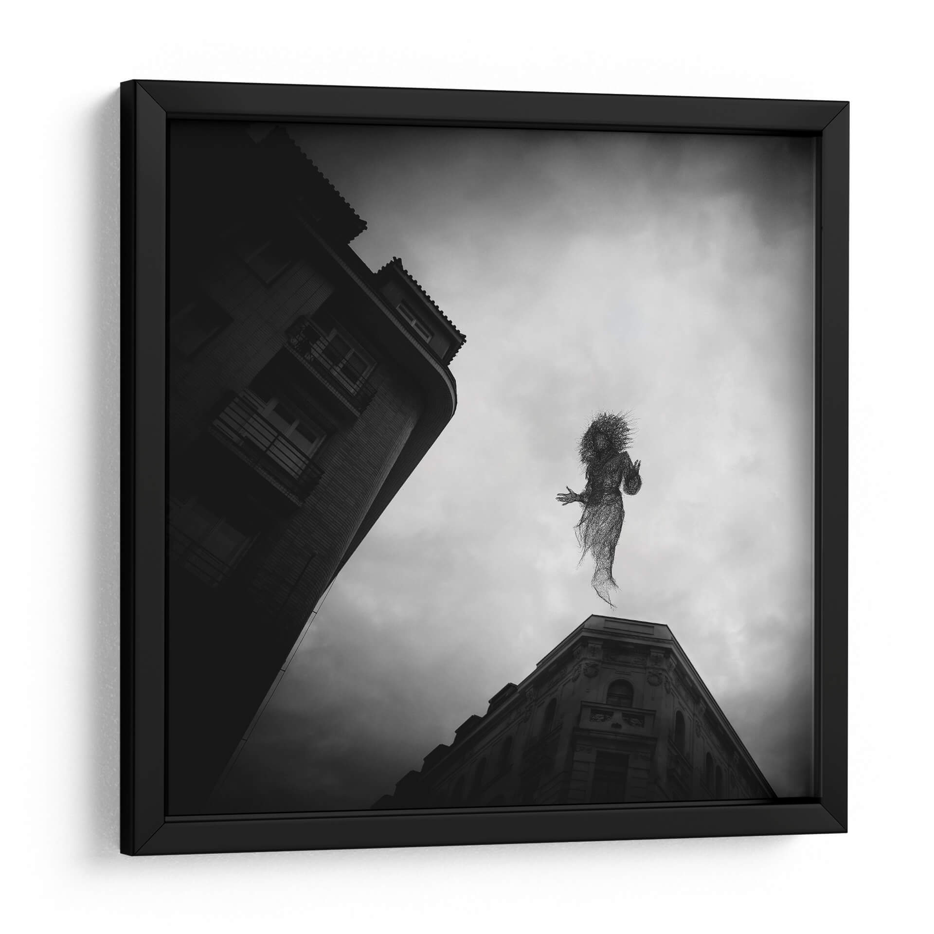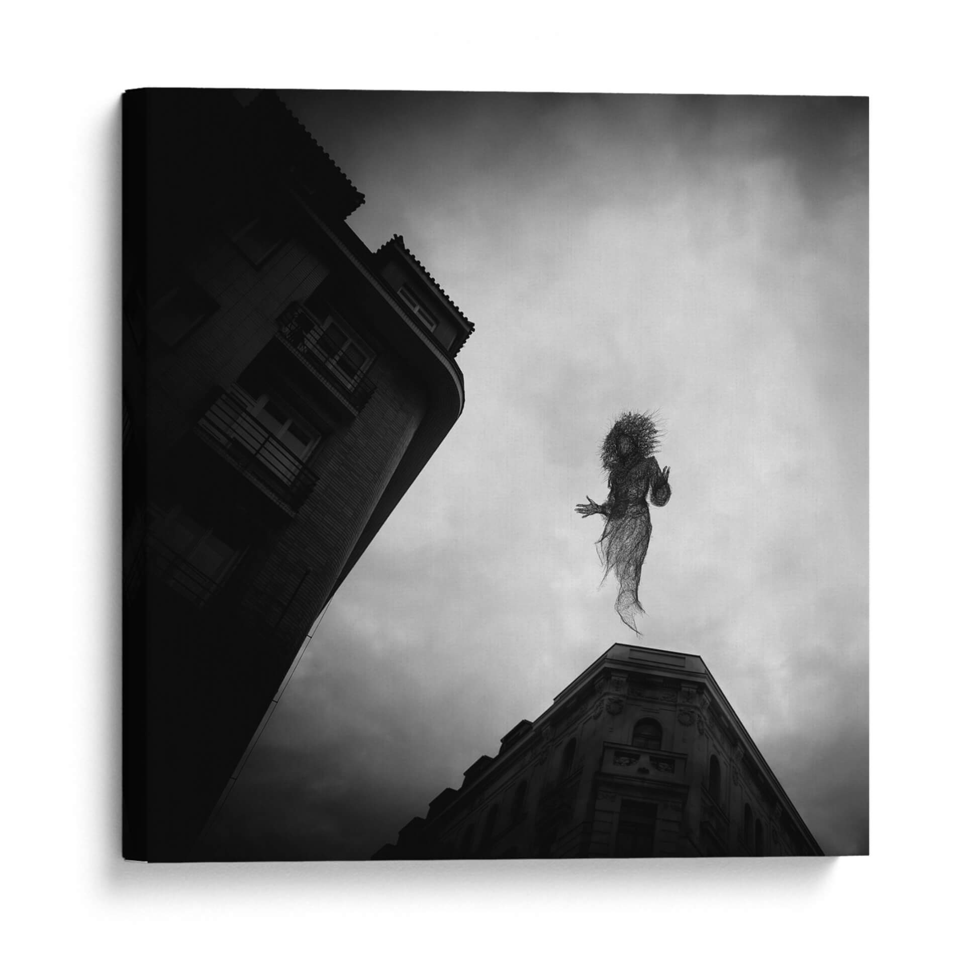 Sumérgete en la enigmática atmósfera de 'El Espíritu de Praga', una obra de arte cautivadora del artista Milan Uhrin. Este cuadro decorativo en blanco y negro presenta una figura etérea, tejida como si fuera de alambre o humo, suspendida entre el cielo nublado y la arquitectura urbana de Praga. La composición, con edificios de líneas marcadas que contrastan con la suavidad de la figura central, crea una sensación de movimiento y misterio. La paleta monocromática acentúa la melancolía y la profundidad de la escena, invitando a la contemplación. Ideal para aquellos que buscan infundir sus espacios con un toque de surrealismo y fantasía, esta pieza se convierte en un punto focal intrigante para salas de estar modernas, estudios creativos u oficinas. 'El Espíritu de Praga' no es solo una decoración, es una ventana a un mundo onírico que estimula la imaginación y añade un carácter único a cualquier ambiente. Descubre la magia de Milan Uhrin y transforma tu hogar en una galería personal con este lienzo evocador.