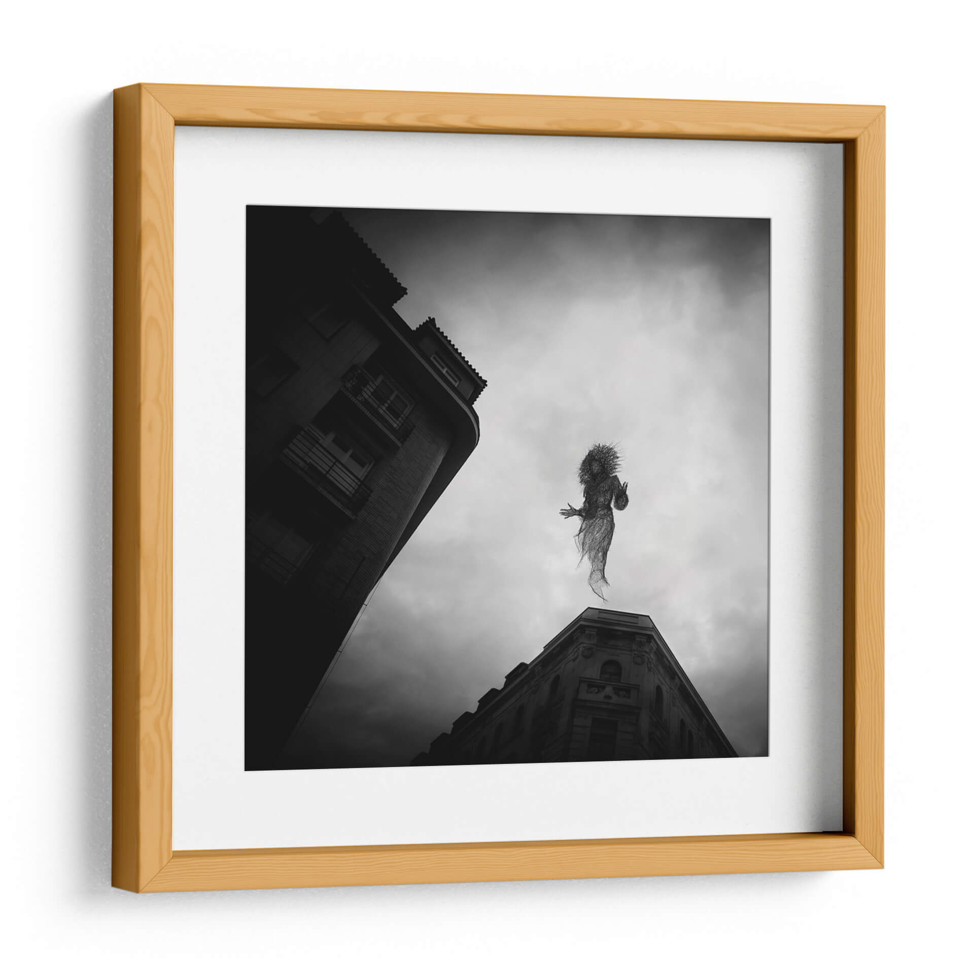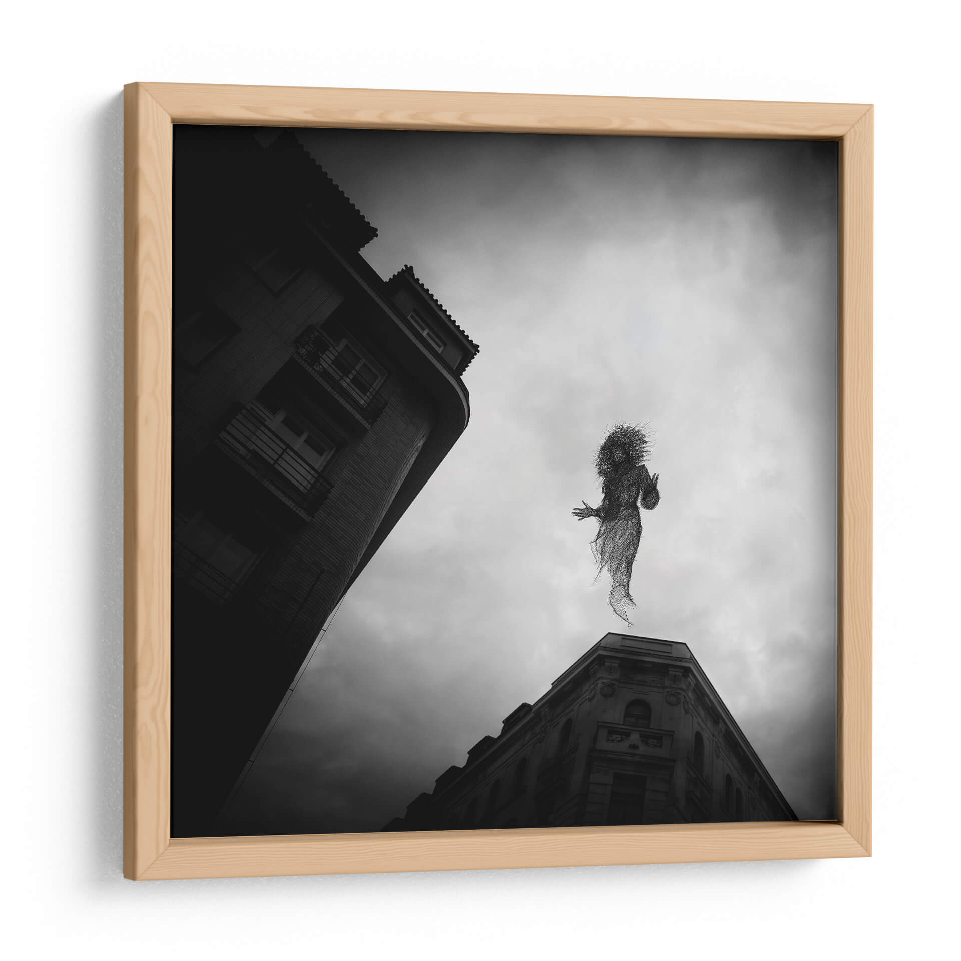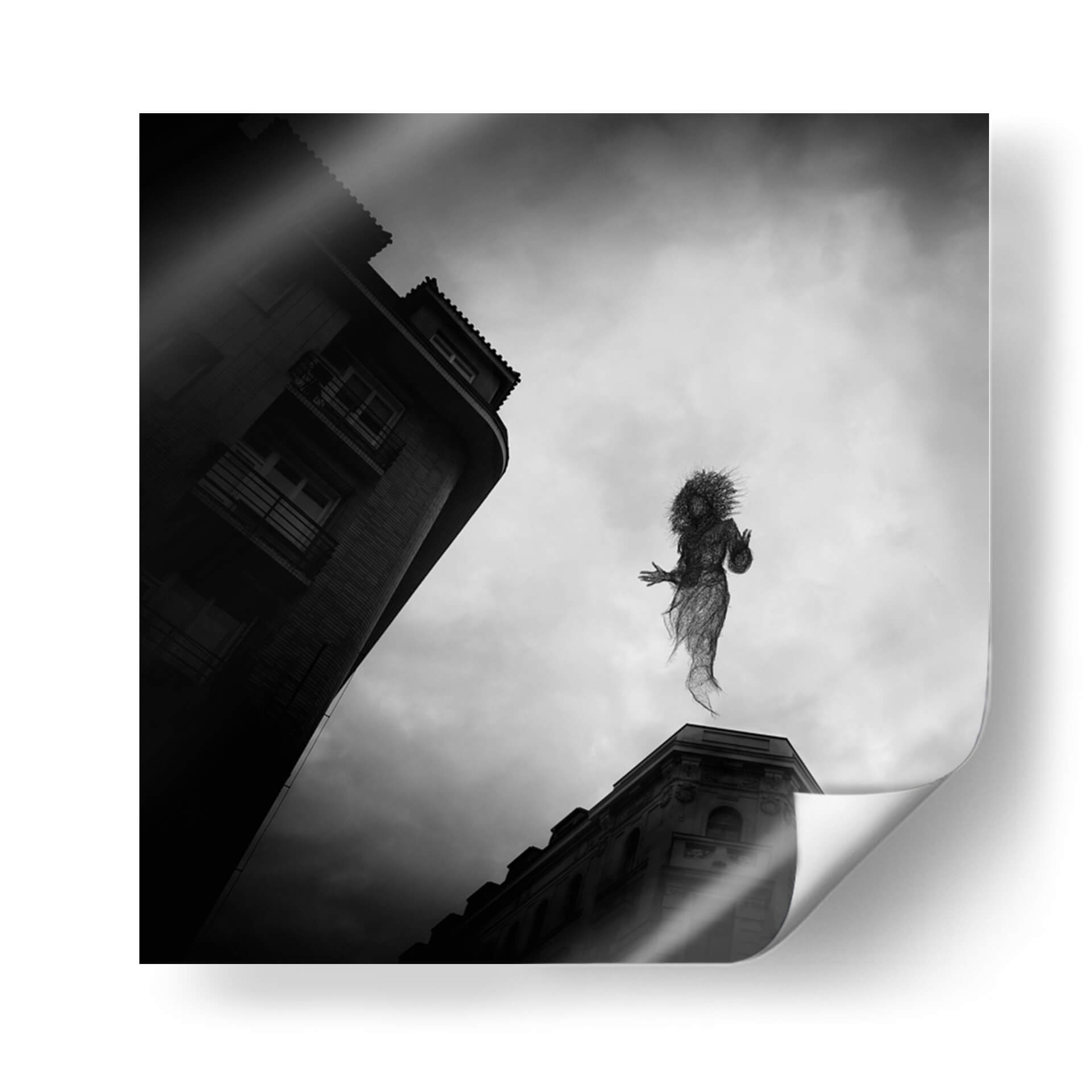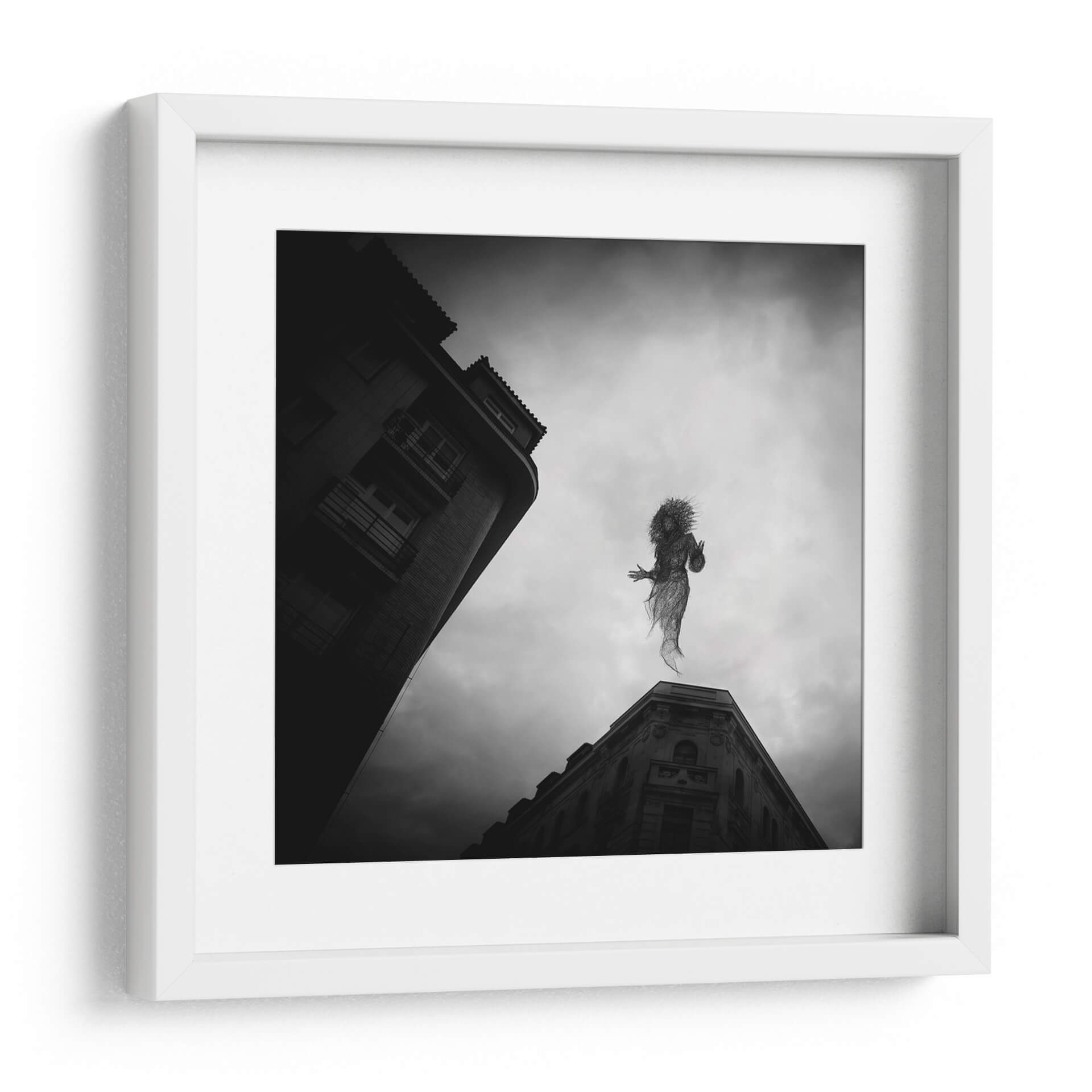 Sumérgete en la enigmática atmósfera de 'El Espíritu de Praga', una obra de arte cautivadora del artista Milan Uhrin. Este cuadro decorativo en blanco y negro presenta una figura etérea, tejida como si fuera de alambre o humo, suspendida entre el cielo nublado y la arquitectura urbana de Praga. La composición, con edificios de líneas marcadas que contrastan con la suavidad de la figura central, crea una sensación de movimiento y misterio. La paleta monocromática acentúa la melancolía y la profundidad de la escena, invitando a la contemplación. Ideal para aquellos que buscan infundir sus espacios con un toque de surrealismo y fantasía, esta pieza se convierte en un punto focal intrigante para salas de estar modernas, estudios creativos u oficinas. 'El Espíritu de Praga' no es solo una decoración, es una ventana a un mundo onírico que estimula la imaginación y añade un carácter único a cualquier ambiente. Descubre la magia de Milan Uhrin y transforma tu hogar en una galería personal con este lienzo evocador.