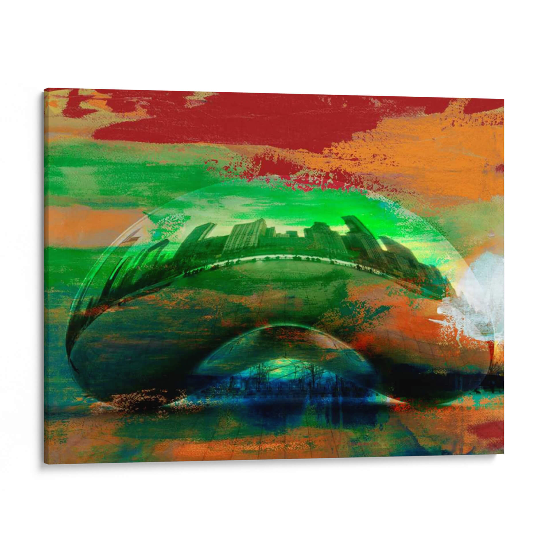 Sumérgete en la vibrante energía urbana de "El Frijol, Chicago", una obra de arte contemporáneo que captura la icónica escultura de Cloud Gate de una manera audaz y abstracta. Los trazos audaces y la paleta de colores vibrantes, dominada por rojos intensos, verdes eléctricos y toques de naranja y azul, crean una composición dinámica que evoca el espíritu bullicioso de la ciudad. La imagen se centra en la forma reflectante y distorsionada de "The Bean", transformándola en un elemento abstracto que se fusiona con un fondo texturizado y expresionista. La obra no solo representa un hito arquitectónico, sino que también explora la percepción, el reflejo y la esencia de la vida urbana moderna. Es una pieza perfecta para añadir un toque de color y carácter a cualquier espacio, desde una sala de estar contemporánea hasta una oficina moderna o un vestíbulo. Su estilo artístico, una mezcla de abstracción expresionista y surrealismo urbano, la convierte en un punto focal cautivador que invita a la contemplación y la conversación. Ideal para amantes del arte abstracto, la fotografía urbana y las decoraciones audaces.