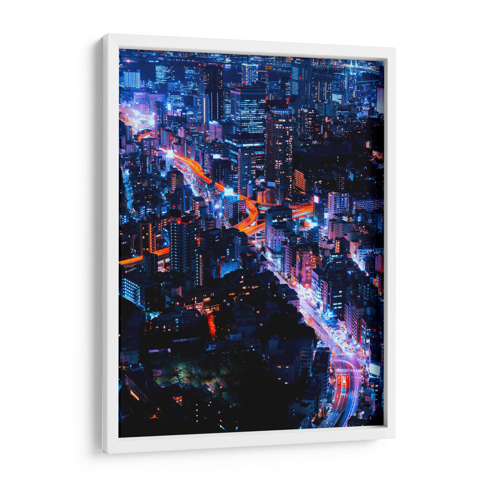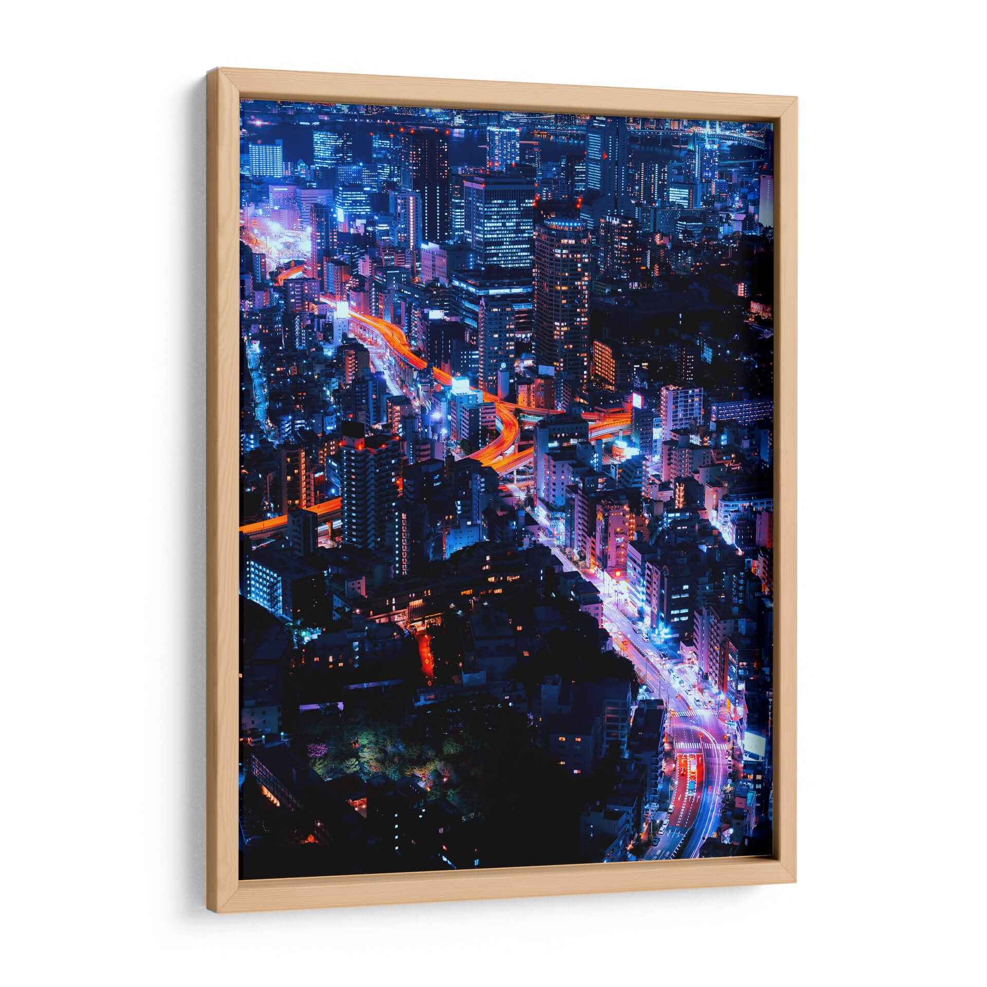 Captura la vibrante energía de la metrópoli con este impresionante cuadro decorativo de "Electricidad en Tokio". Esta obra evoca la majestuosidad de una ciudad que nunca duerme, con sus rascacielos iluminados que perforan el cielo nocturno y las arterias de tráfico que brillan con luces anaranjadas y azules. La paleta de colores, dominada por intensos azules eléctricos, vibrantes tonos naranjas y sutiles toques púrpuras, crea una atmósfera dinámica y futurista, perfecta para infundir vida y modernidad en cualquier espacio. La composición, una vista aérea que se sumerge en la complejidad urbana, ofrece una perspectiva fascinante de la interconexión y el movimiento constante de la vida urbana. Ideal para salones modernos, oficinas o cualquier ambiente que busque un toque de sofisticación cosmopolita y un recordatorio visual del poder y la belleza de la civilización moderna. Este cuadro decorativo es una ventana a la intensidad y el brillo de una de las ciudades más emblemáticas del mundo, transformando tu pared en una declaración de estilo contemporáneo y audaz.
