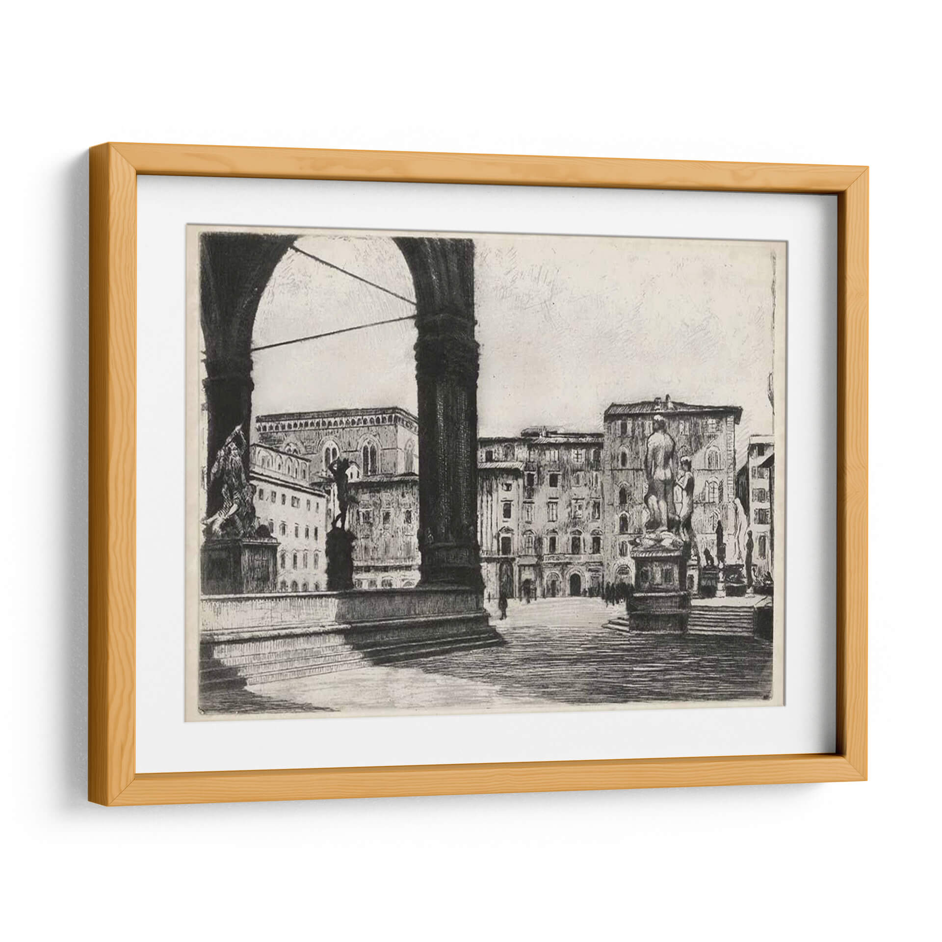Sumérgete en la atmósfera atemporal de "Escenas En Firenze I", una obra de arte que captura la majestuosidad de la arquitectura italiana con un detalle exquisito. Este cuadro decorativo, ejecutado en un estilo que evoca grabados clásicos o bocetos arquitectónicos, transporta al espectador a una plaza histórica, bañada por la luz del día. La composición se centra en elementos arquitectónicos imponentes, como arcos y columnas monumentales, que enmarcan una vista de edificios detallados y estatuas clásicas. La paleta de colores monocromática, en tonos de sepia y gris, otorga una sensación de profundidad y realismo, realzando la textura y la forma de cada elemento. La obra transmite una sensación de calma y contemplación, invitando a la reflexión sobre la historia y la belleza del arte renacentista. "Escenas En Firenze I" es una elección perfecta para aquellos que buscan añadir un toque de elegancia clásica y sofisticación a su hogar u oficina, funcionando como un punto focal que inspira y evoca el encanto de los viajes y la cultura. Ideal para salones, estudios o cualquier espacio que desee un aire de refinamiento histórico y artístico. Este cuadro decorativo de arquitectura es una ventana a la belleza perdurable de Italia.