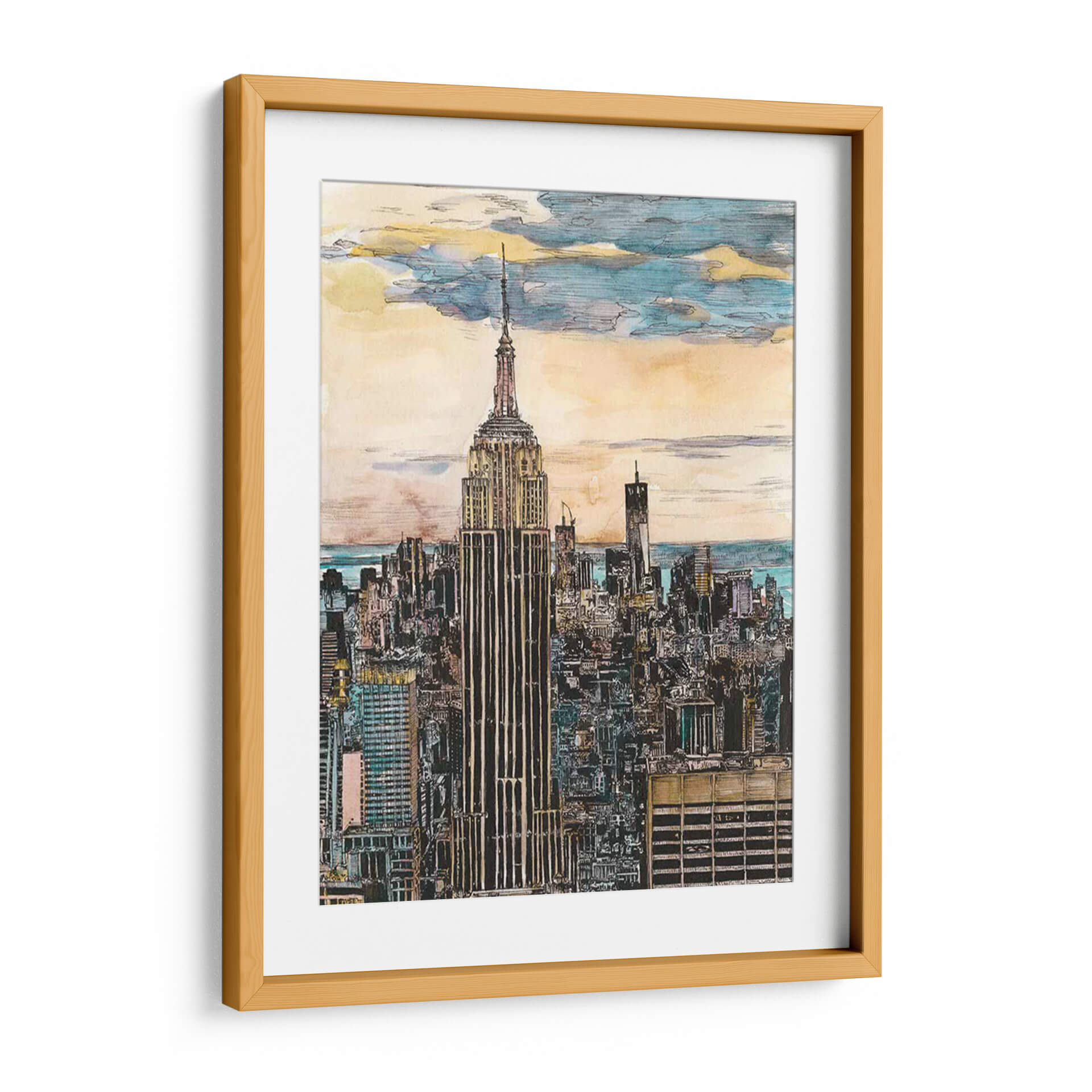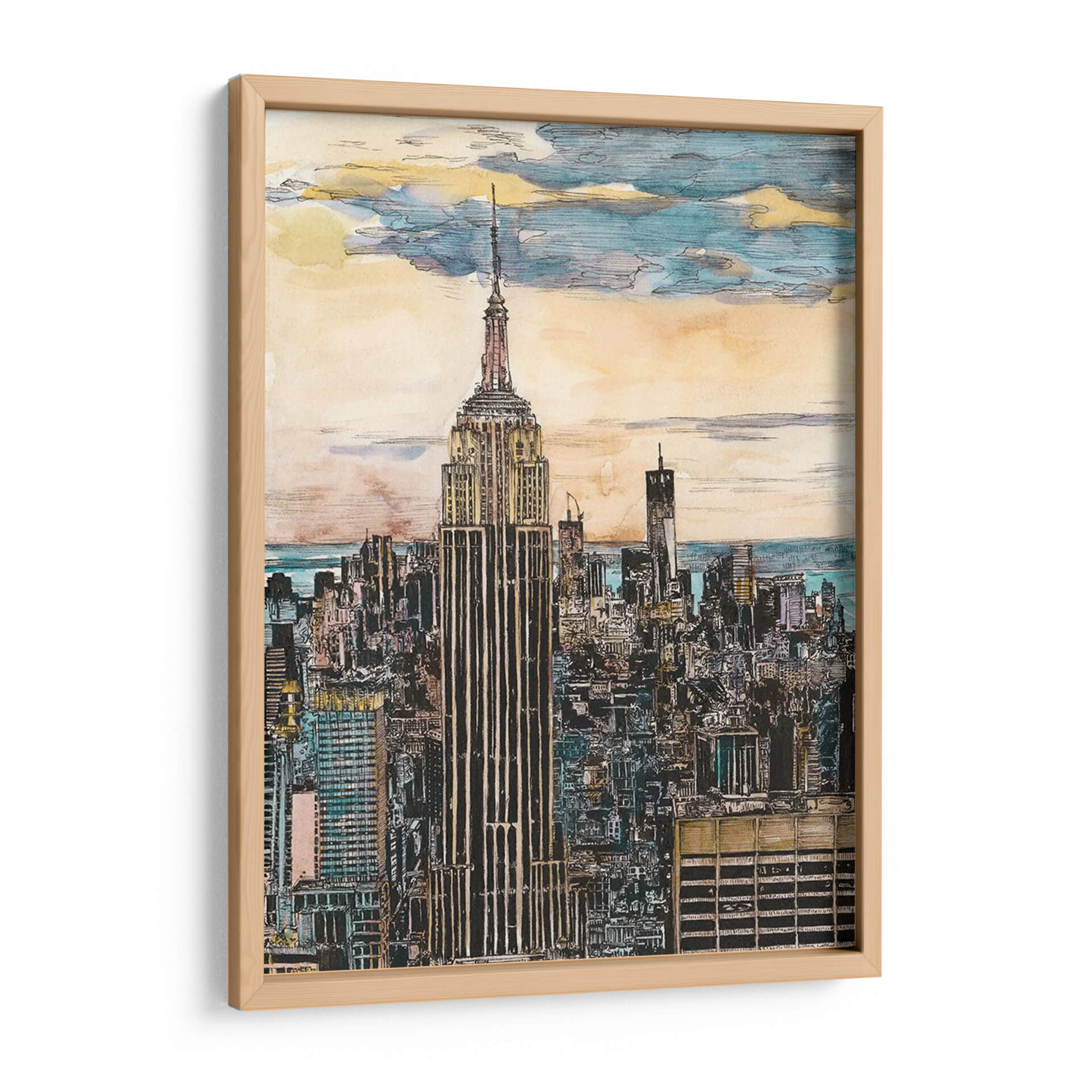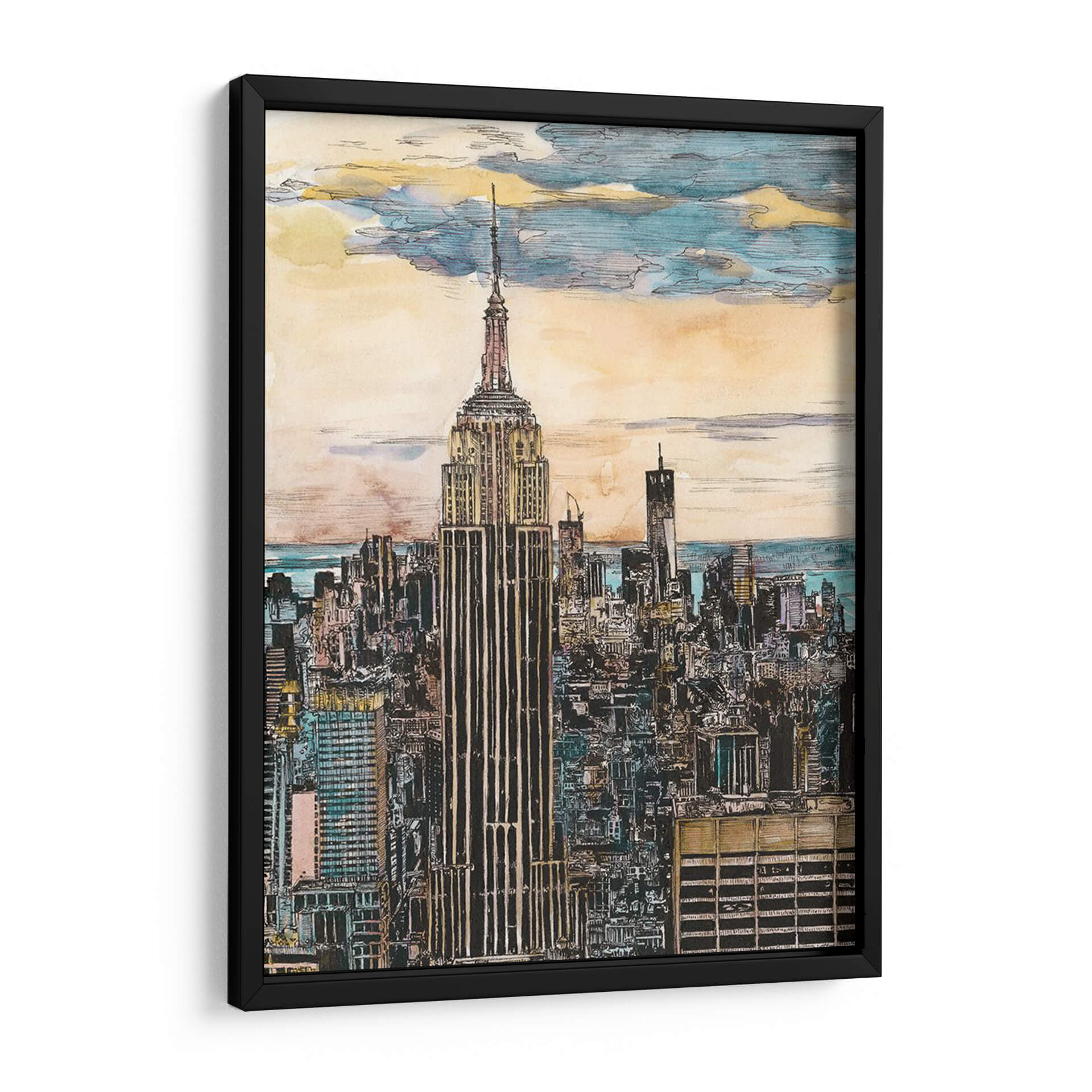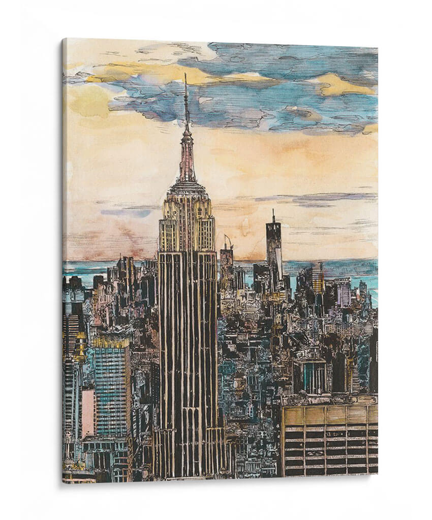 Captura la energía y el encanto icónico de la Gran Manzana con este evocador cuadro decorativo de la ciudad de Nueva York, una obra maestra de Melissa Wang. La pieza presenta una vista panorámica del horizonte de Manhattan, con el majestuoso Empire State Building dominando el centro. La artista utiliza una paleta de colores cálidos, con tonos ocres y anaranjados en el cielo que contrastan con los azules y grises de los edificios, creando una atmósfera vibrante pero serena. El estilo de la obra, una mezcla de ilustración detallada y toques de acuarela, aporta una textura rica y una profundidad visual que invita a la contemplación. Los trazos enérgicos y la composición dinámica transmiten la vitalidad y el ritmo incesante de la ciudad. Este cuadro decorativo es perfecto para añadir un toque de sofisticación urbana a tu sala de estar, estudio u oficina. Ideal para amantes de la arquitectura, la cultura neoyorquina o simplemente para aquellos que buscan una pieza de arte que hable de ambición y modernidad. Transforma tu espacio con la esencia inconfundible de Nueva York.