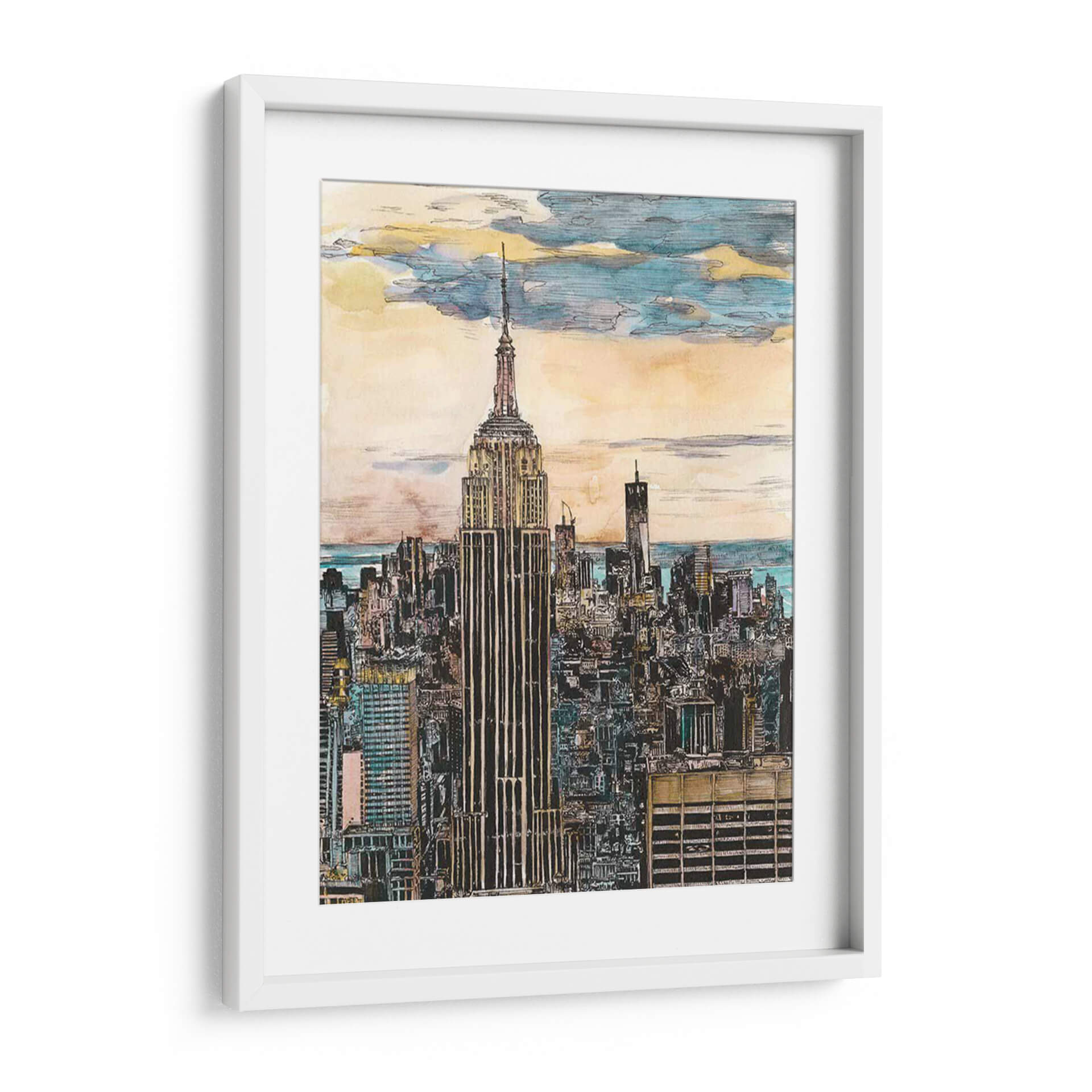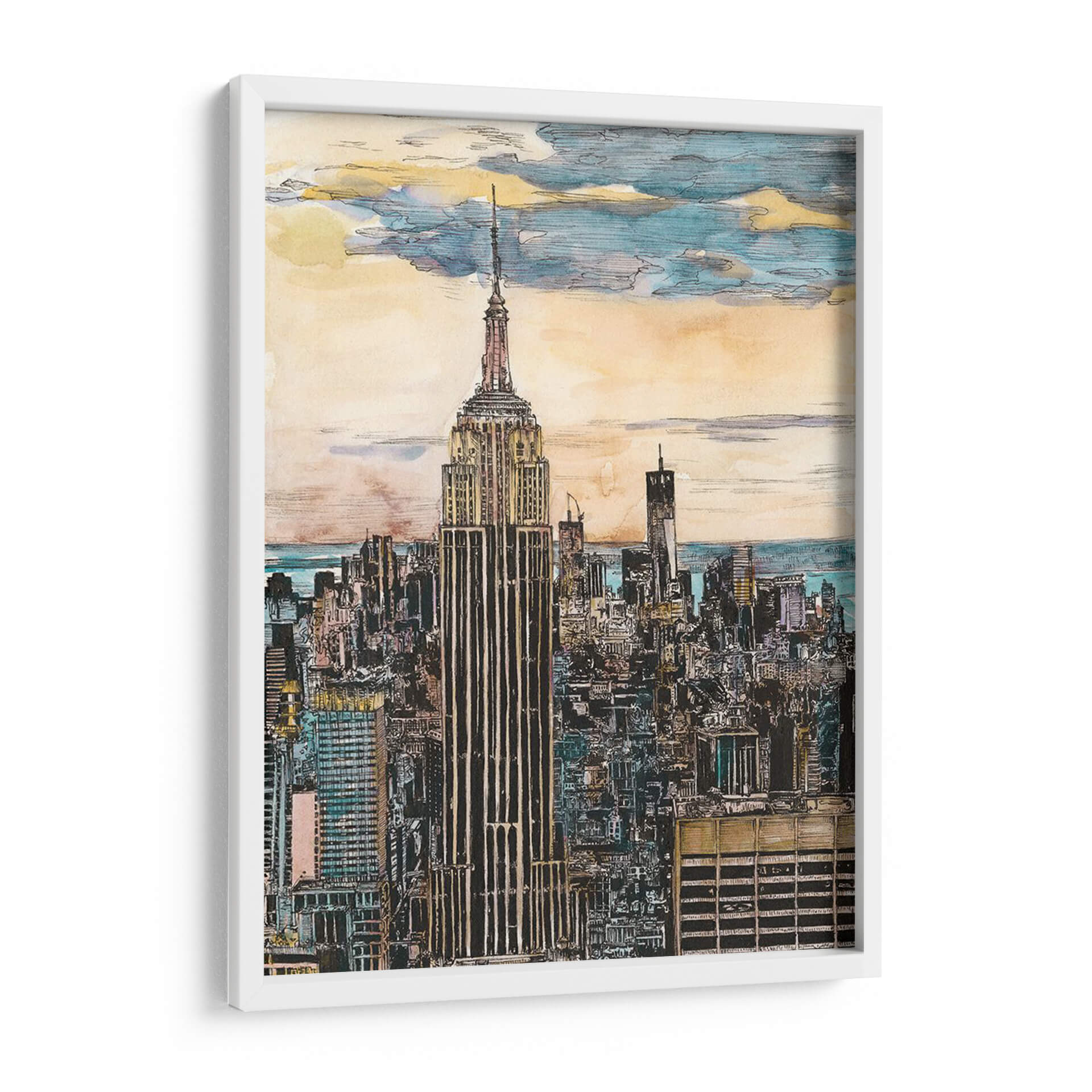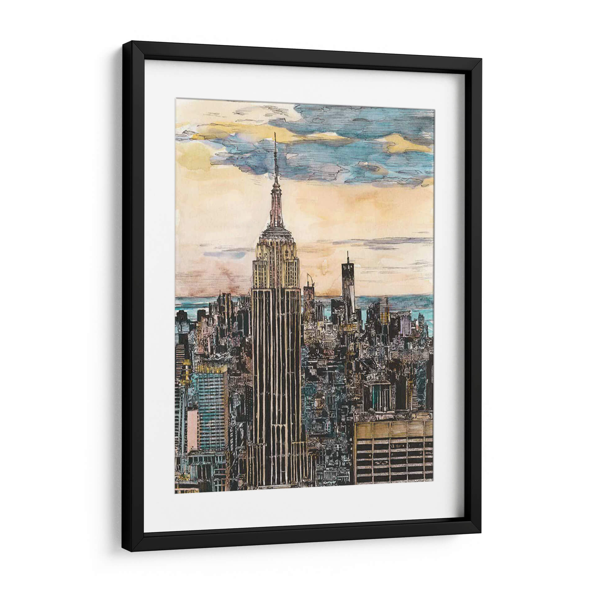 Captura la energía y el encanto icónico de la Gran Manzana con este evocador cuadro decorativo de la ciudad de Nueva York, una obra maestra de Melissa Wang. La pieza presenta una vista panorámica del horizonte de Manhattan, con el majestuoso Empire State Building dominando el centro. La artista utiliza una paleta de colores cálidos, con tonos ocres y anaranjados en el cielo que contrastan con los azules y grises de los edificios, creando una atmósfera vibrante pero serena. El estilo de la obra, una mezcla de ilustración detallada y toques de acuarela, aporta una textura rica y una profundidad visual que invita a la contemplación. Los trazos enérgicos y la composición dinámica transmiten la vitalidad y el ritmo incesante de la ciudad. Este cuadro decorativo es perfecto para añadir un toque de sofisticación urbana a tu sala de estar, estudio u oficina. Ideal para amantes de la arquitectura, la cultura neoyorquina o simplemente para aquellos que buscan una pieza de arte que hable de ambición y modernidad. Transforma tu espacio con la esencia inconfundible de Nueva York.