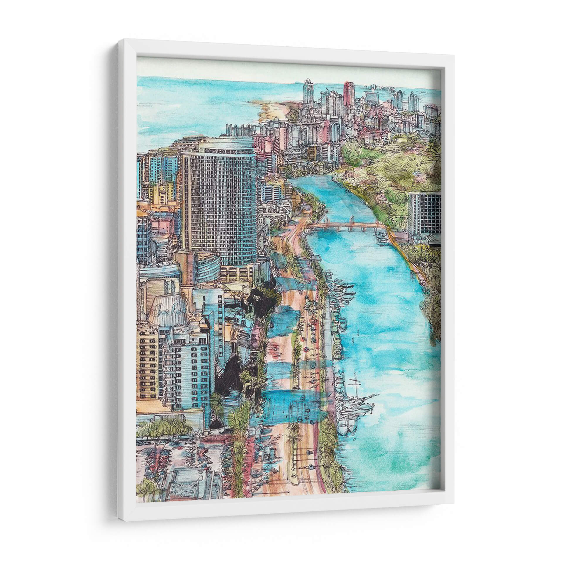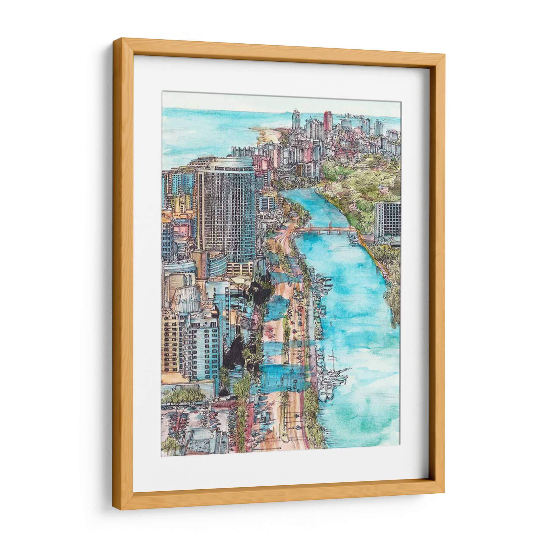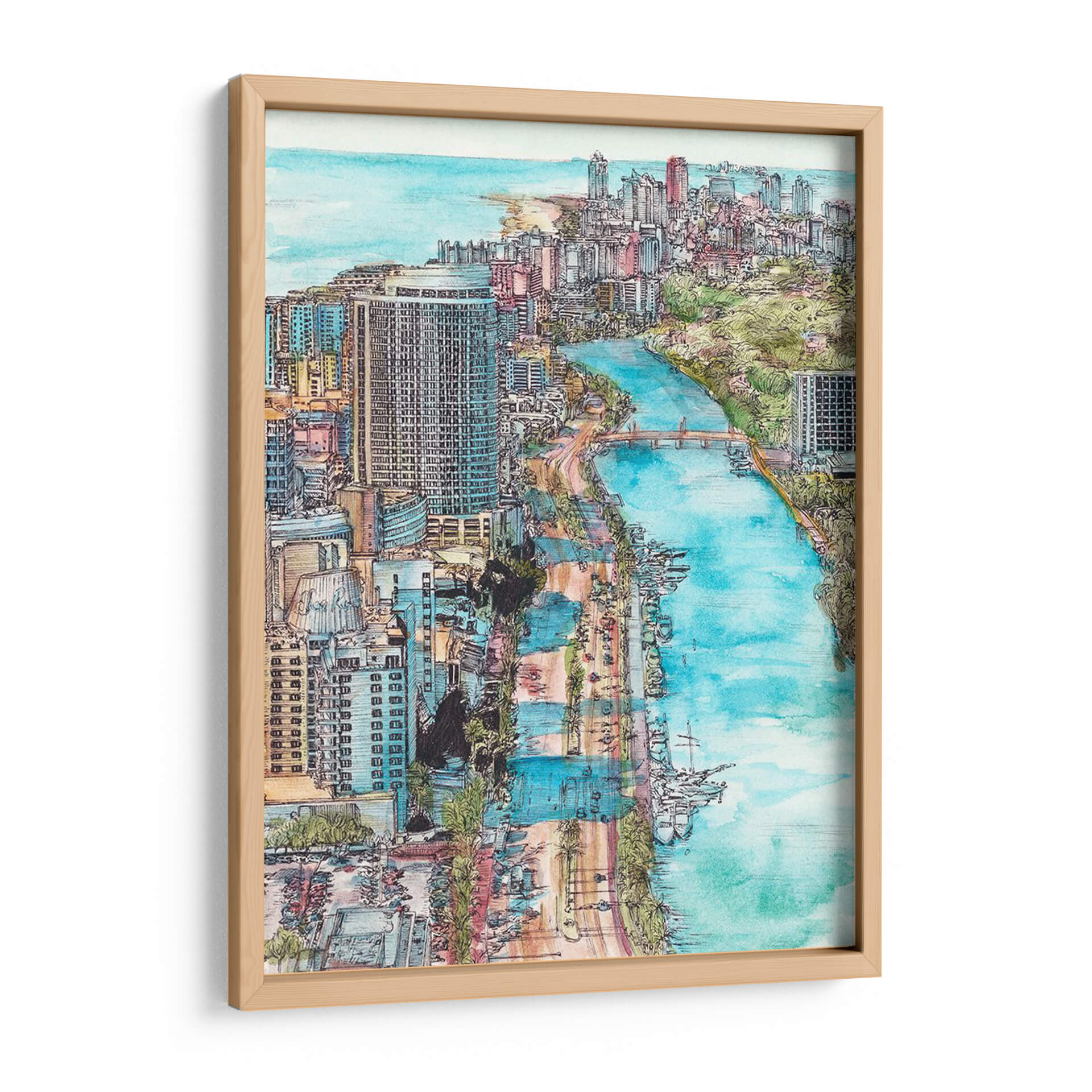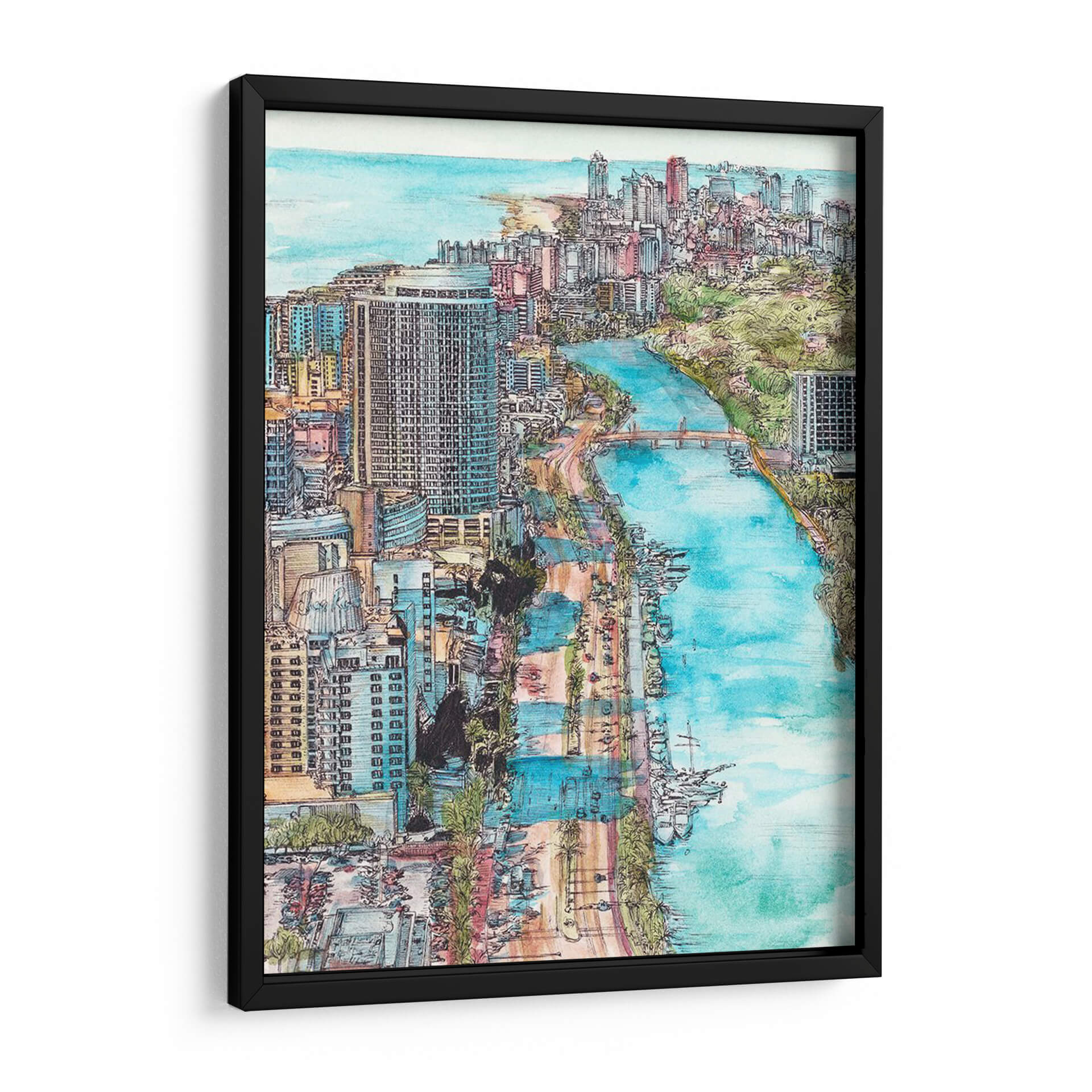Sumérgete en la vibrante energía de "Estados Unidos Urbano-Miami" de Melissa Wang, una obra de arte que captura la esencia de una metrópolis costera con un detalle fascinante. Esta pieza visualmente rica te transporta a las calles bulliciosas, la arquitectura imponente y las aguas cristalinas que definen un paisaje urbano moderno. Wang utiliza una paleta de colores audaz, con predominio de azules intensos que reflejan el mar y el cielo, contrastando con los tonos cálidos y variados de los edificios y la vegetación urbana. La composición, que abarca desde la perspectiva de un rascacielos hasta el detalle de los yates en el puerto, ofrece una visión panorámica que invita a explorar cada rincón. El estilo, que fusiona la precisión del dibujo con la fluidez de la acuarela, añade una textura única y una sensación de dinamismo. Este cuadro decorativo es ideal para infundir vitalidad y un toque de sofisticación cosmopolita en tu hogar u oficina, convirtiéndose en un punto focal que evoca viajes y la efervescencia de la vida urbana. Es una invitación a contemplar la belleza inherente a la expansión urbana y su armonía con el entorno natural.