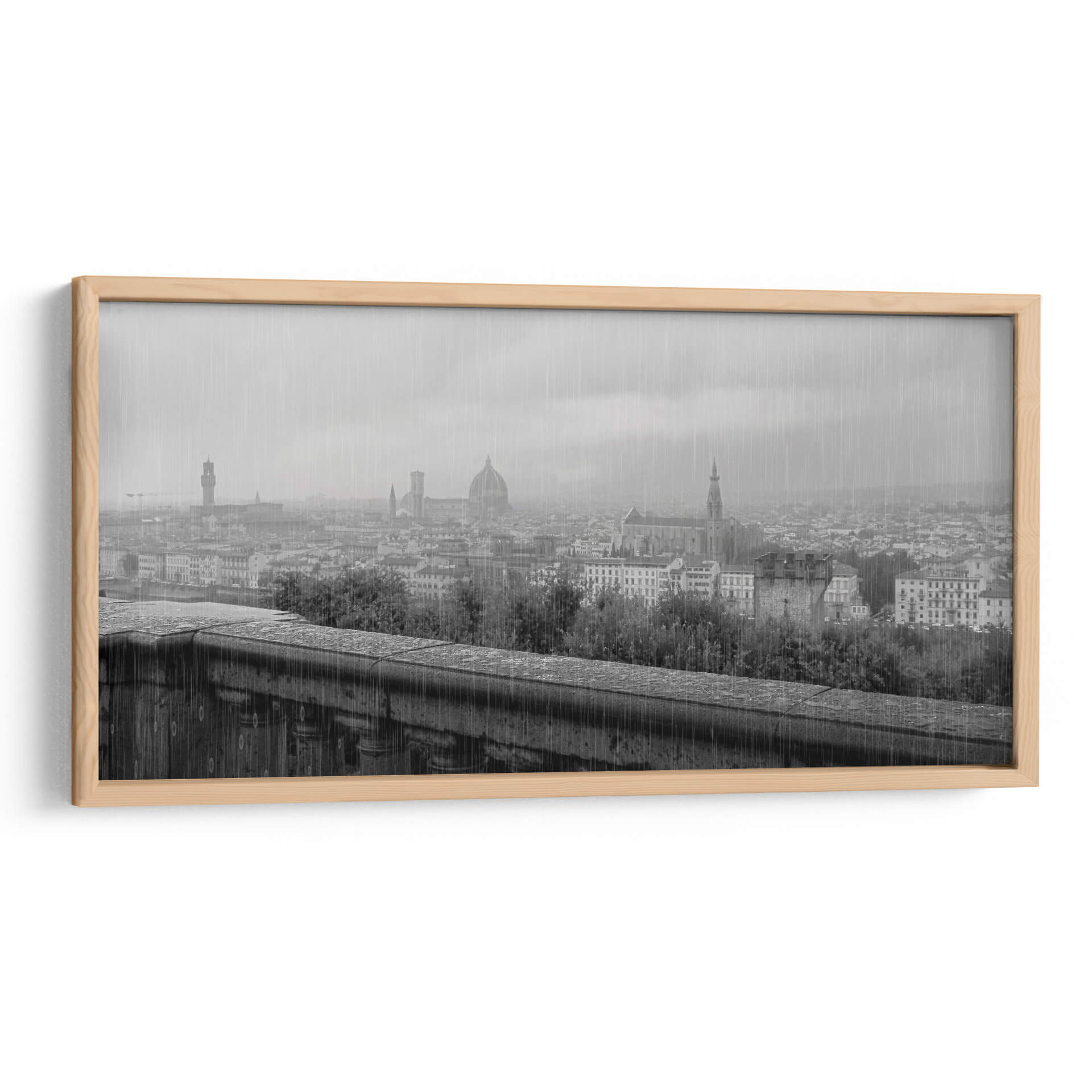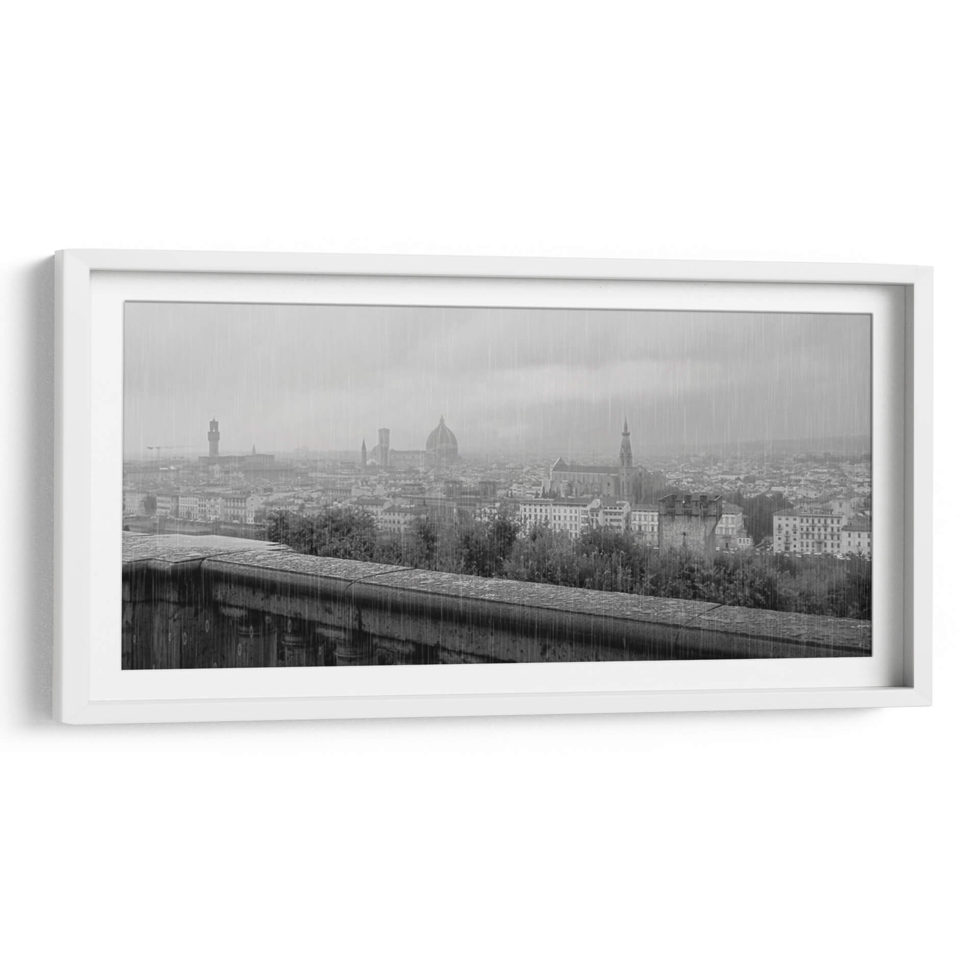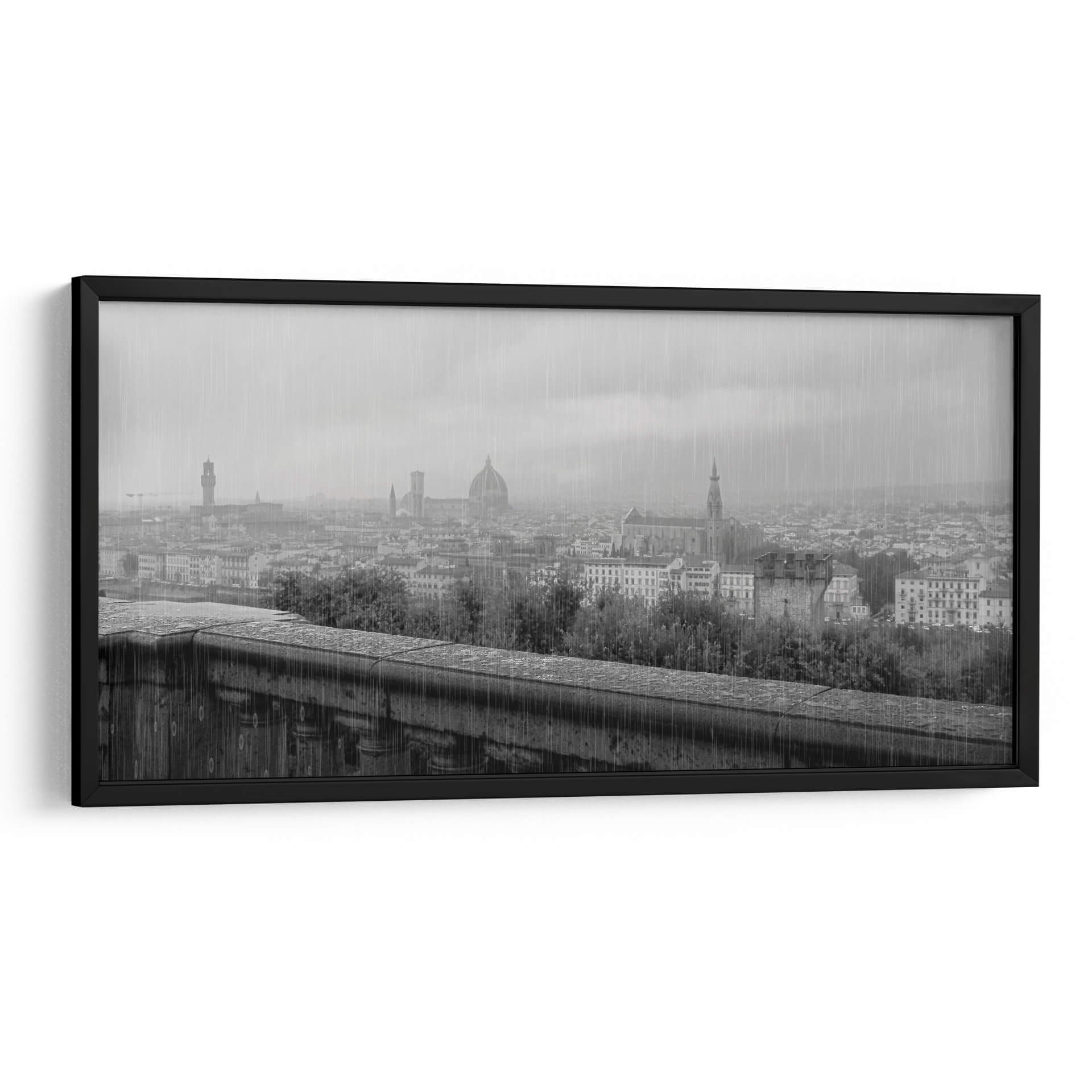 Sumérgete en la atmósfera melancólica y cautivadora de "Florencia con Lluvia", una obra de Ariadne Contreras que captura la esencia de la ciudad toscana bajo un cielo plomizo. Este cuadro decorativo te transporta a las calles empedradas y los tejados icónicos de Florencia, envueltos en una atmósfera de serenidad y reflexión. La paleta de grises y el tratamiento atmosférico, con la lluvia cayendo sutilmente, crean una sensación de intimidad y quietud, perfecta para aquellos que aprecian la belleza en los días grises. La composición, que abarca un horizonte urbano salpicado de arquitectura histórica y vegetación frondosa, ofrece una perspectiva amplia y a la vez detallada. Ideal para añadir un toque de sofisticación y profundidad a tu sala de estar, estudio u oficina, esta pieza evoca el romanticismo de la lluvia y la majestuosidad de Florencia, invitando a la contemplación. "Florencia con Lluvia" es más que una imagen; es una invitación a sentir la poesía visual de un paisaje urbano bañado por la lluvia, convirtiendo tu espacio en un refugio de calma y estilo contemporáneo.