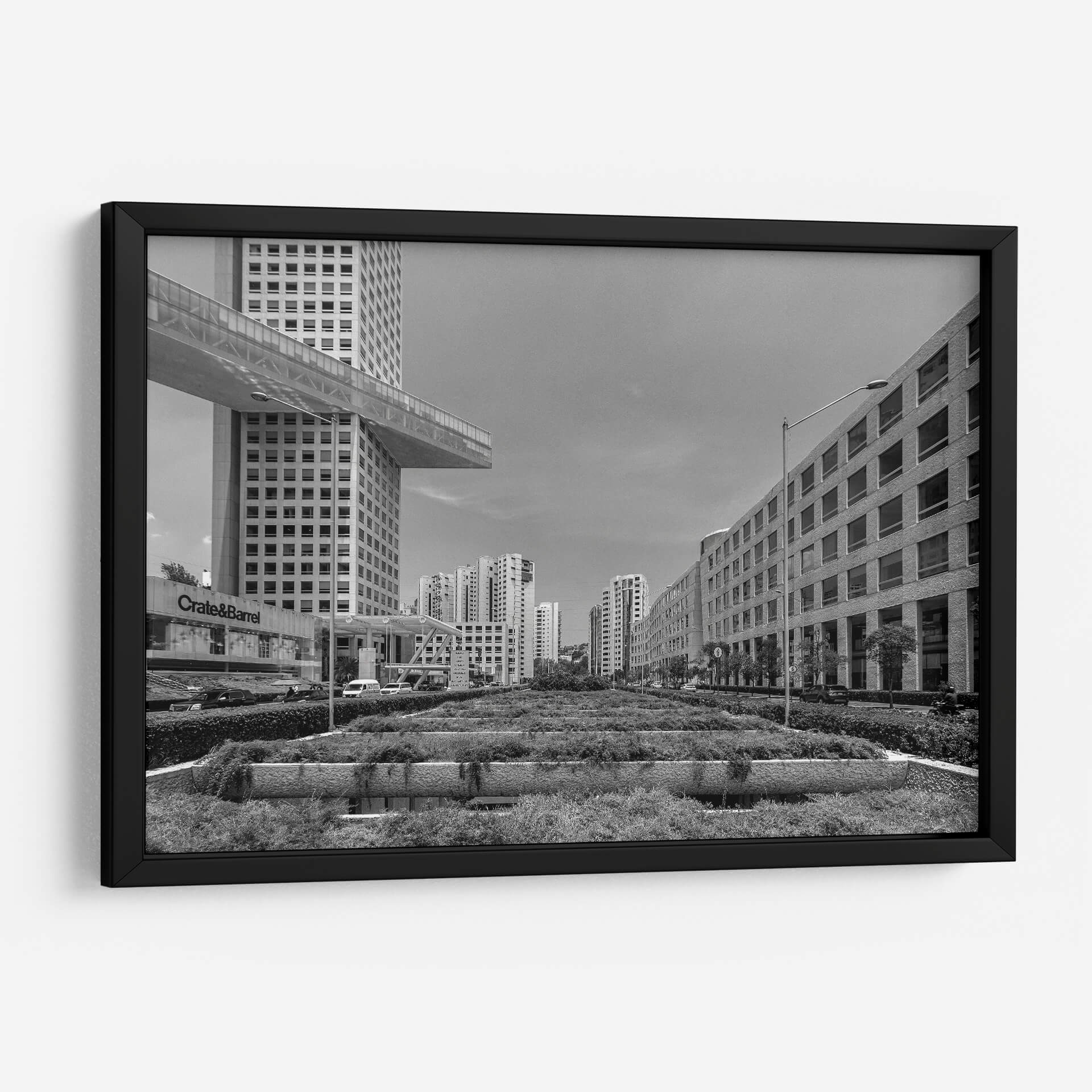 Sumérgete en la fascinante dualidad de la vida urbana moderna con "Geometría y Ciudad", una obra maestra en blanco y negro del artista Bernardo Miranda. Este cuadro decorativo captura la esencia de la arquitectura contemporánea, presentando una composición audaz donde las líneas limpias y las formas geométricas de los rascacielos contrastan con la exuberante vegetación que se extiende en primer plano. La paleta monocromática resalta la textura y la profundidad de los edificios, creando un juego de luces y sombras que añade un aire de misterio y sofisticación. La obra evoca una sensación de orden y dinamismo, invitando a la reflexión sobre la coexistencia entre la naturaleza y el progreso. Ideal para espacios que buscan un toque de elegancia urbana y un diálogo visual impactante, este cuadro es perfecto para salones modernos, oficinas ejecutivas o cualquier lugar donde se desee infundir un espíritu vanguardista. Añade esta pieza a tu colección y transforma tu entorno con su cautivadora perspectiva arquitectónica y su atmósfera atemporal.