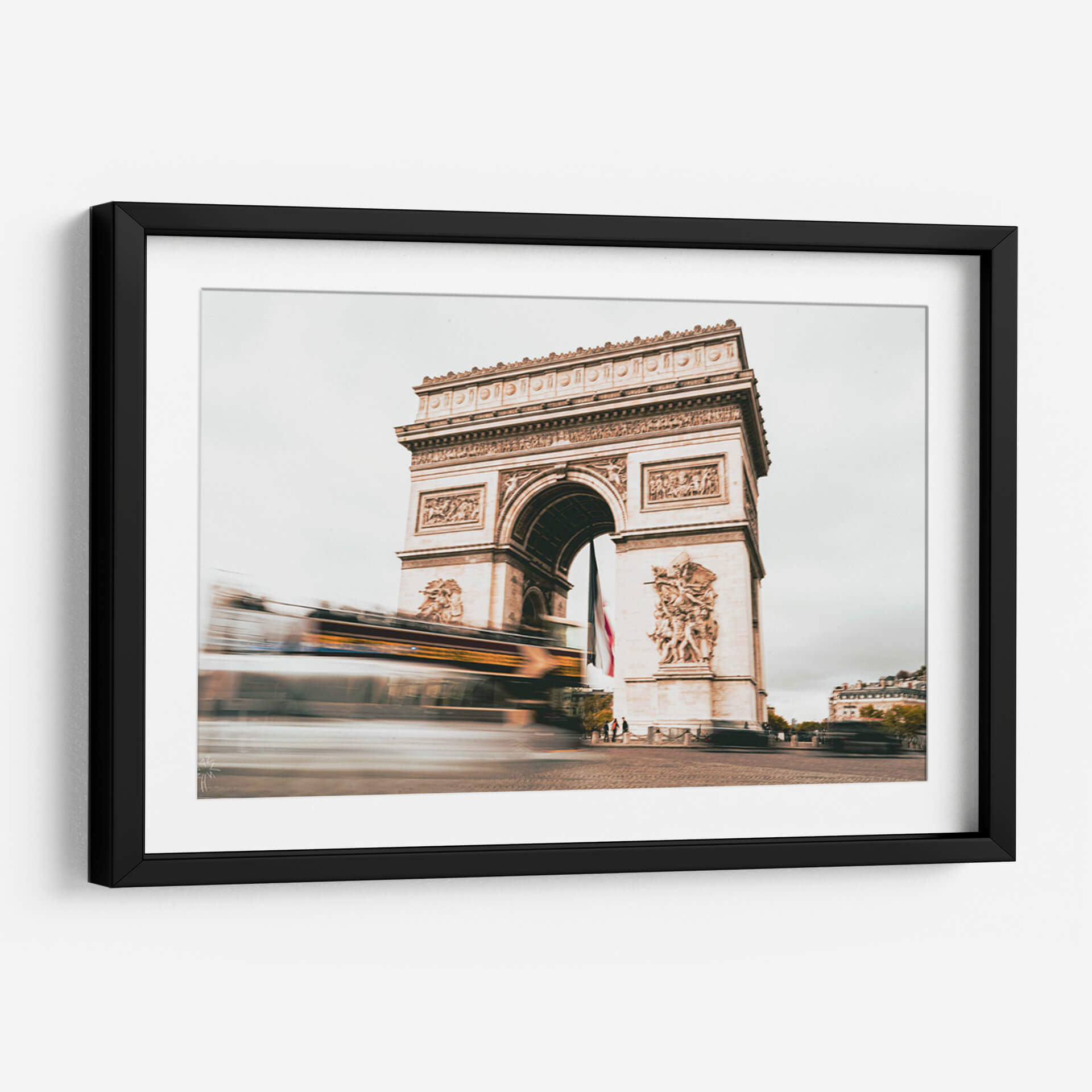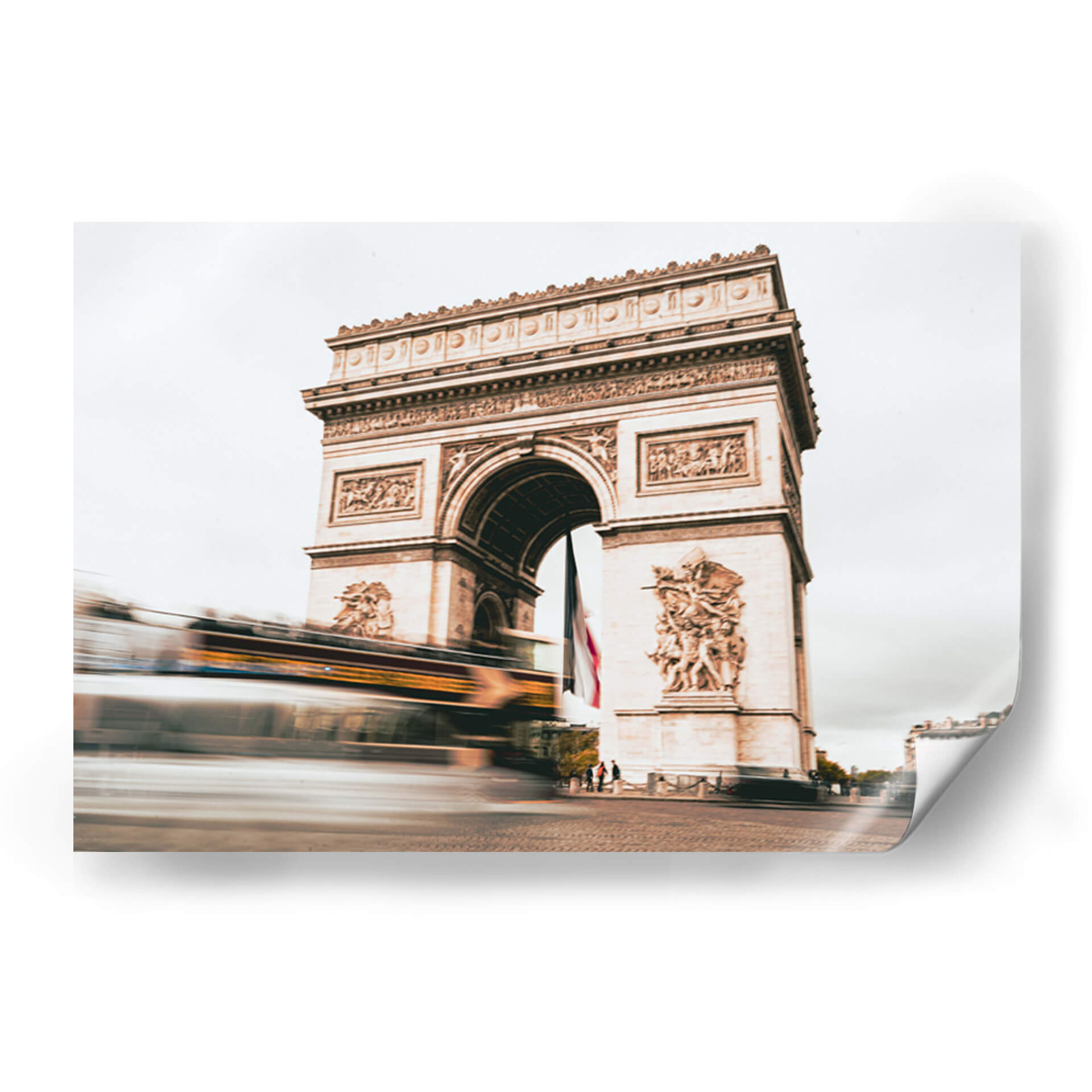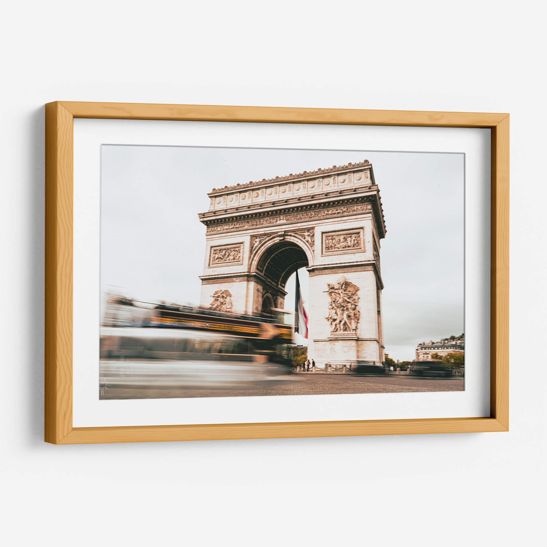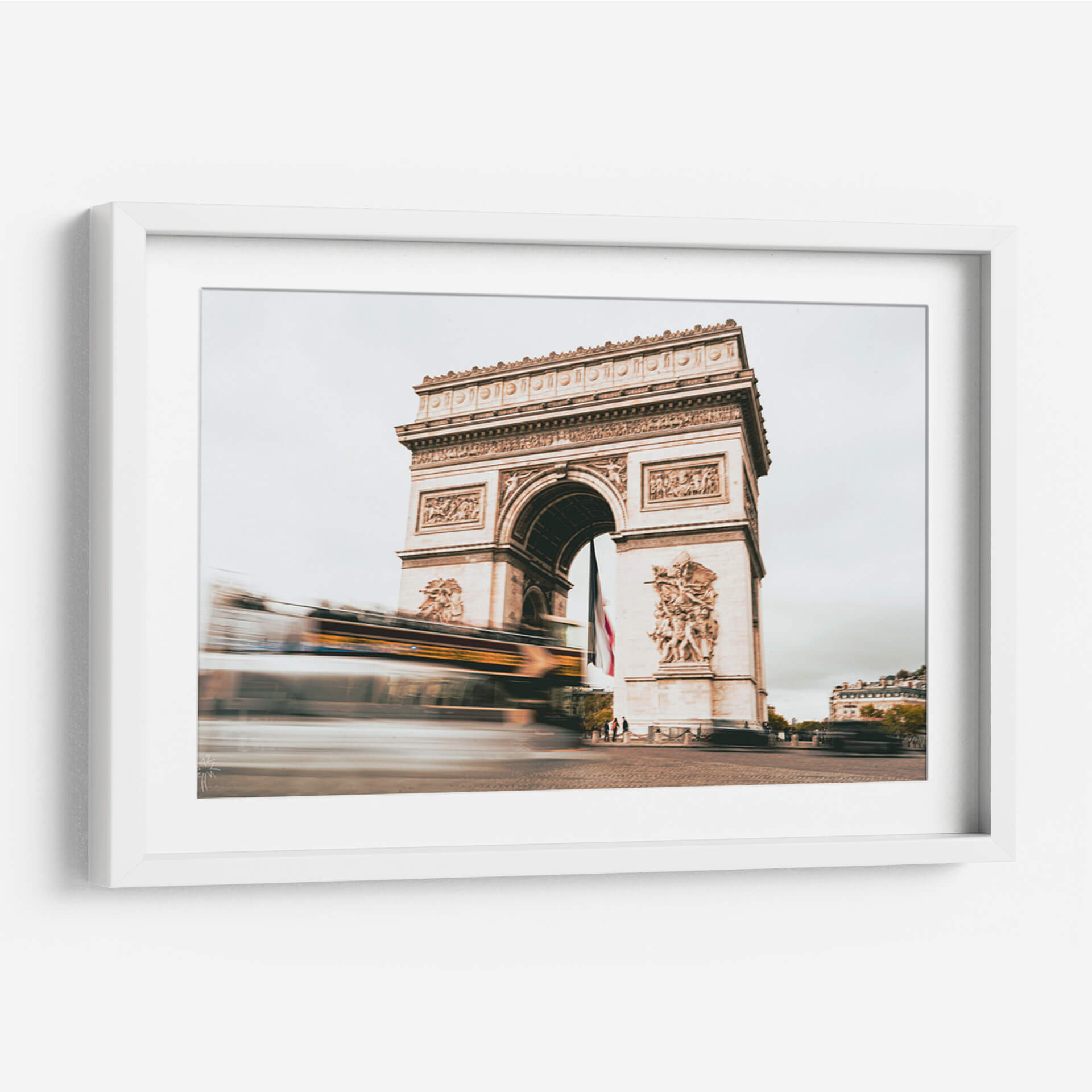 Captura la esencia del movimiento y la grandeza arquitectónica con este evocador cuadro decorativo del Arco del Triunfo de París. La obra, titulada 'LA VIE DÉFILE VITE' por Zuriel Halal, inmortaliza la icónica estructura parisina en un momento de dinamismo, con un autobús de dos pisos capturado en un desenfoque de movimiento que sugiere el incesante fluir de la vida. Los colores predominantes son tonos tierra, ocres y grises, que otorgan una atmósfera ligeramente melancólica pero a la vez majestuosa a la escena. La composición enfatiza la monumentalidad del arco, contrastando su solidez con la fugacidad del transporte que pasa. Los detalles escultóricos del monumento y el cielo nublado añaden profundidad y realismo, invitando al espectador a transportarse a las vibrantes calles de la capital francesa. Este cuadro decorativo es perfecto para añadir un toque de elegancia urbana y reflexión sobre el paso del tiempo a tu salón, oficina o cualquier espacio que busque inspiración y carácter. Transforma tu hogar en una galería personal con esta pieza única que combina historia, arte y la energía de la vida moderna.