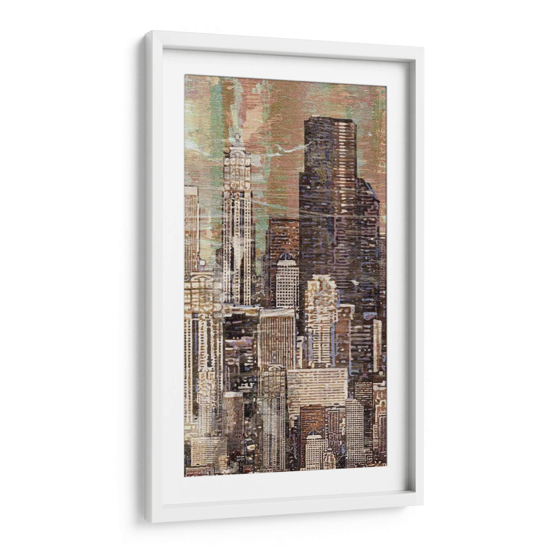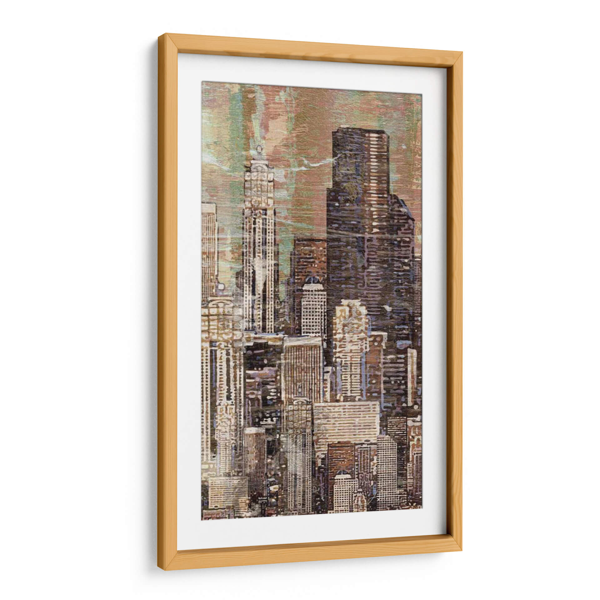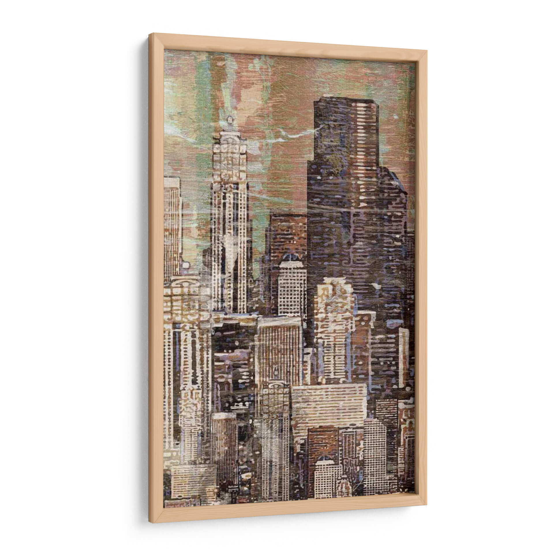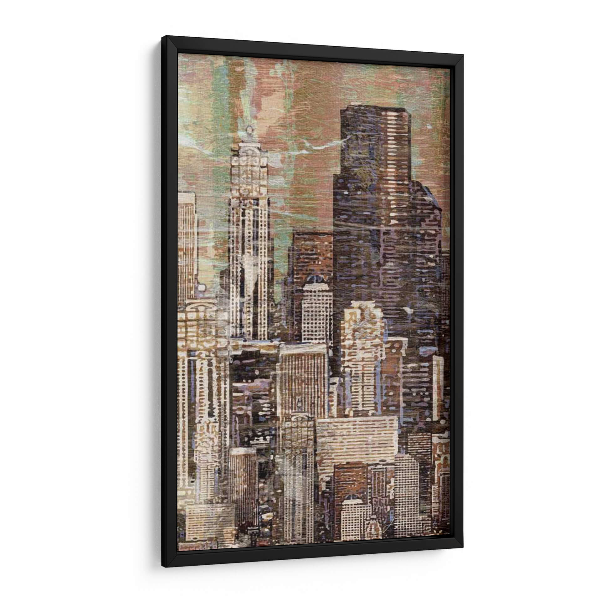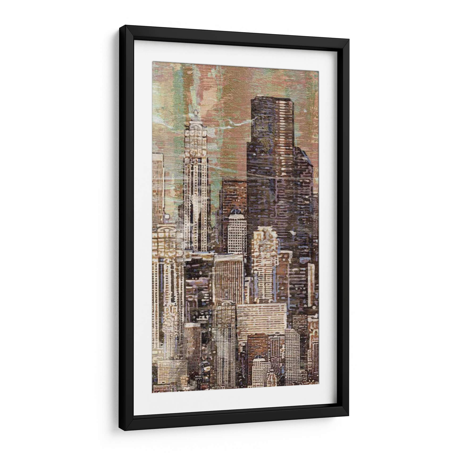 Sumérgete en la majestuosidad urbana con "Lavado Del Horizonte I", una obra de arte que captura la esencia dinámica de una ciudad imponente. James Burghardt nos presenta un paisaje urbano vibrante, donde rascacielos de diversas alturas y estilos se alzan hacia un cielo texturizado. La paleta de colores, dominada por tonos tierra, ocres, grises profundos y toques sutiles de verde y azul, evoca una atmósfera de sofisticación y profundidad, recordando quizás un atardecer o un amanecer en la metrópoli. La composición vertical enfatiza la grandeza de la arquitectura, invitando al espectador a contemplar la magnitud de la urbe. Este cuadro decorativo es una pieza perfecta para añadir carácter y un toque de modernidad a tu sala de estar, estudio u oficina. Su estilo abstracto pero reconocible permite una fácil integración en diversas decoraciones, desde lo contemporáneo hasta lo más industrial, convirtiéndose en un punto focal que inspira y fascina.