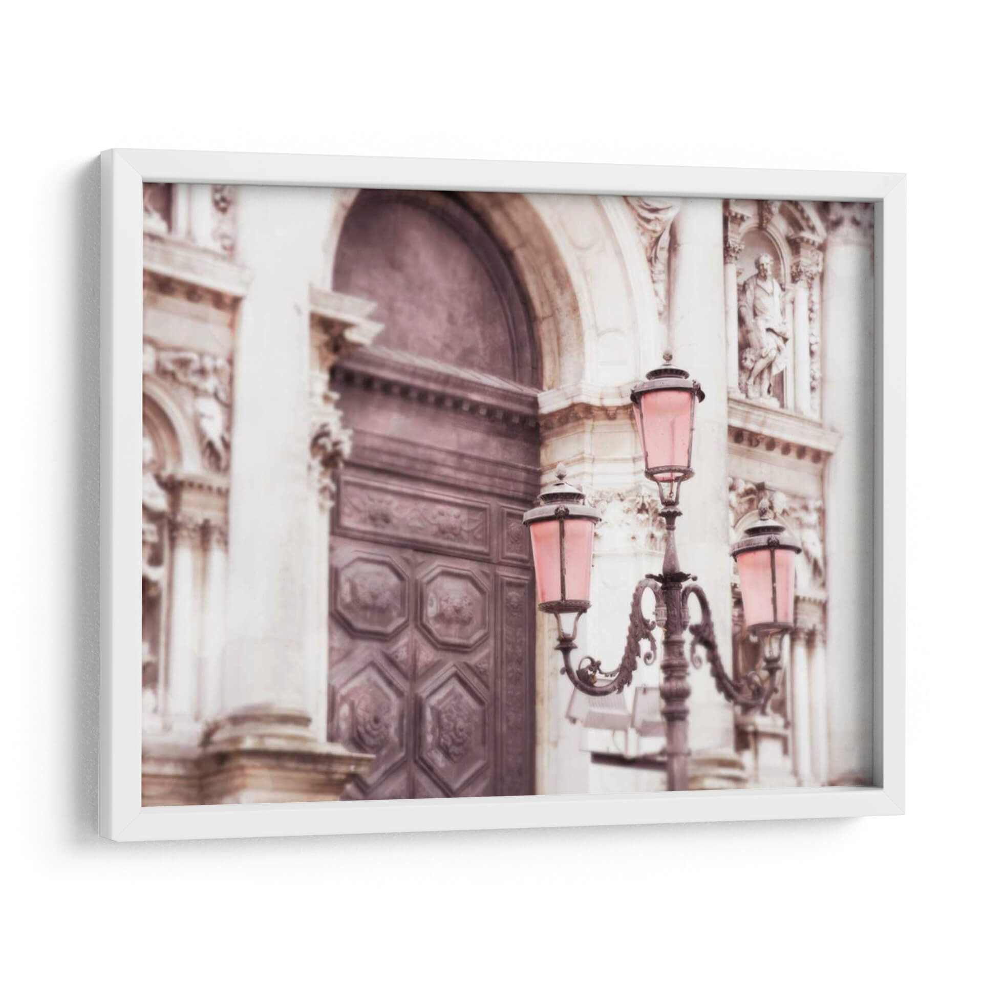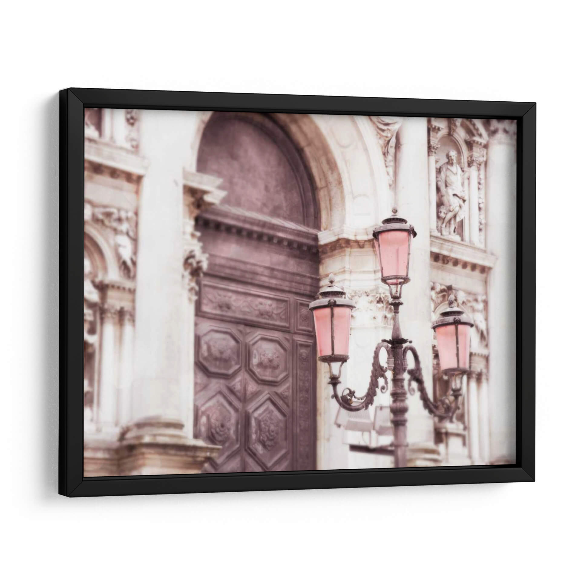 Sumérgete en la romántica atmósfera de "Linternas Rosa De Venecia II" de Sonja Quintero, un cuadro decorativo que captura la esencia de la arquitectura veneciana con un toque etéreo. La obra presenta una imponente puerta de madera tallada, flanqueada por columnas de piedra ornamentadas y detalles escultóricos, evocando la grandeza histórica de Italia. El protagonismo recae en las delicadas linternas de color rosa pálido, cuya luz suave y difusa baña la escena con una calidez ensueñadora y un aire de misterio. La paleta de colores, dominada por tonos pasteles y suaves, crea una sensación de calma y serenidad, ideal para aportar un ambiente de tranquilidad a cualquier espacio. El estilo pictórico, con un ligero desenfoque, añade una cualidad onírica a la composición, invitando a la contemplación y al ensueño. Este cuadro decorativo es perfecto para quienes buscan añadir un toque de elegancia atemporal y un matiz de romanticismo a su hogar u oficina, transformando cualquier pared en una ventana a un mundo de belleza clásica y evocadora. Es una pieza que habla de viajes, de historia y de la magia de los detalles arquitectónicos.