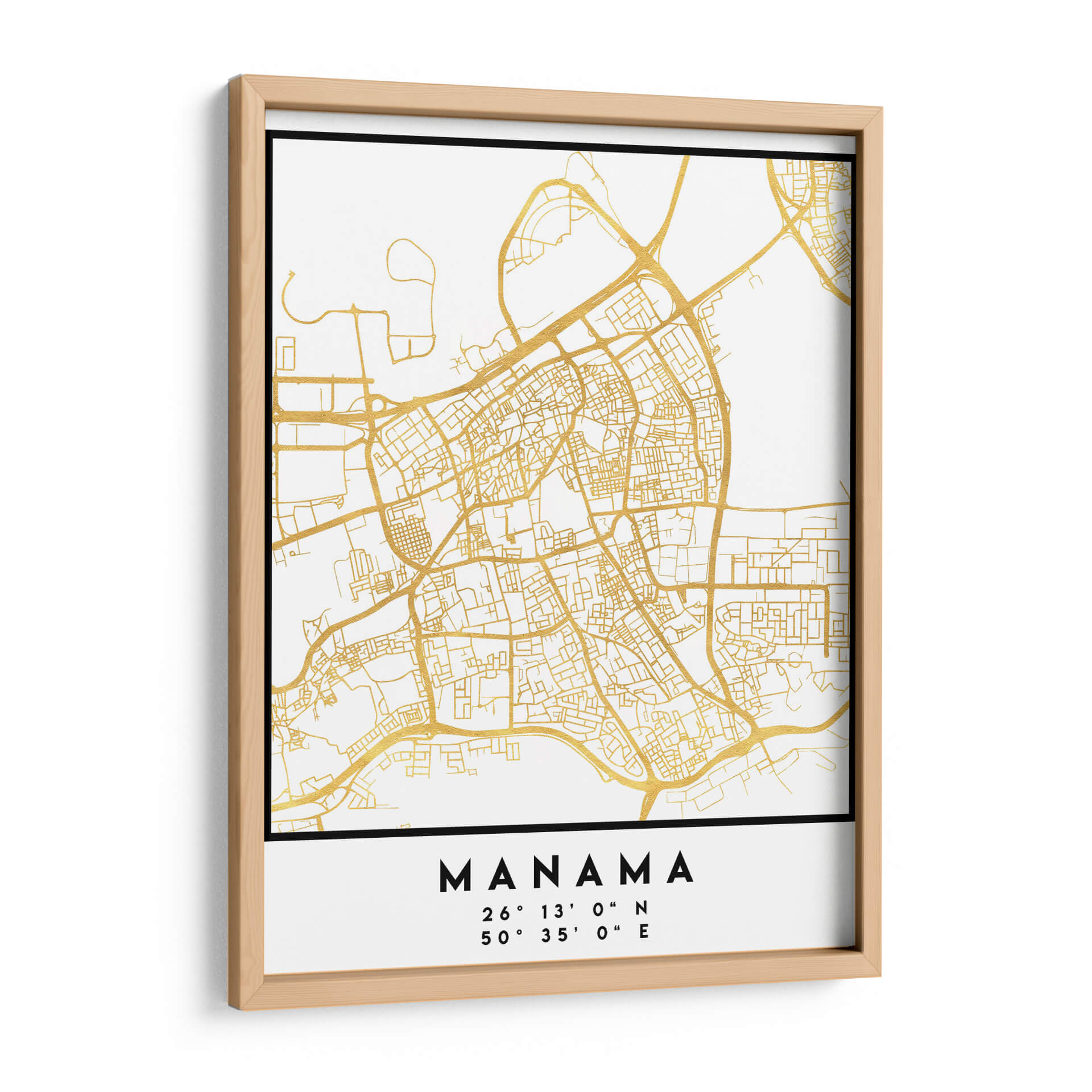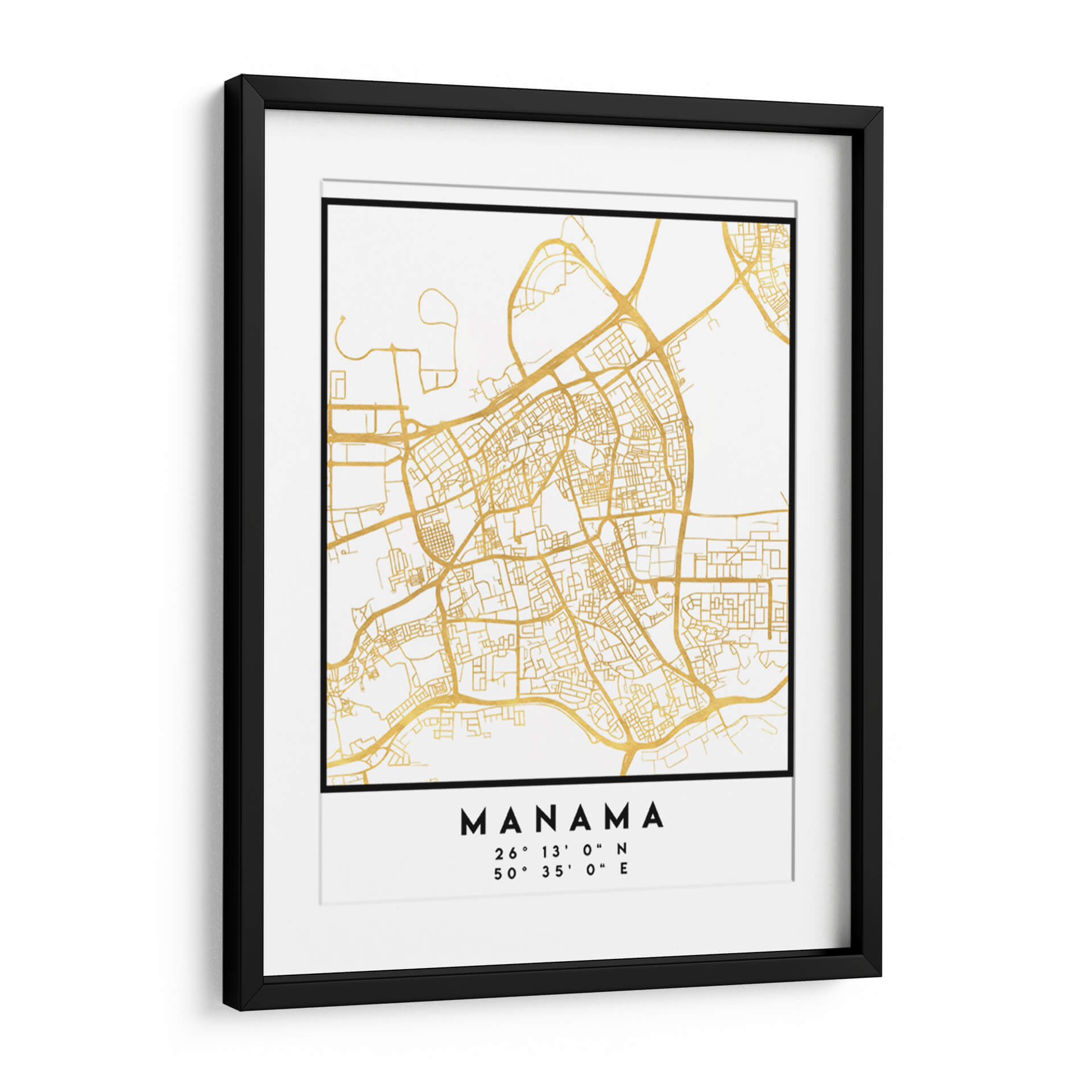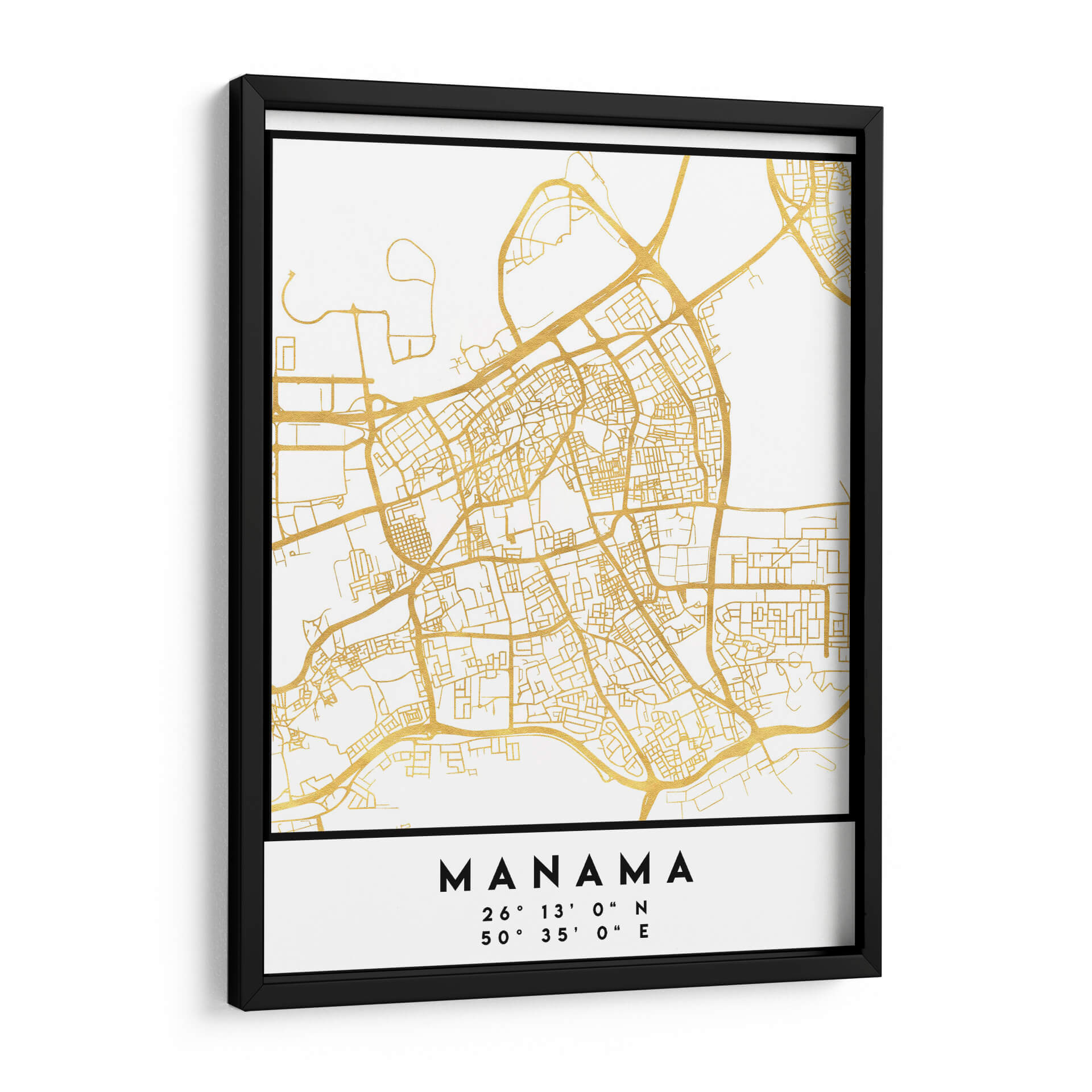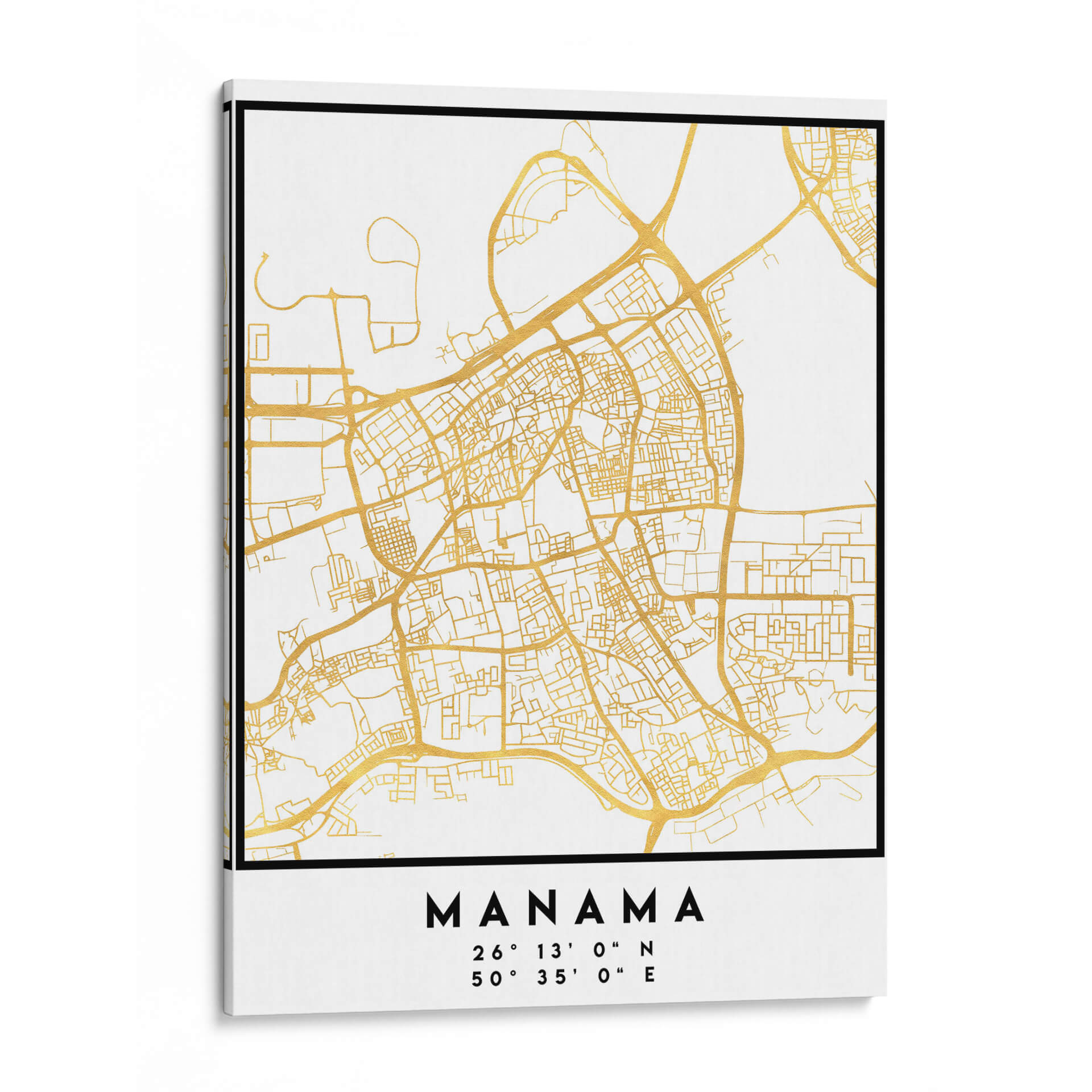 Adéntrate en la intrincada belleza de Manama con este cautivador cuadro decorativo. La obra presenta un detallado mapa estilizado de la ciudad de Manama, capital de Bahréin, representado con líneas doradas sobre un fondo blanco nítido. Las líneas doradas, que simulan el trazado de calles, autopistas y la estructura urbana, capturan la esencia de la ciudad de una manera abstracta y elegante. Las coordenadas geográficas, "26° 13' 0" N 50° 35' 0" E", anclan la pieza a su ubicación real, añadiendo un toque de precisión y significado a la estética. Este mapa artístico es una representación sofisticada y moderna, perfecta para aquellos que buscan añadir un toque de carácter geográfico y lujo discreto a su hogar u oficina. Su diseño minimalista y la paleta de colores monocromática con acentos dorados lo convierten en una pieza versátil, ideal para complementar una variedad de estilos decorativos, desde el contemporáneo hasta el moderno o incluso el ecléctico. Imagina este cuadro como el punto focal en una sala de estar, un estudio o un recibidor, evocando un sentido de exploración, conexión y sofisticación.