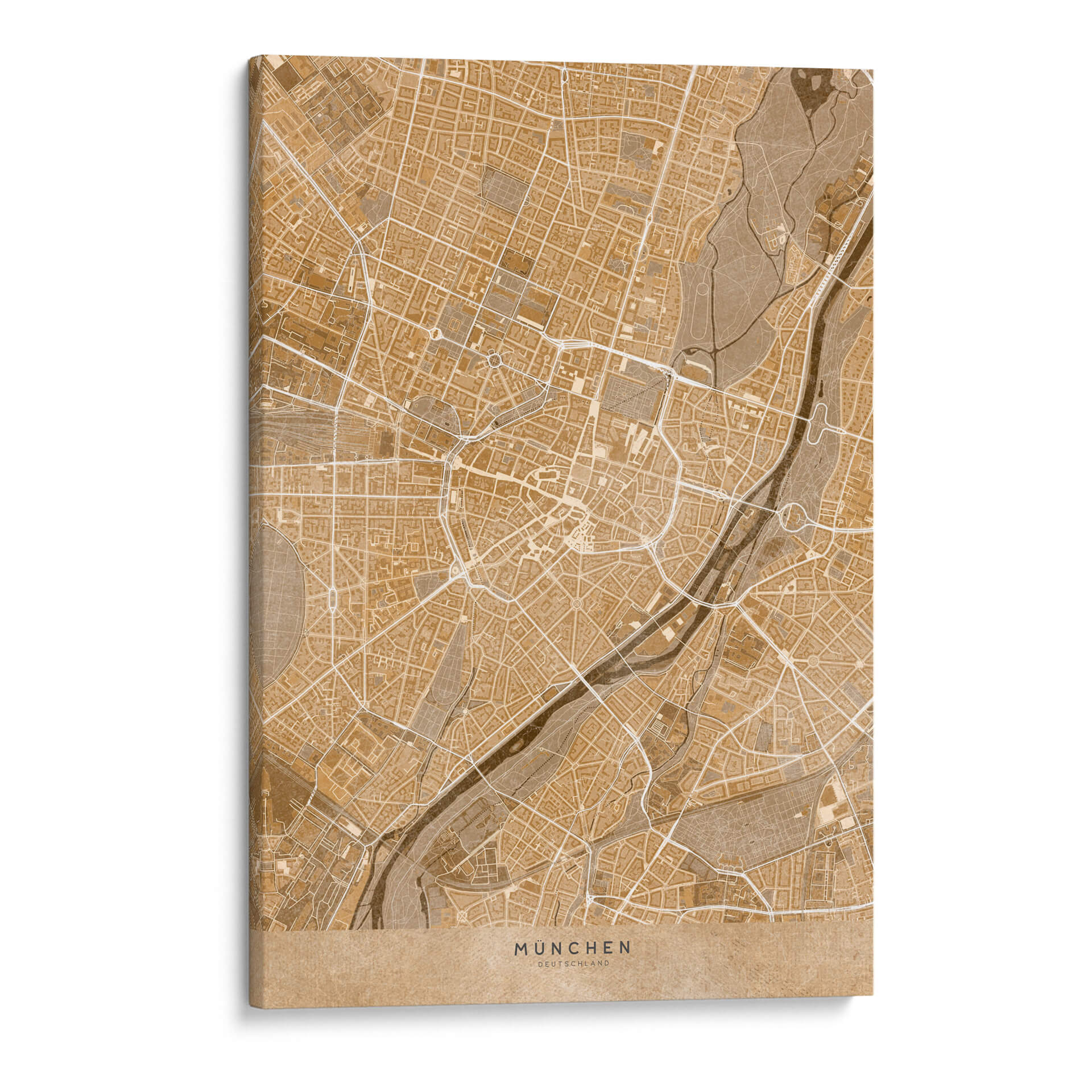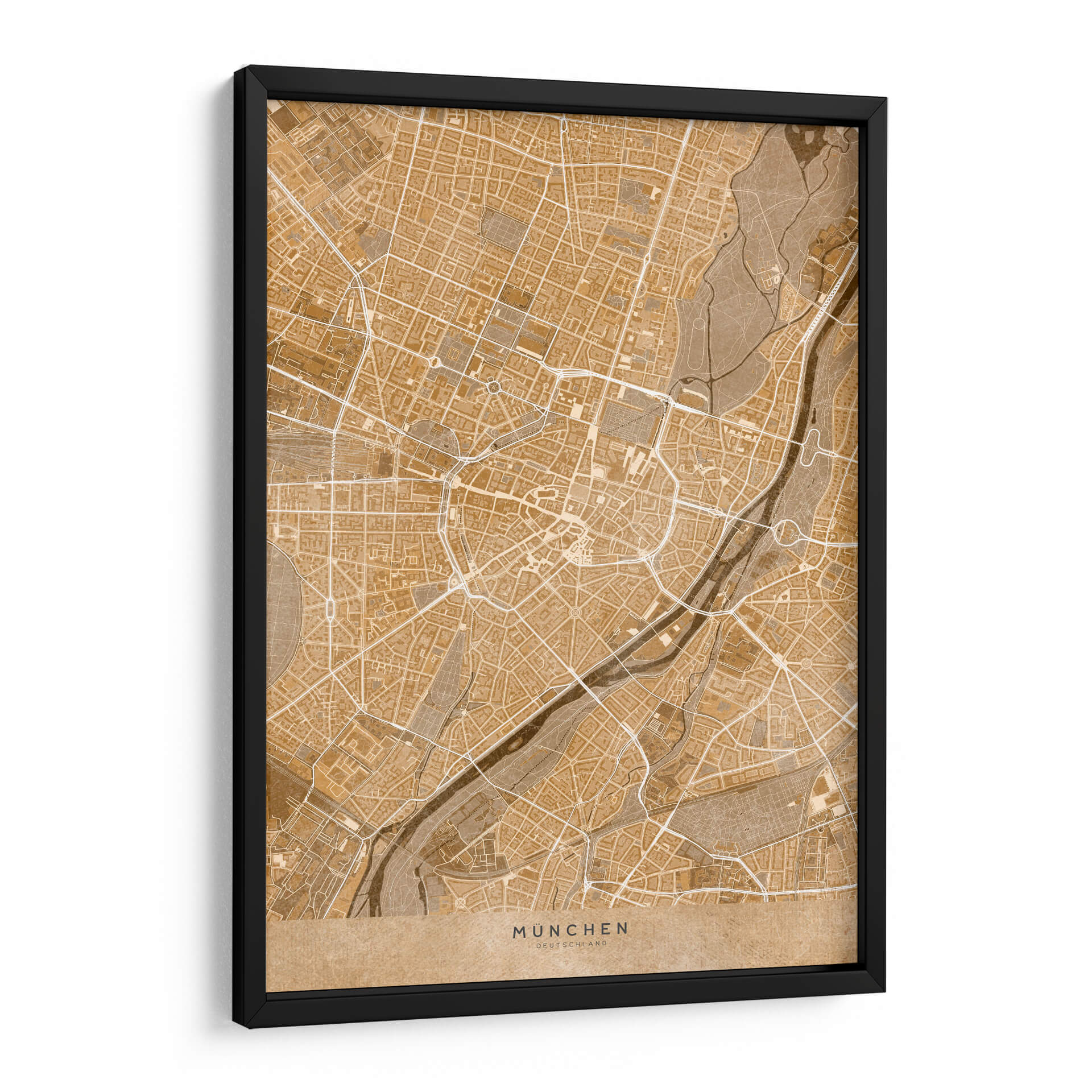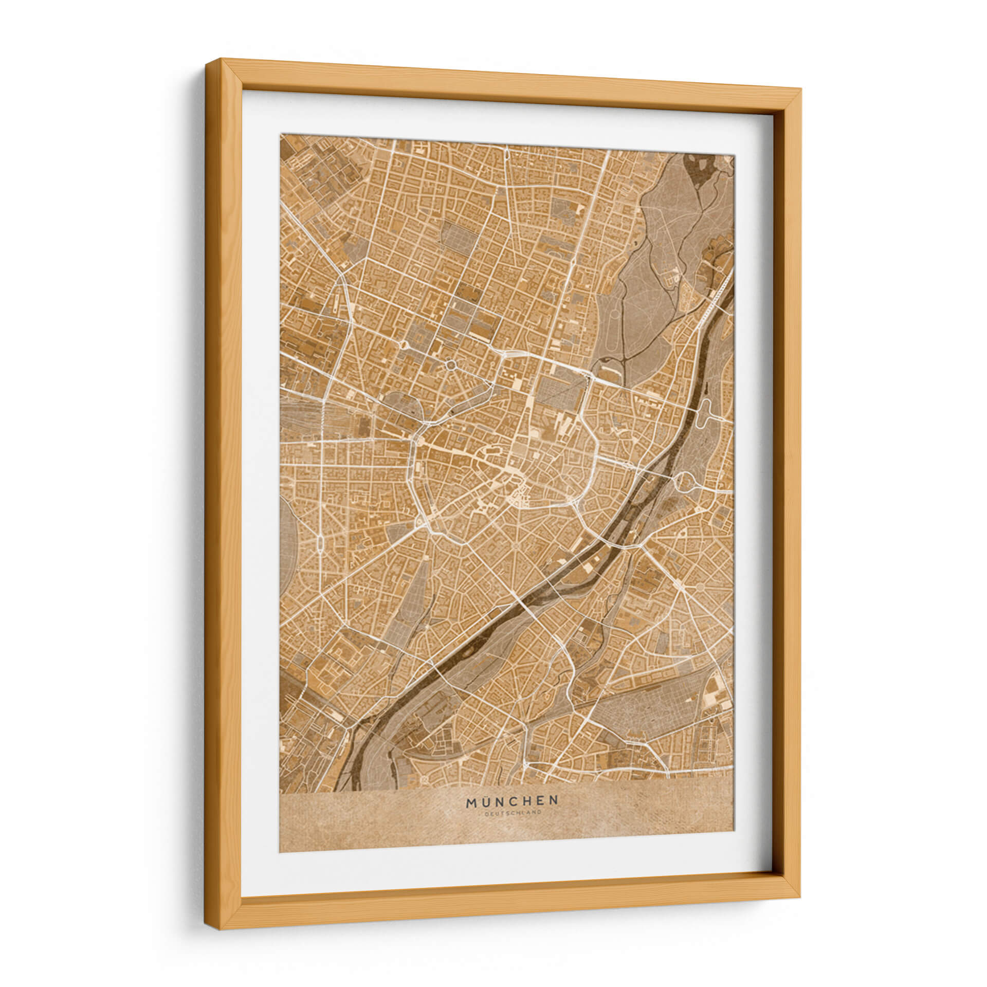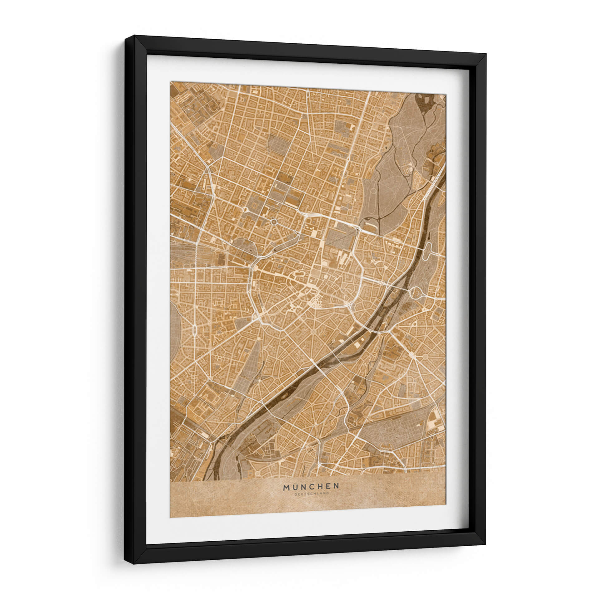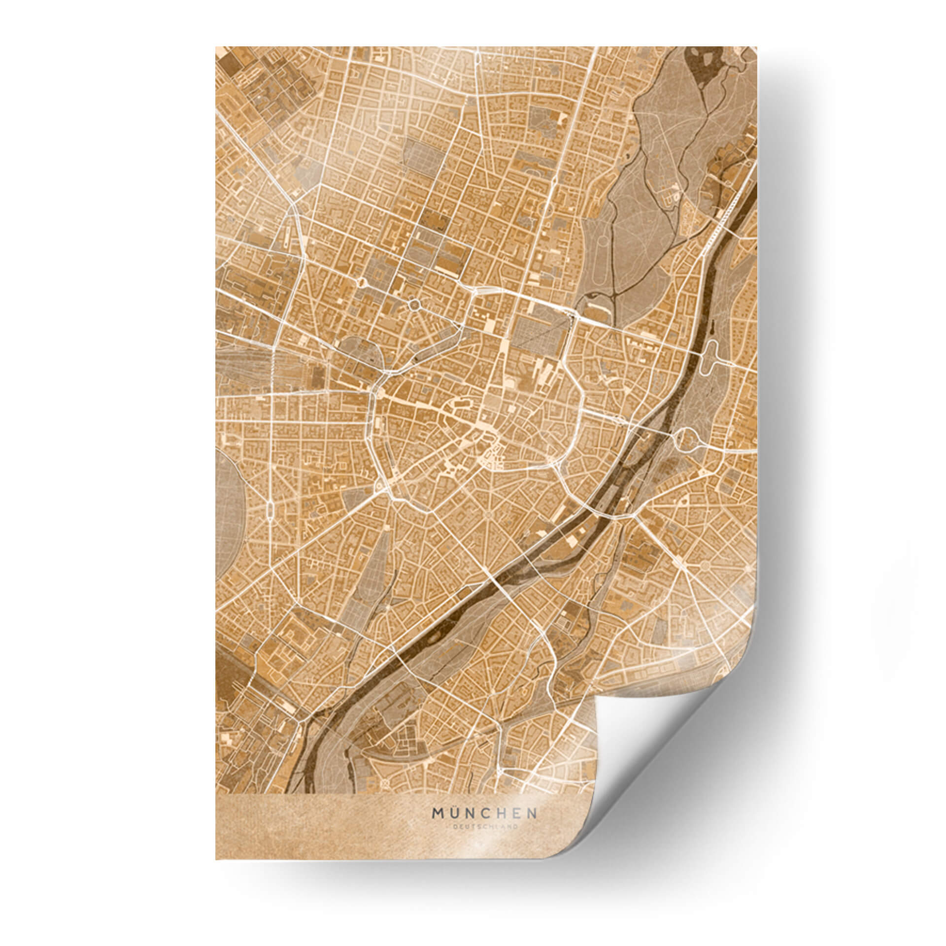 Mapa vintage en sepia del centro de Munchen, Alemania - Rosana Laiz Blursbyai